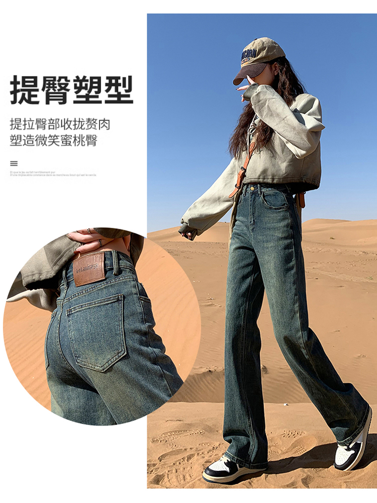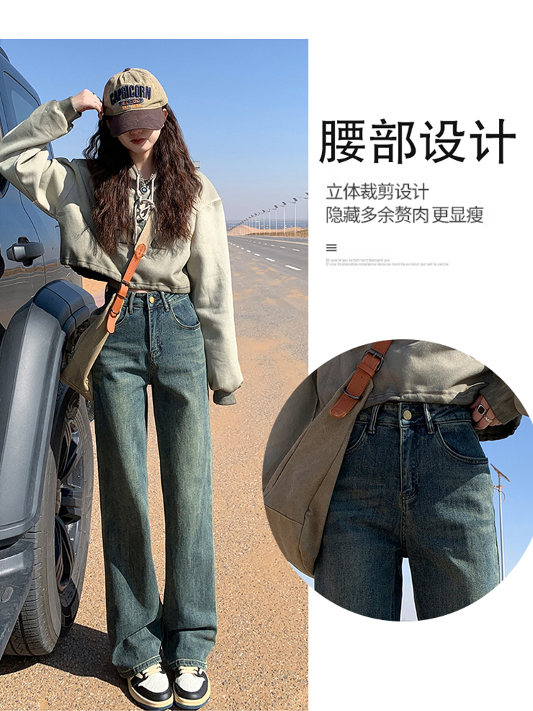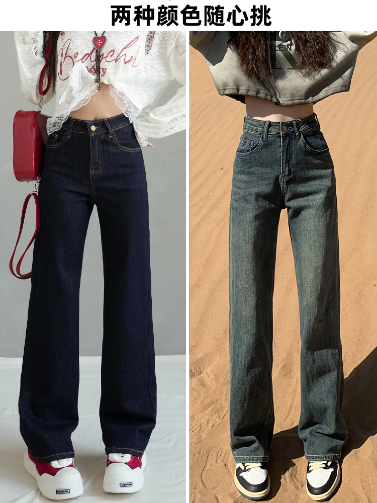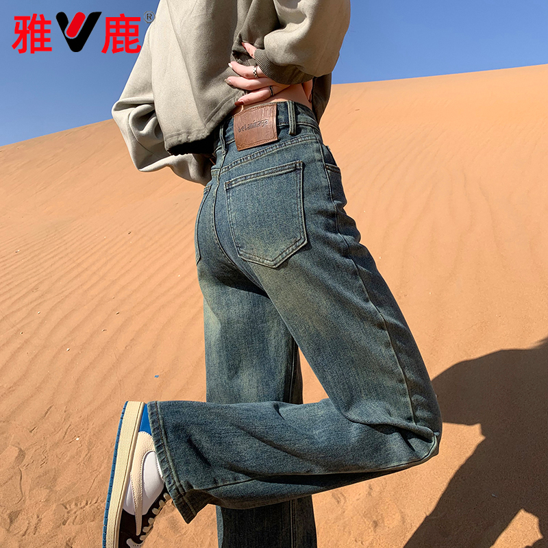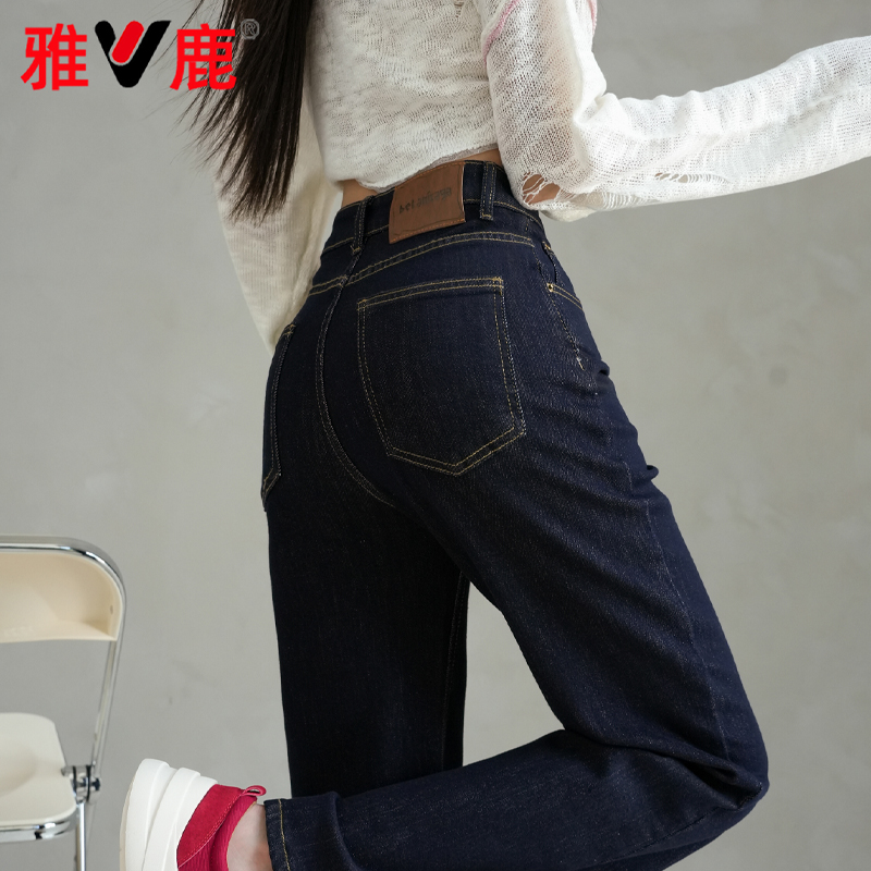 雅鹿窄版阔腿牛仔裤女秋冬2025新款高腰显瘦小个子宽松直筒裤加绒