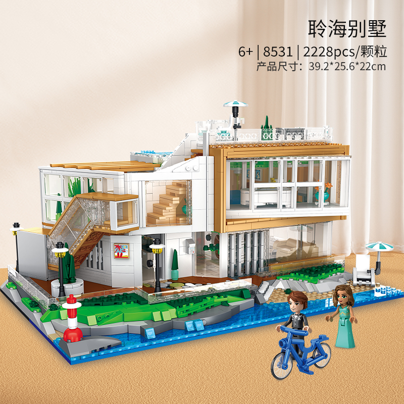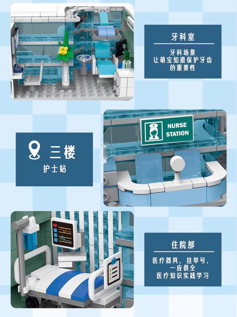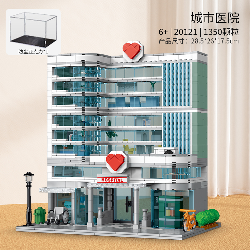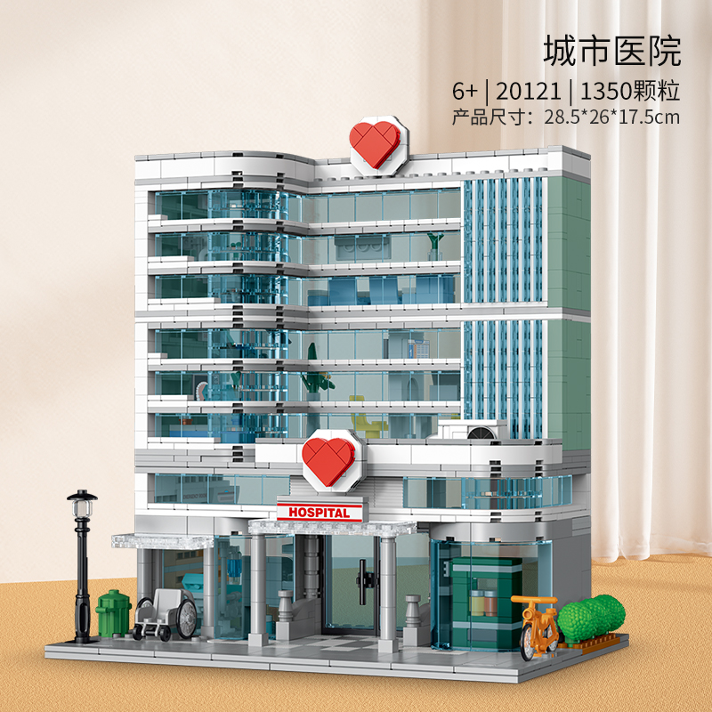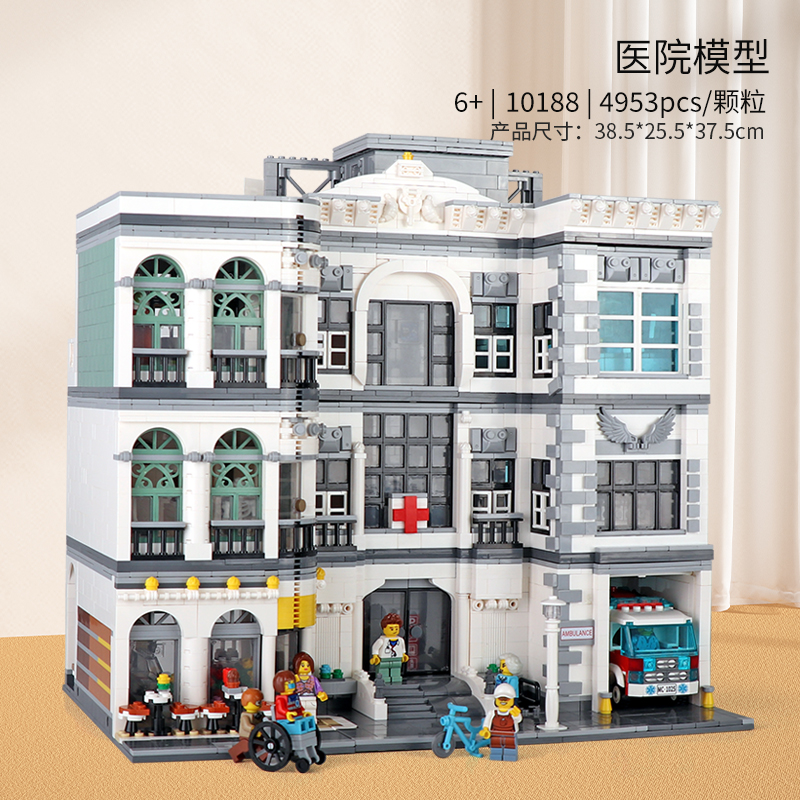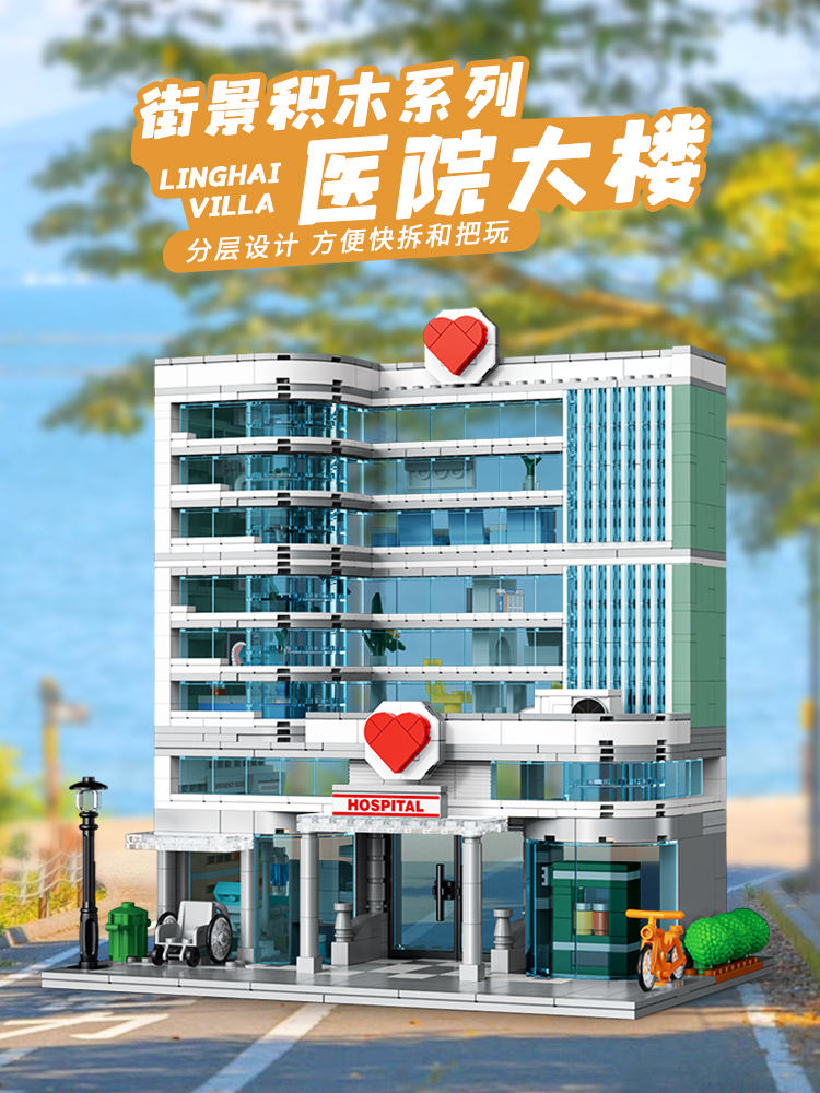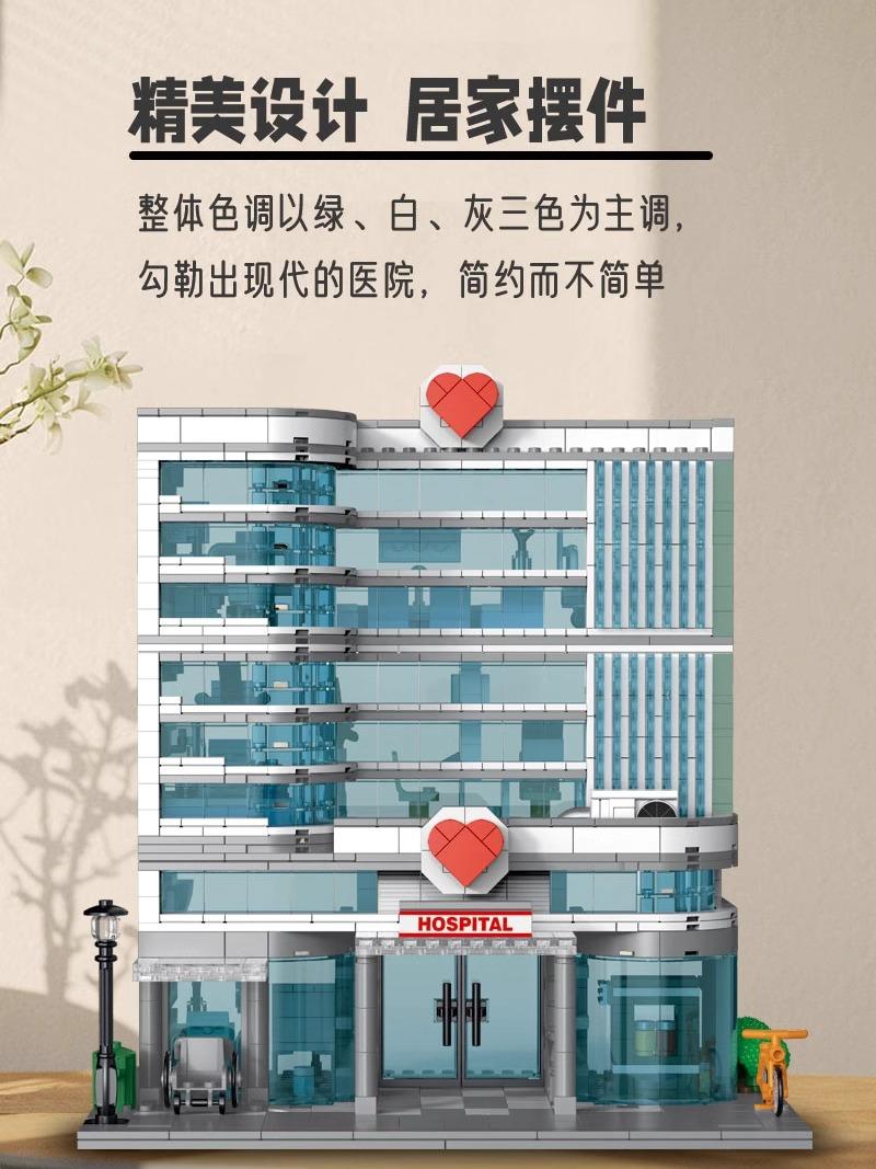 医院大楼积木艺术馆街景房子别墅模型儿童益智拼装玩具男女孩礼物