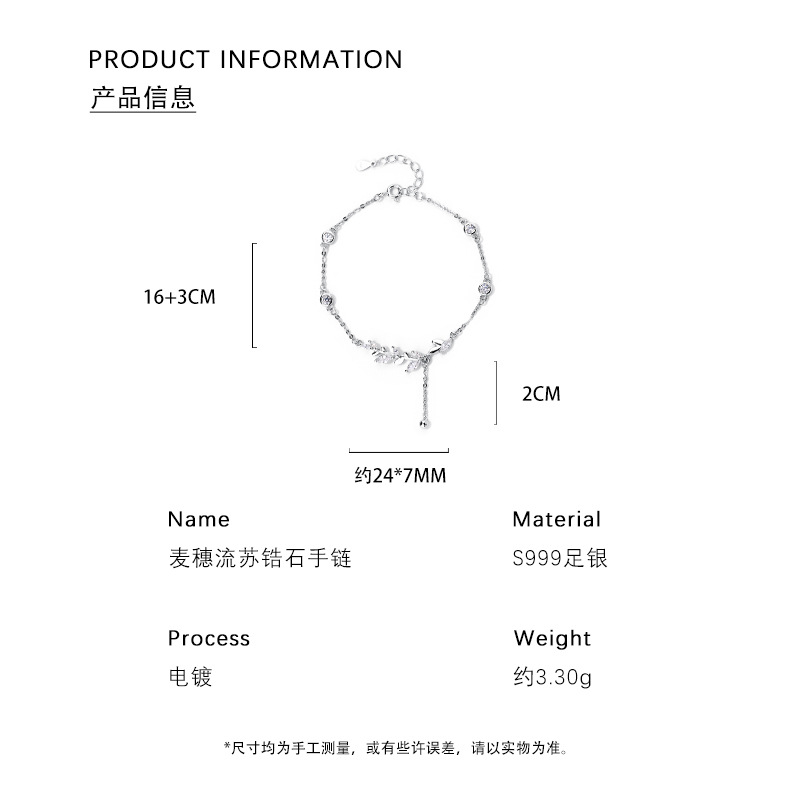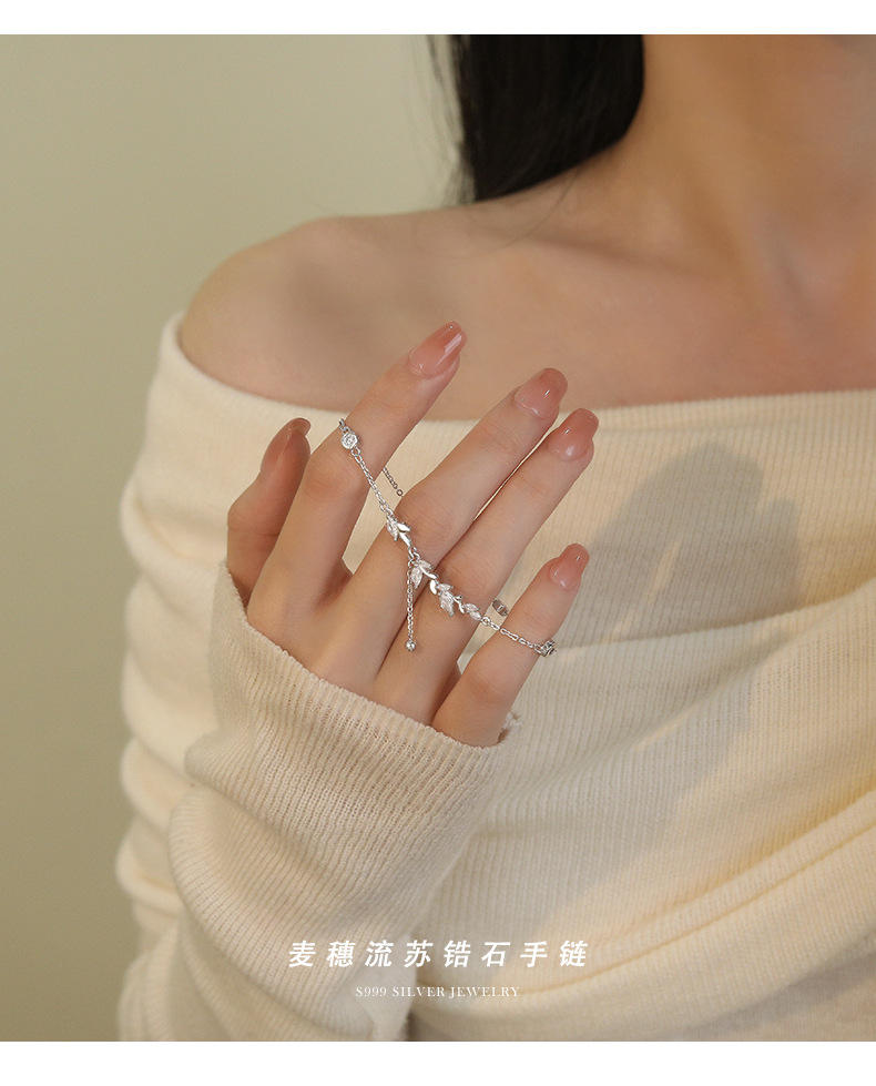 「穗穗平安」s999纯银麦穗流苏手链女轻奢小众送闺蜜女友生日礼物