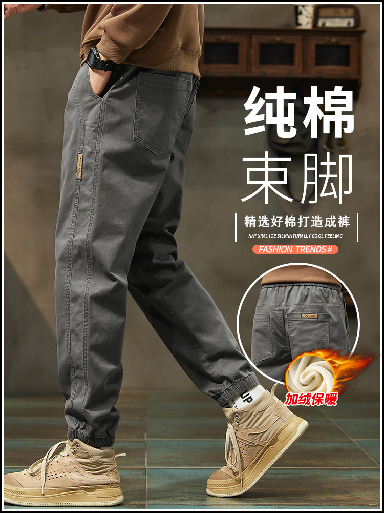 加绒加厚工装裤男款秋冬季2025新款运动裤子男士宽松纯棉休闲裤男