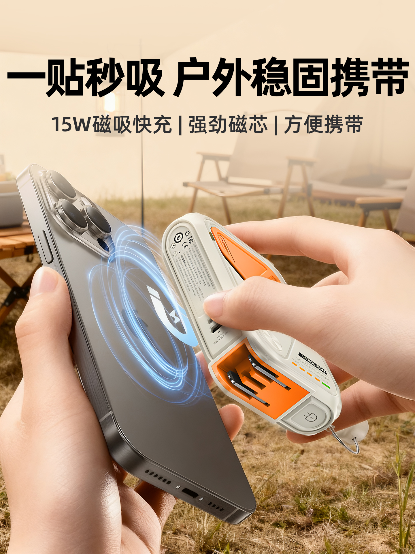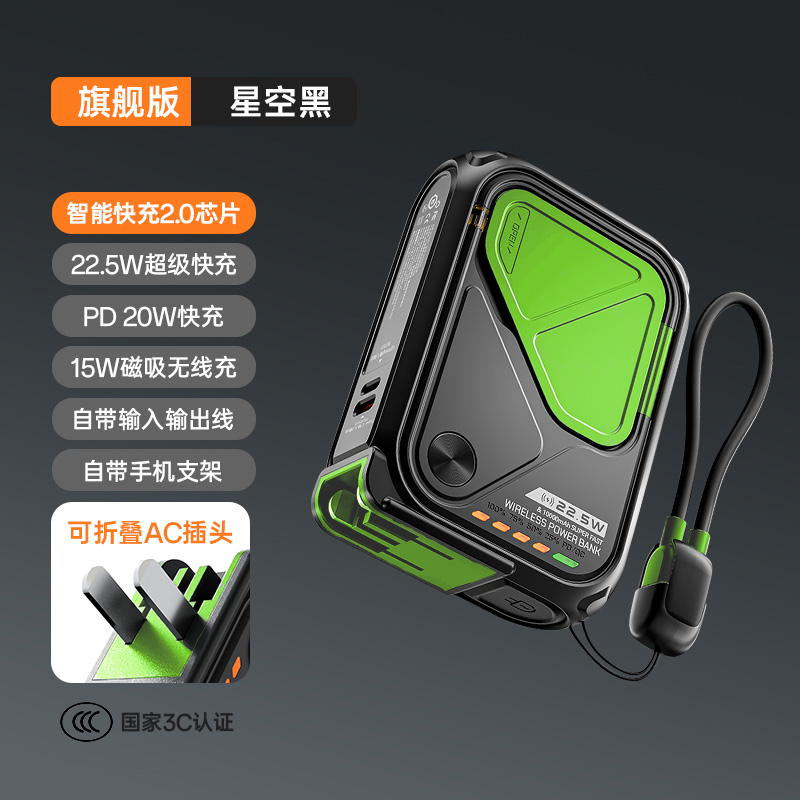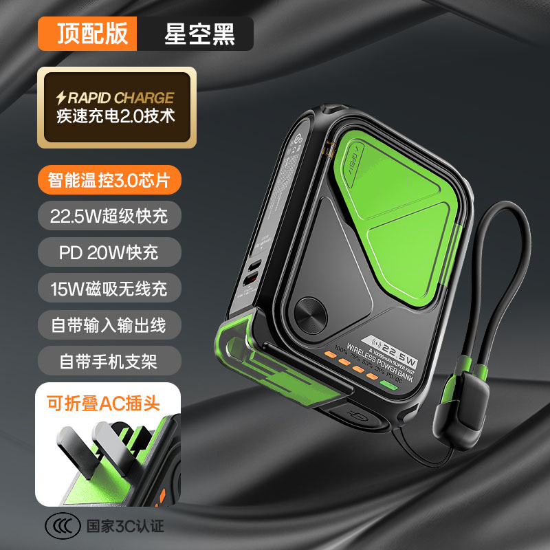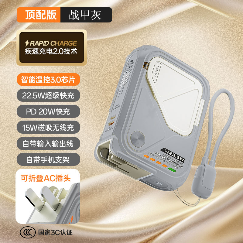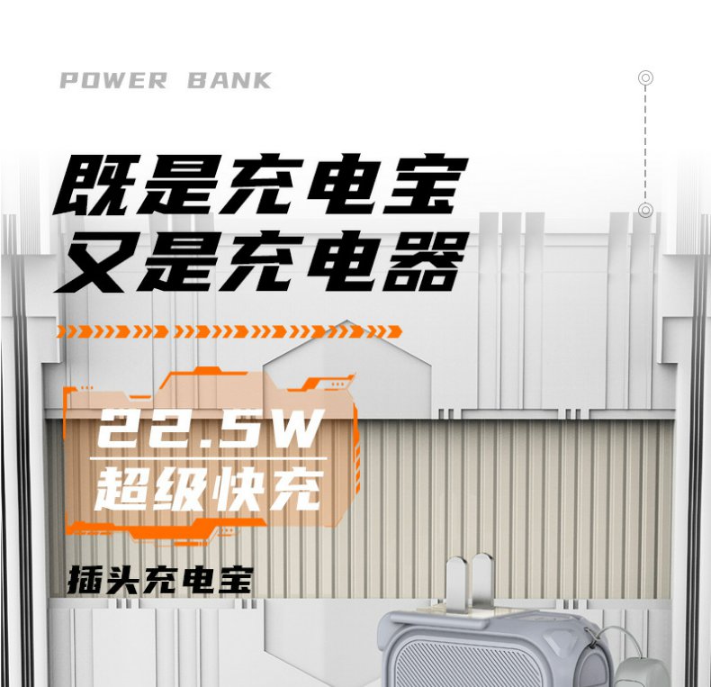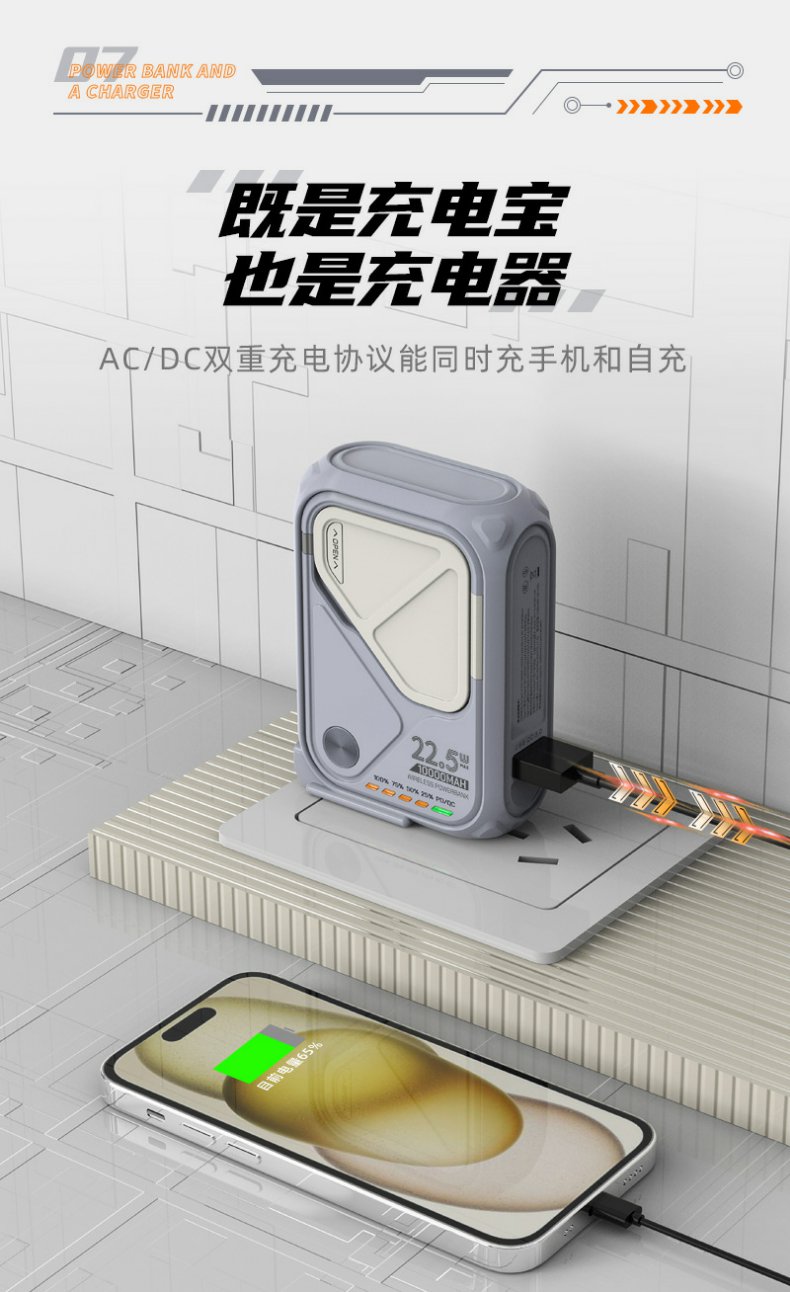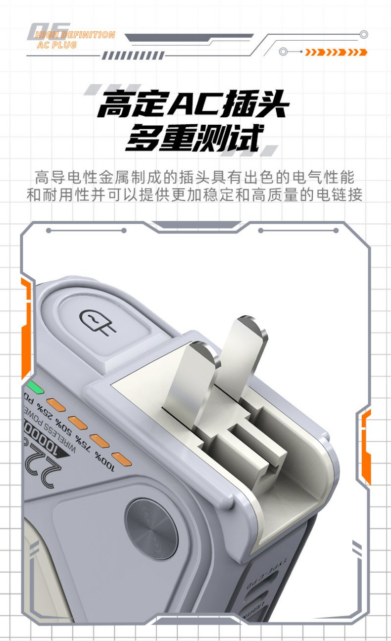 【3C认证充电宝】VOVUVA自带AC插头五合一20000毫安快充磁吸无线大容量充电宝苹果安卓通用移动电源可上飞机