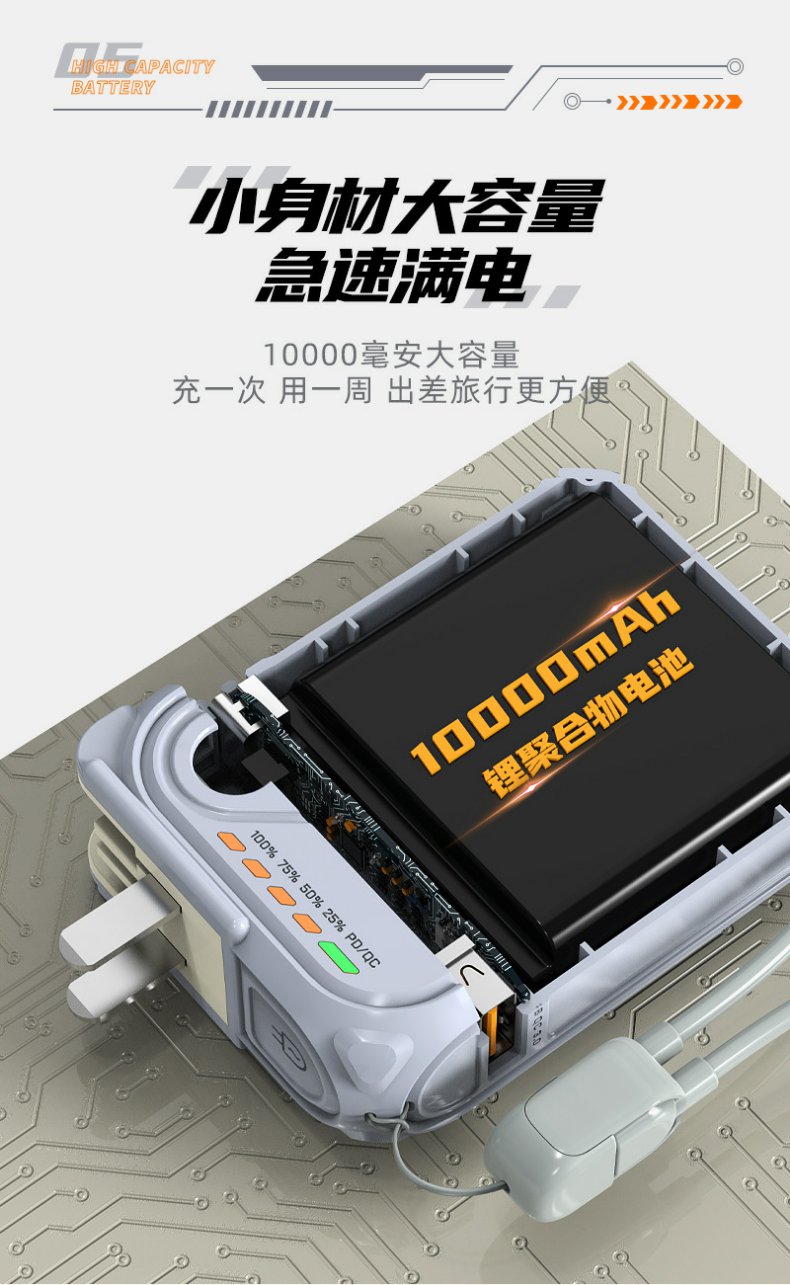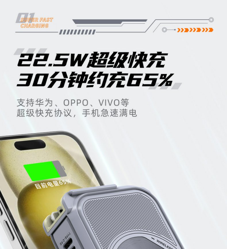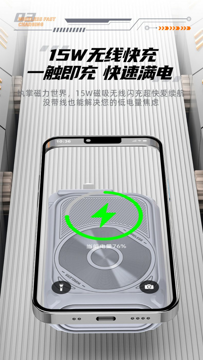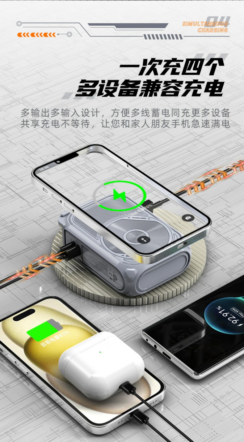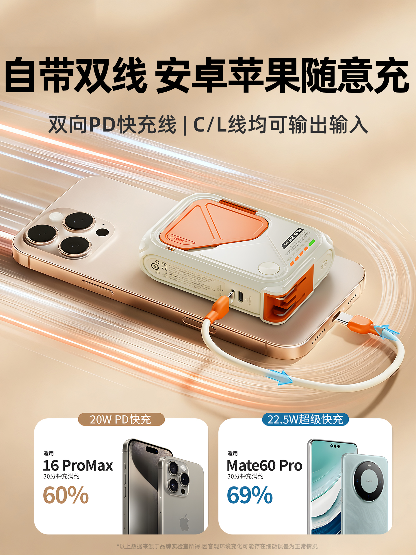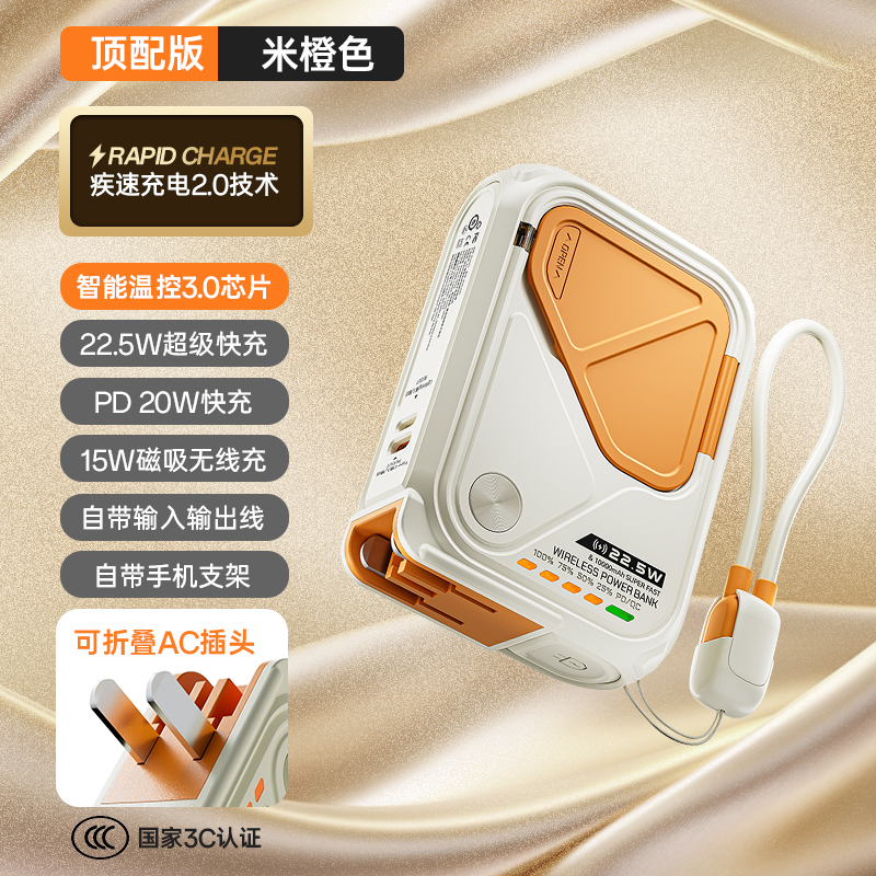 【3C认证充电宝】VOVUVA自带AC插头五合一20000毫安快充磁吸无线大容量充电宝苹果安卓通用移动电源可上飞机