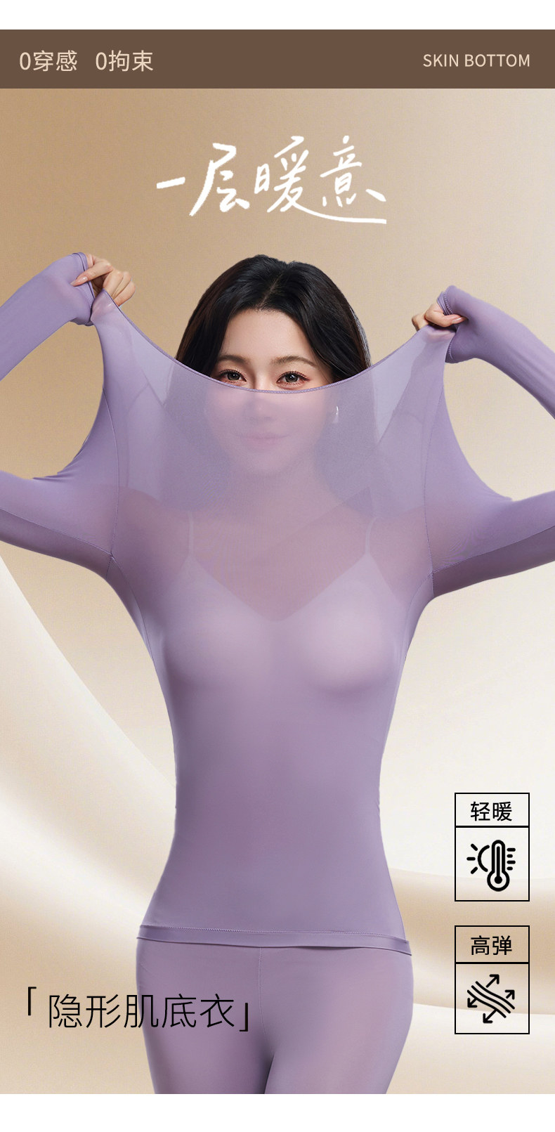 超薄美肤肌底衣37°恒温发热美肤衣保暖内衣打底衫秋衣裤套装女