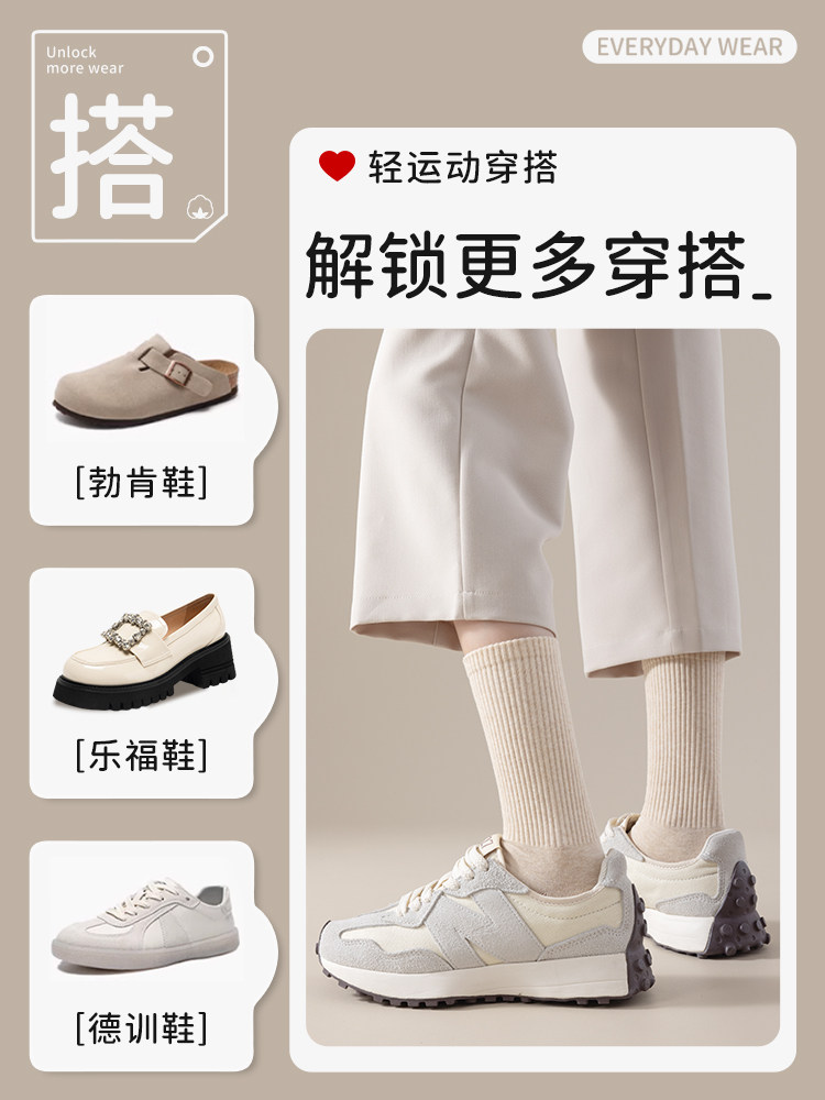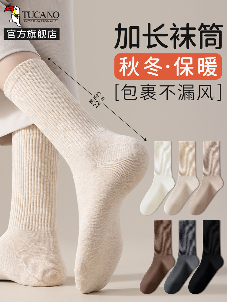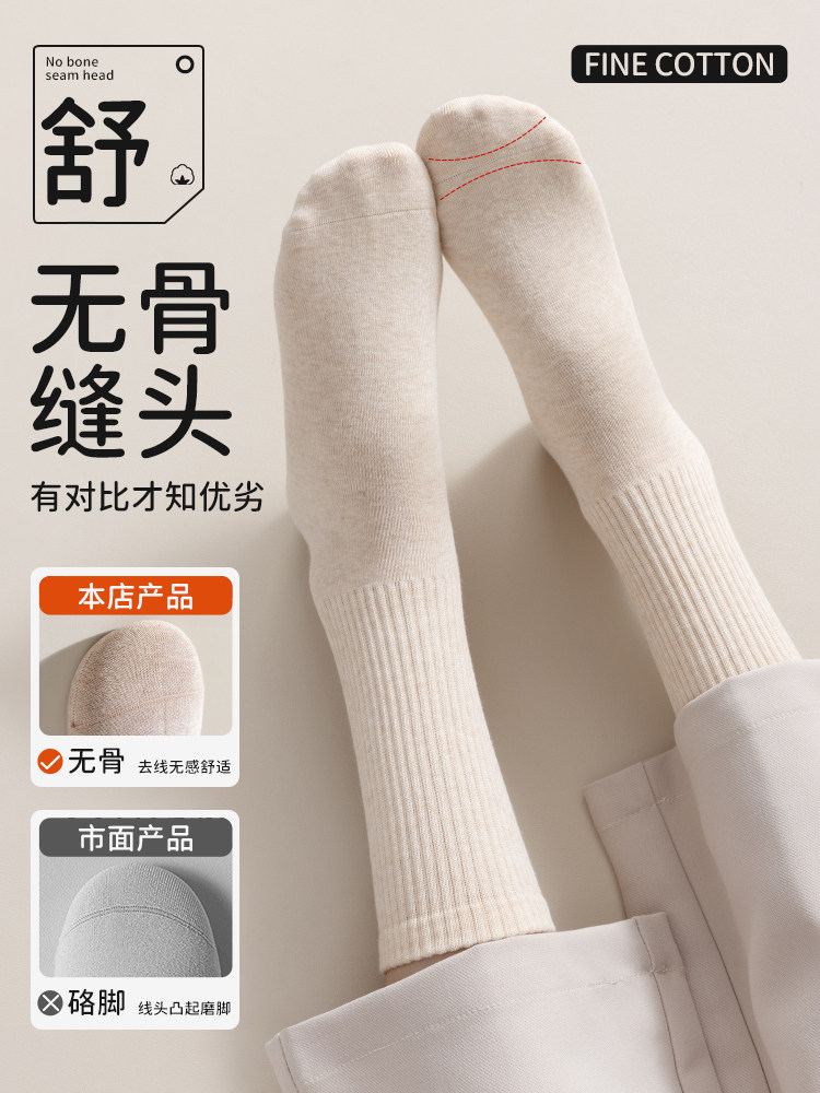 袜子女士中筒春秋冬季棉袜无骨月子袜2026新款保暖加厚长筒袜冬天
