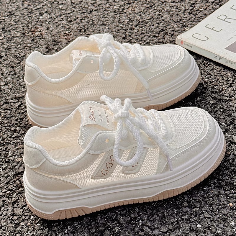蓓尔百搭小白鞋女2025新款夏秋不累脚女生板鞋小众爆款厚底运动鞋