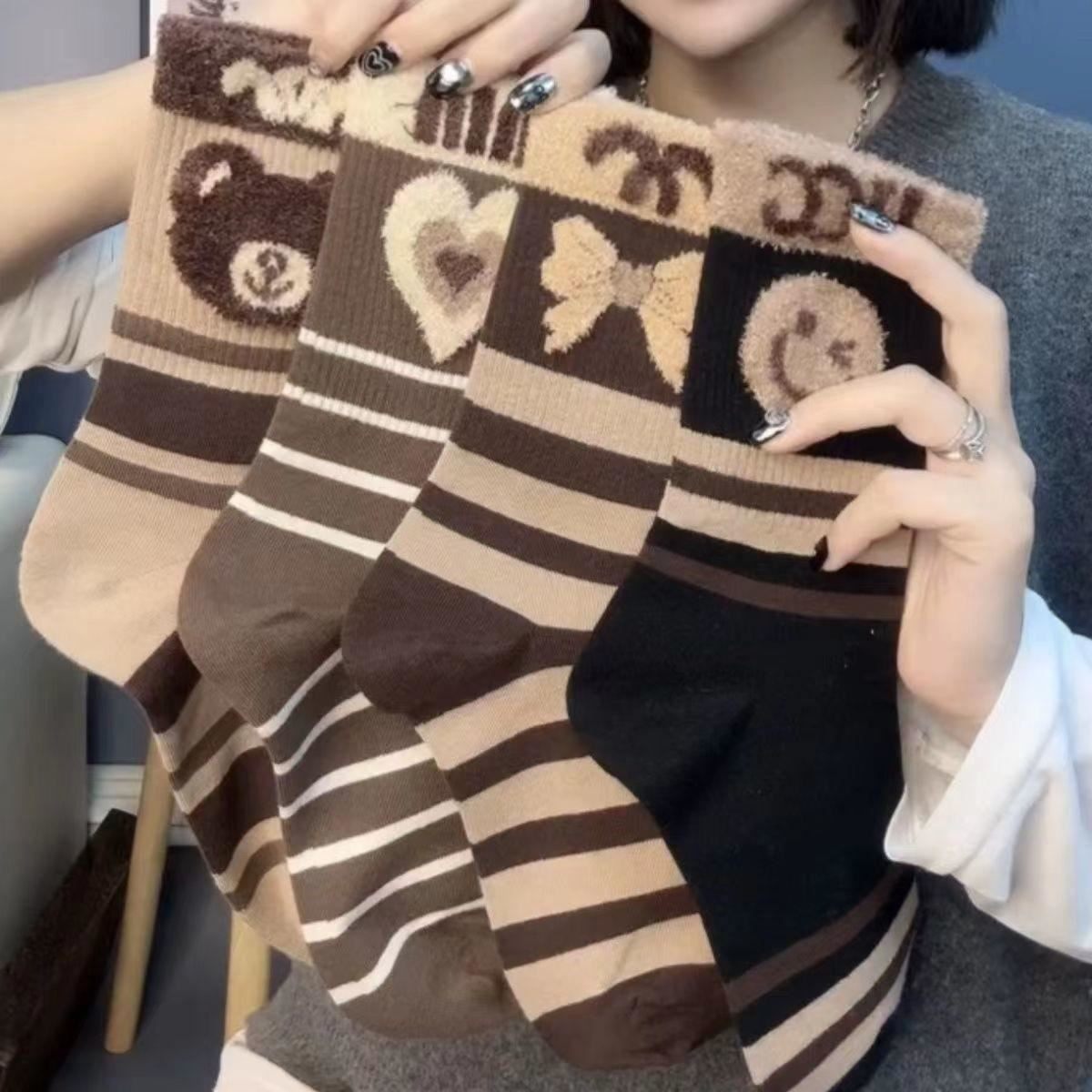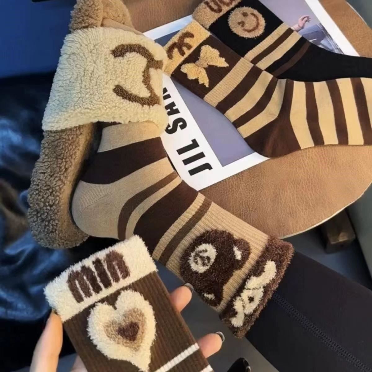 袜子女秋冬款长筒加厚高颜值网红爆款高腰甜美可爱字母纯棉饰品