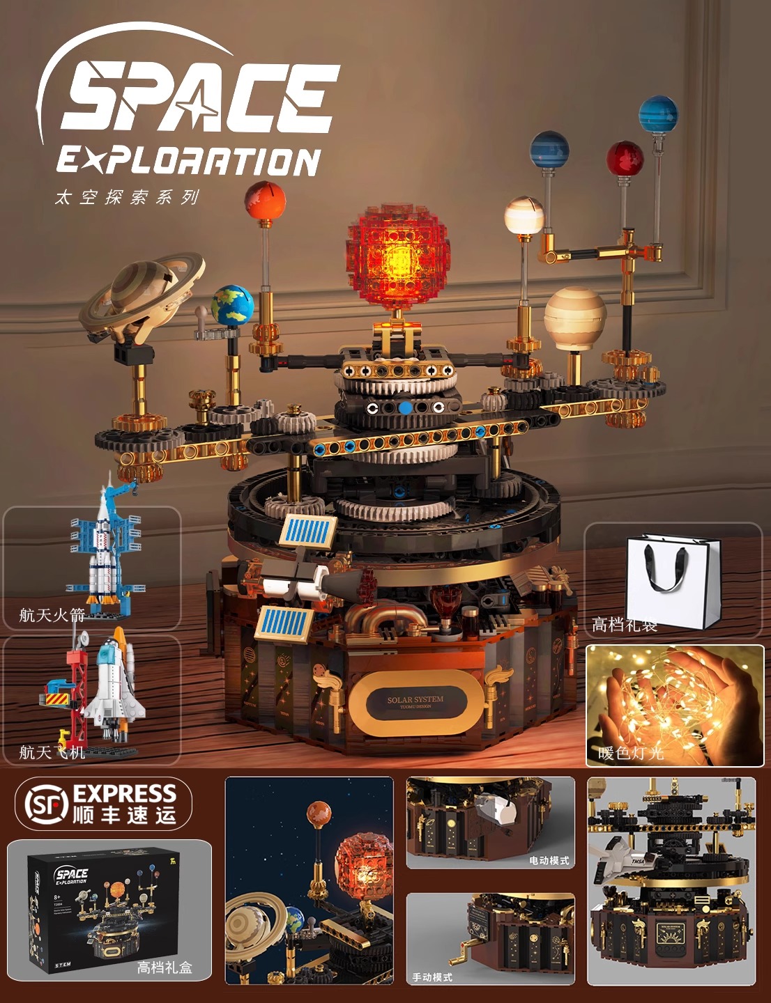 运转太阳系八大行星模型宇宙星球积木男孩子儿童电动玩具生日礼物