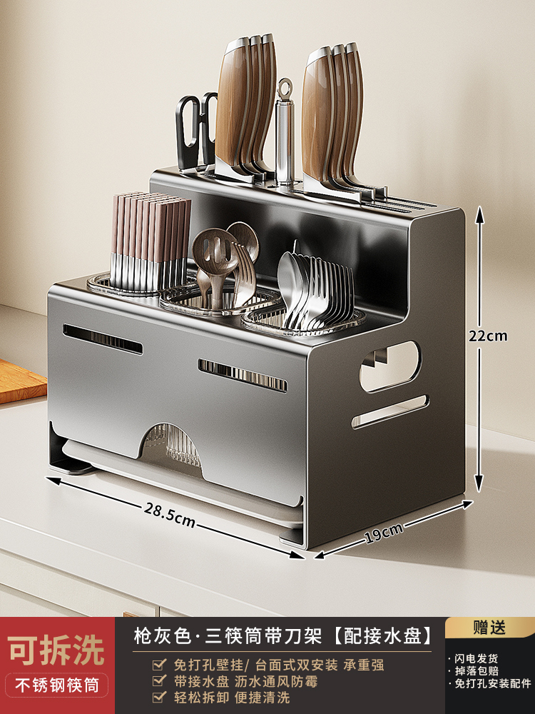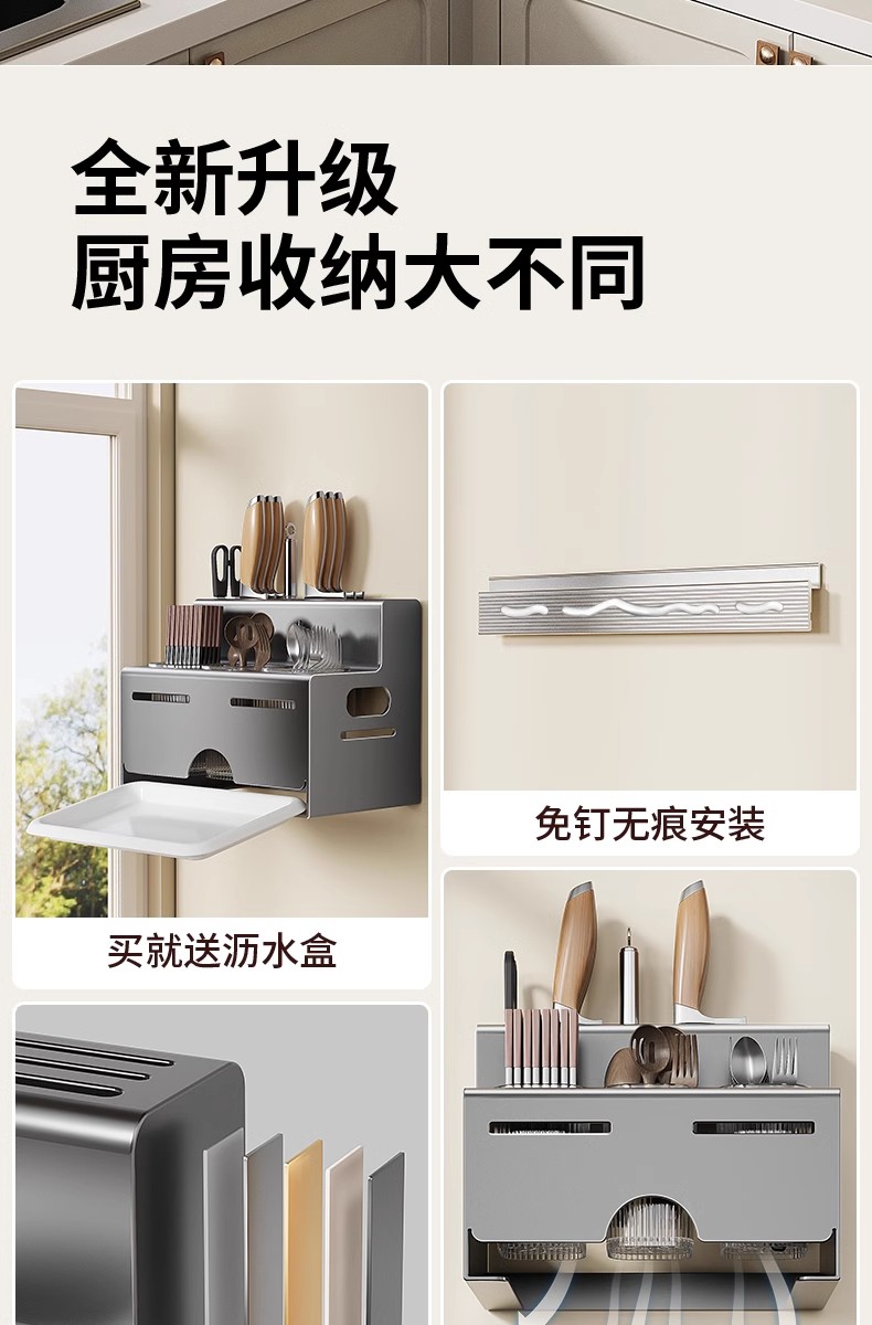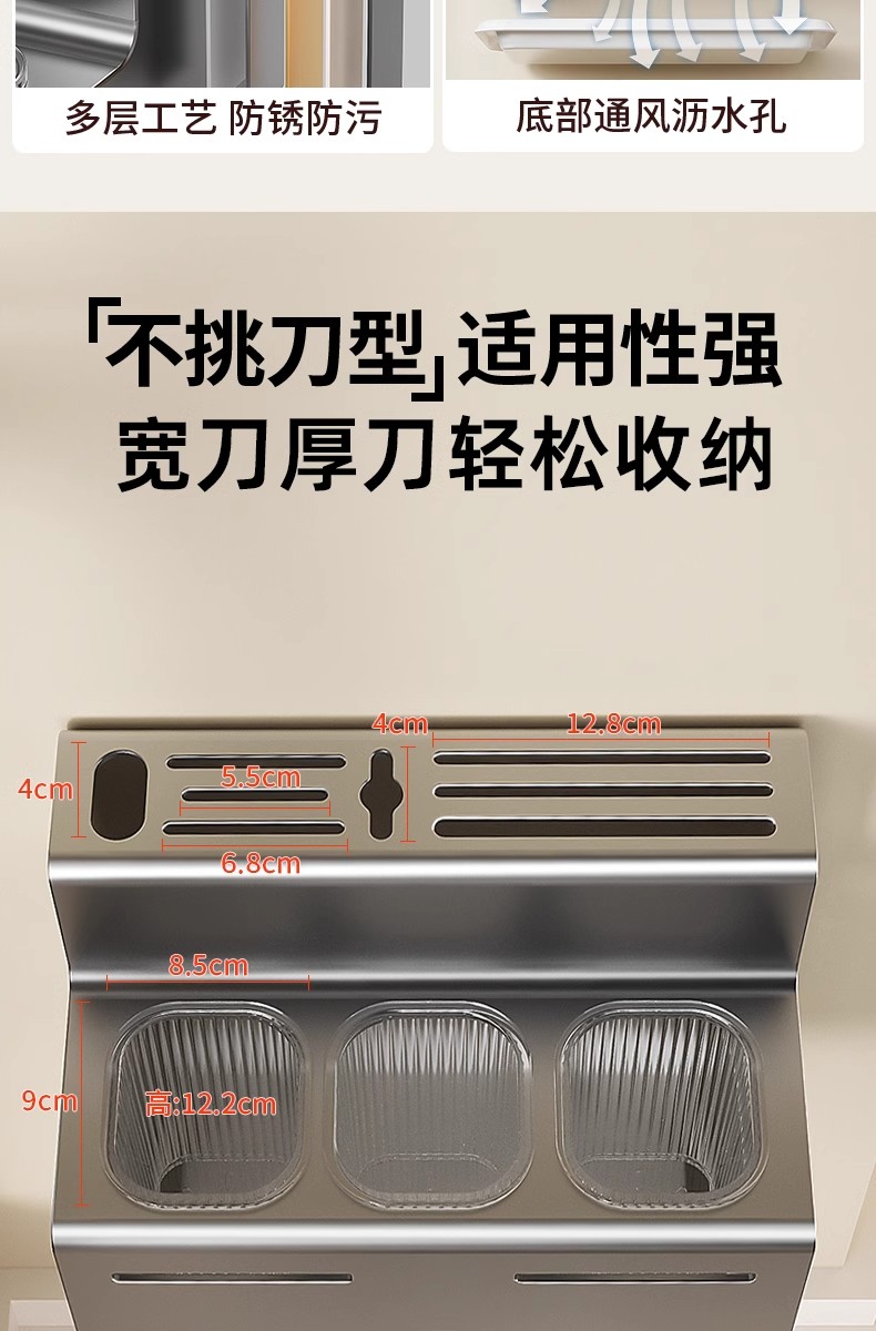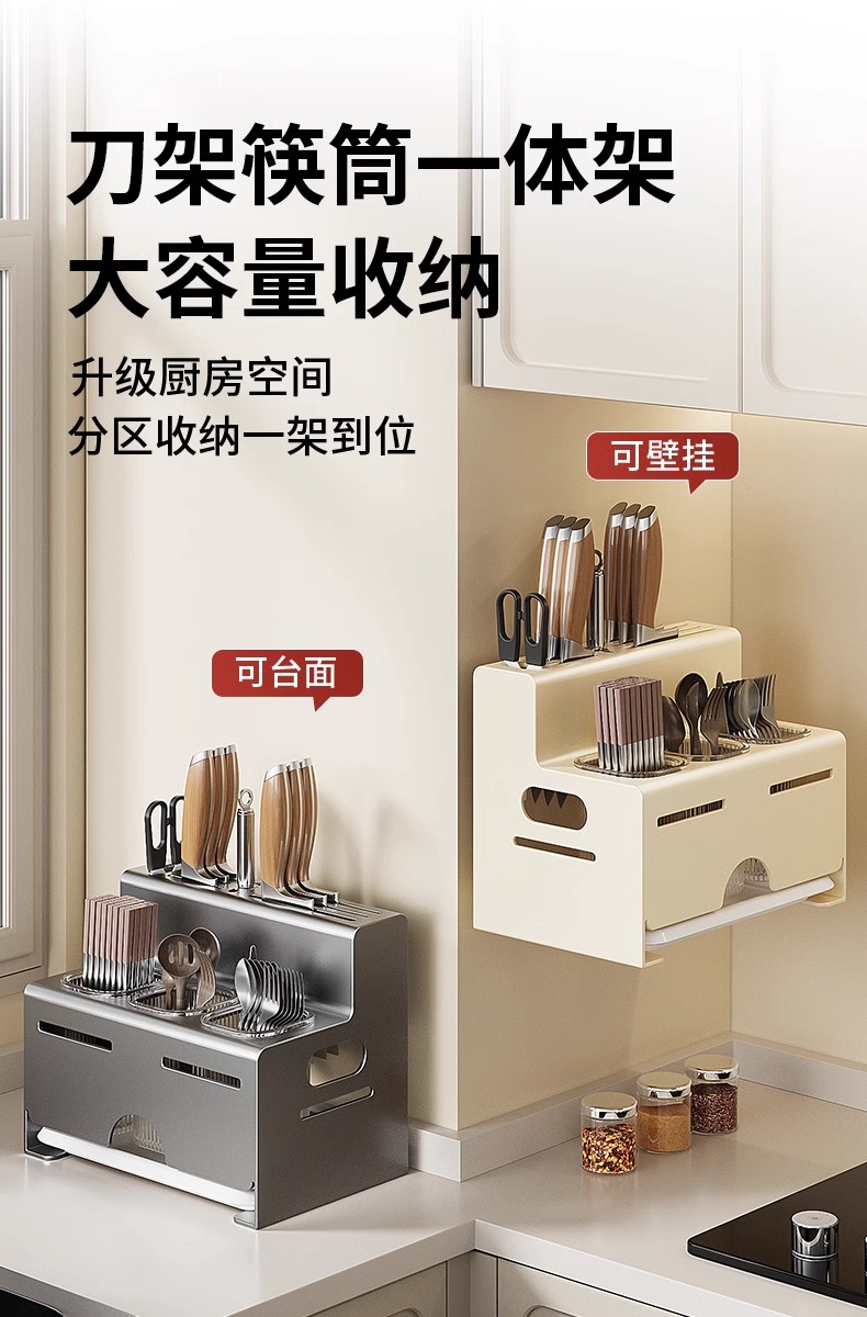 德国刀架筷一体置物架收纳盒壁挂式墙上台面菜刀刀具勺子厨房家用