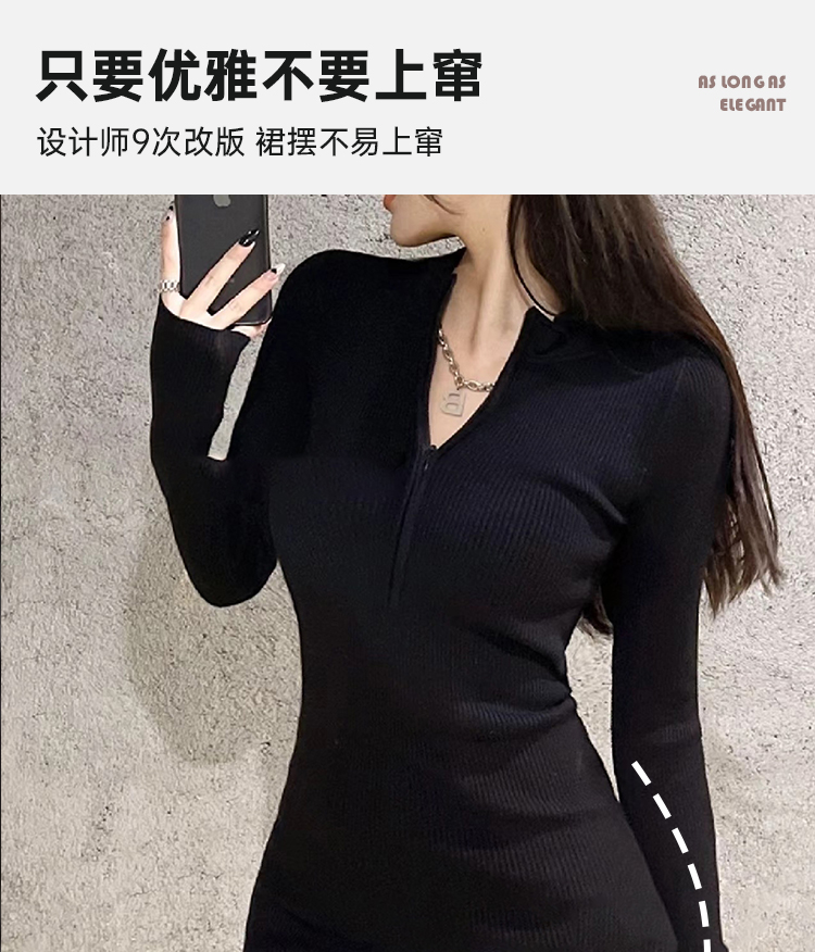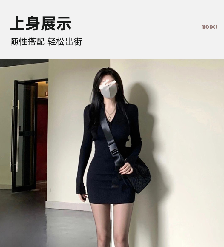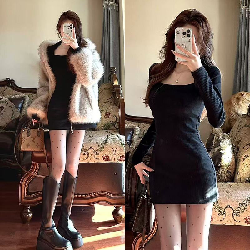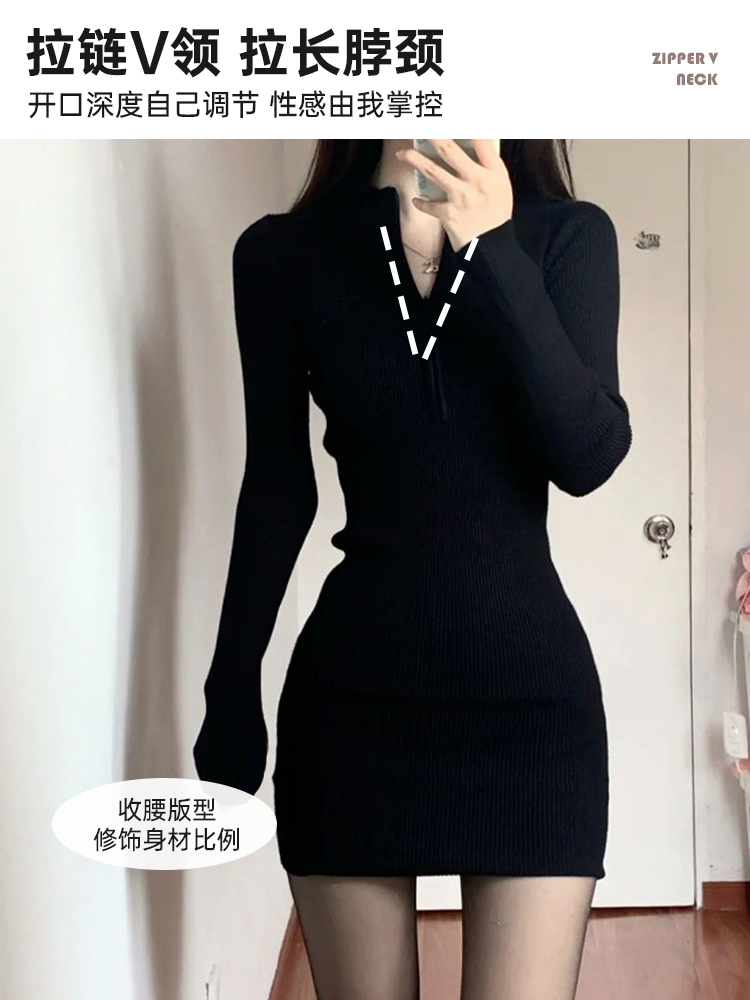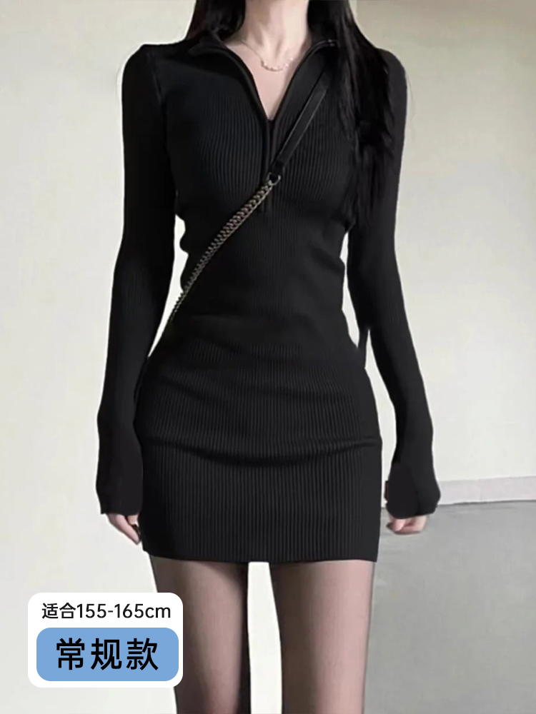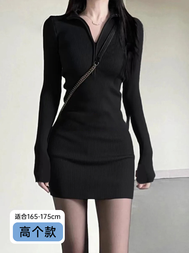 黑色连衣裙女包臀2025新款秋冬配大衣内搭掐腰高级小黑裙修身裙子