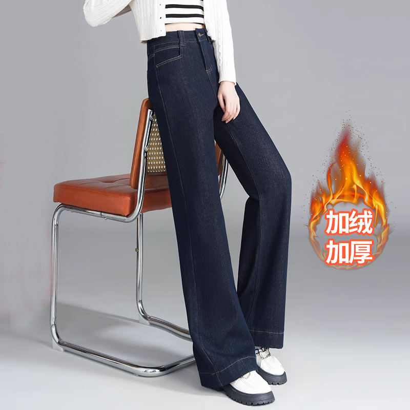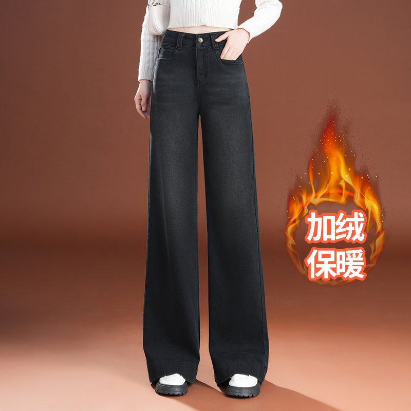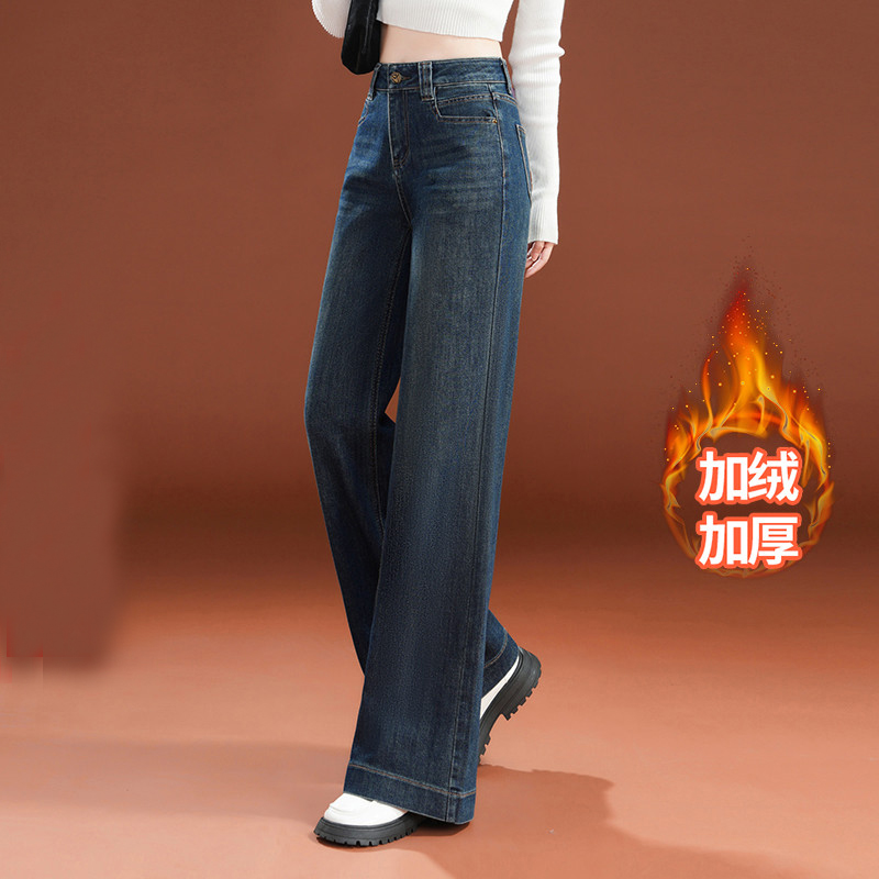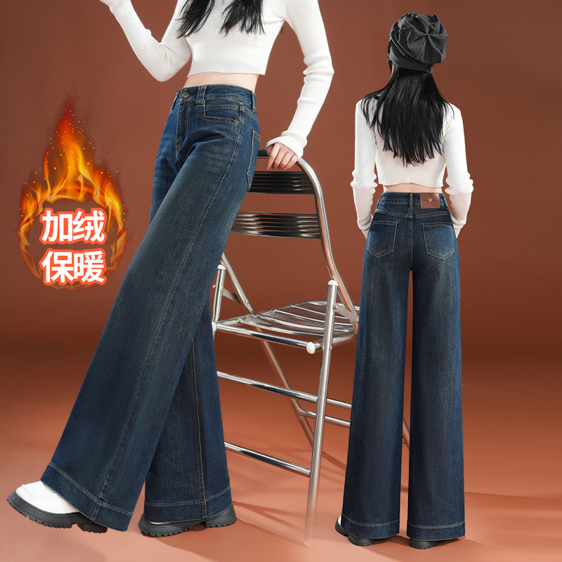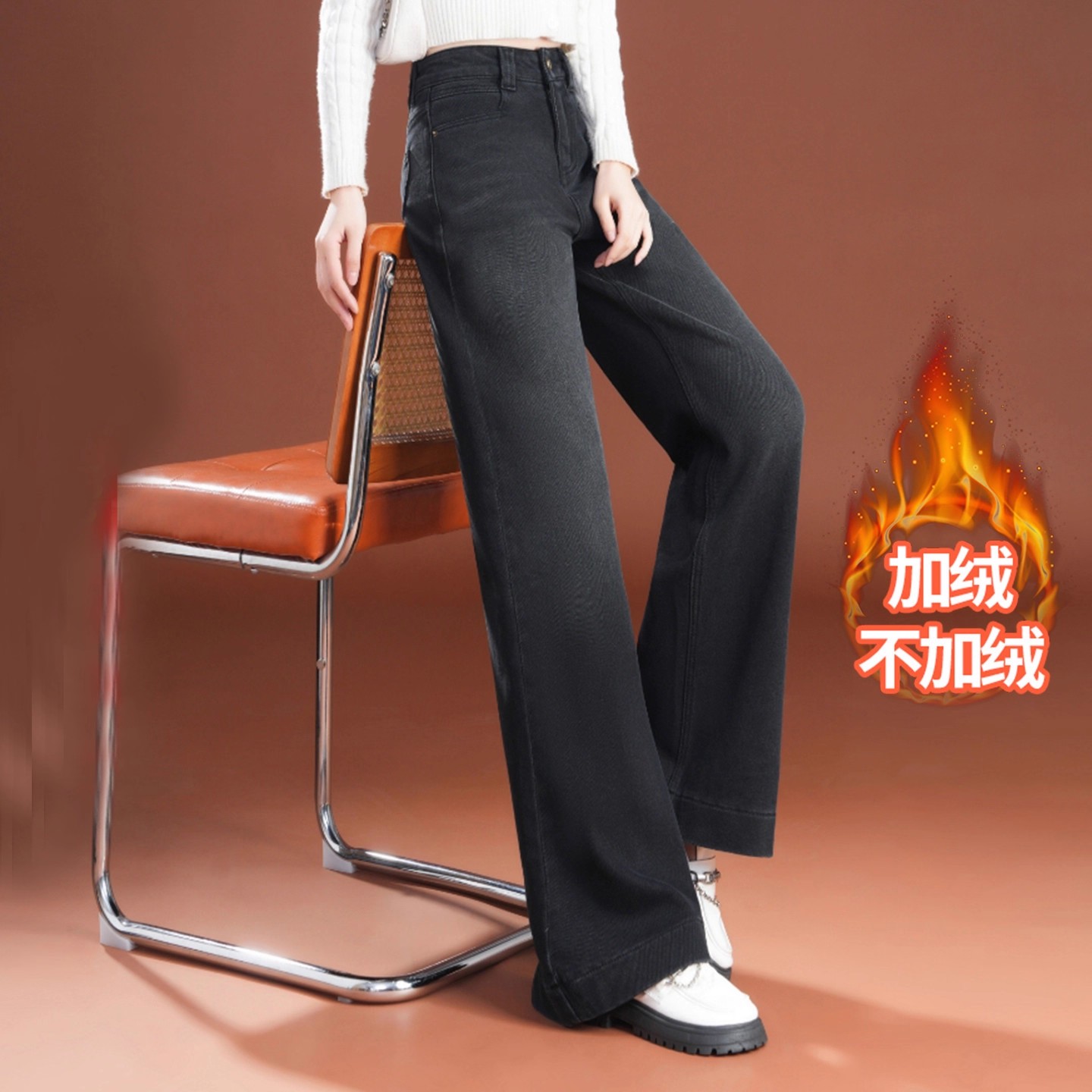 秋冬直筒阔腿牛仔裤女新款高腰加绒加厚裤子宽松显瘦垂感春秋长裤