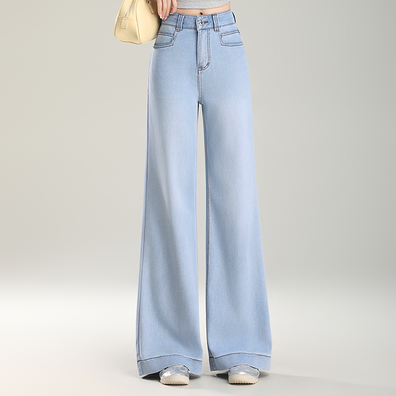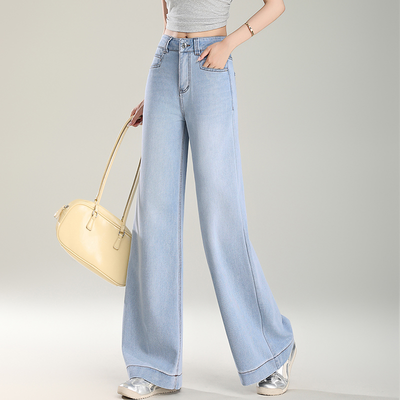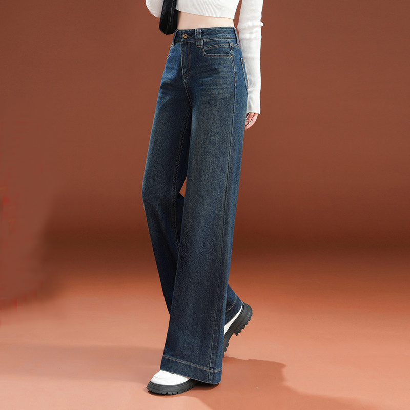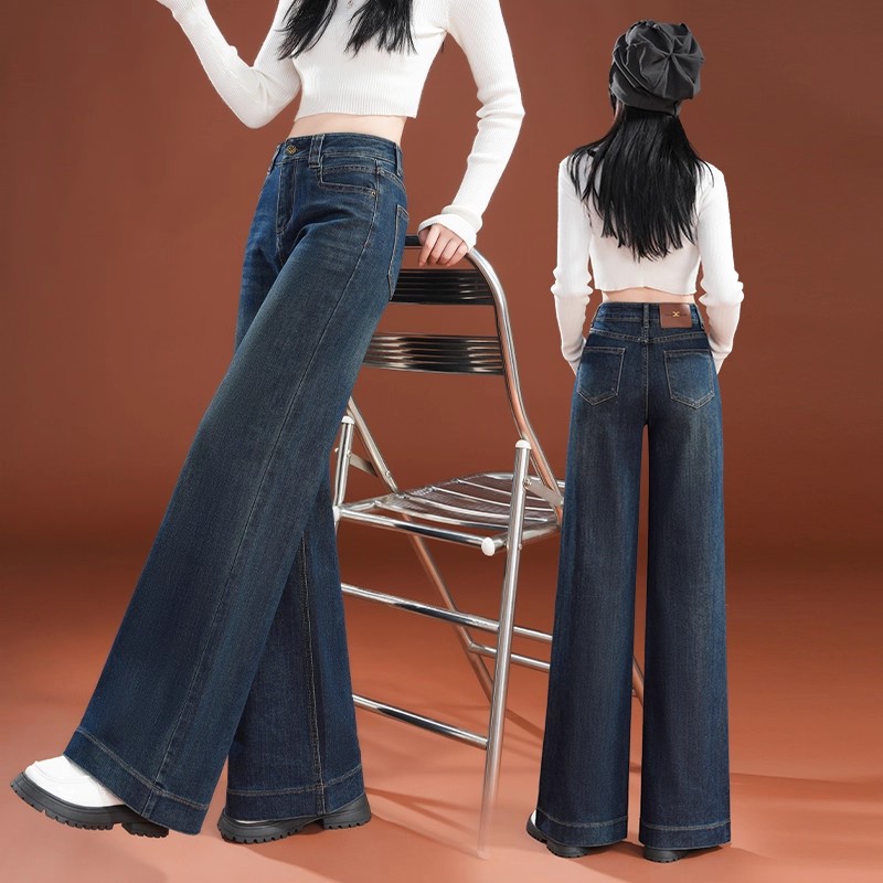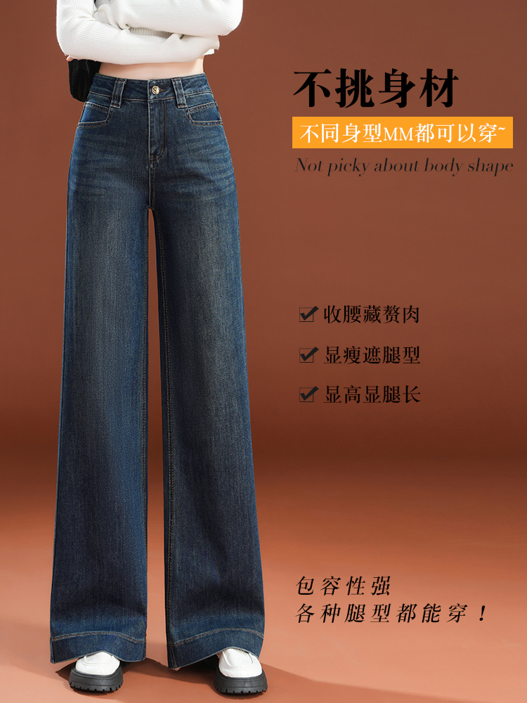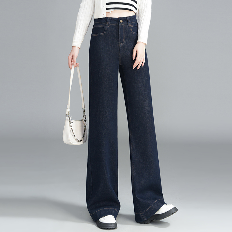秋冬直筒阔腿牛仔裤女新款高腰加绒加厚裤子宽松显瘦垂感春秋长裤