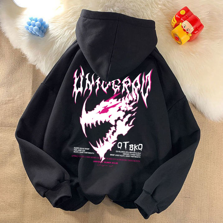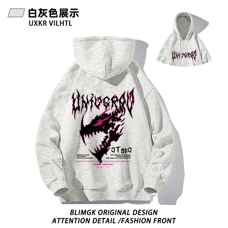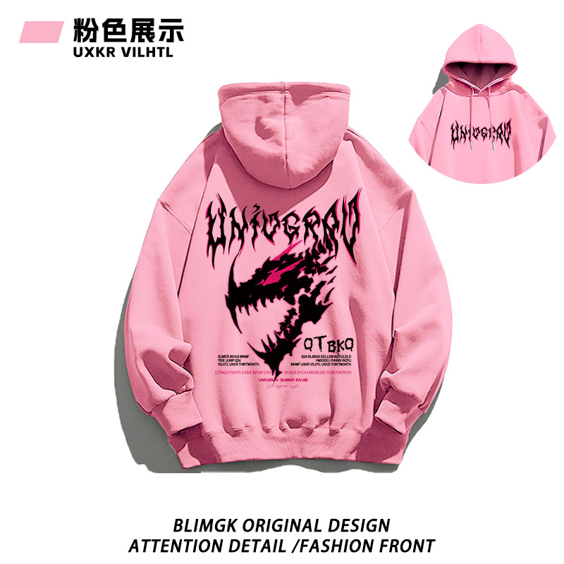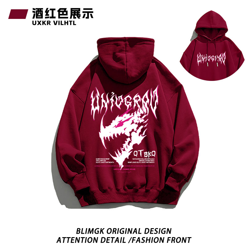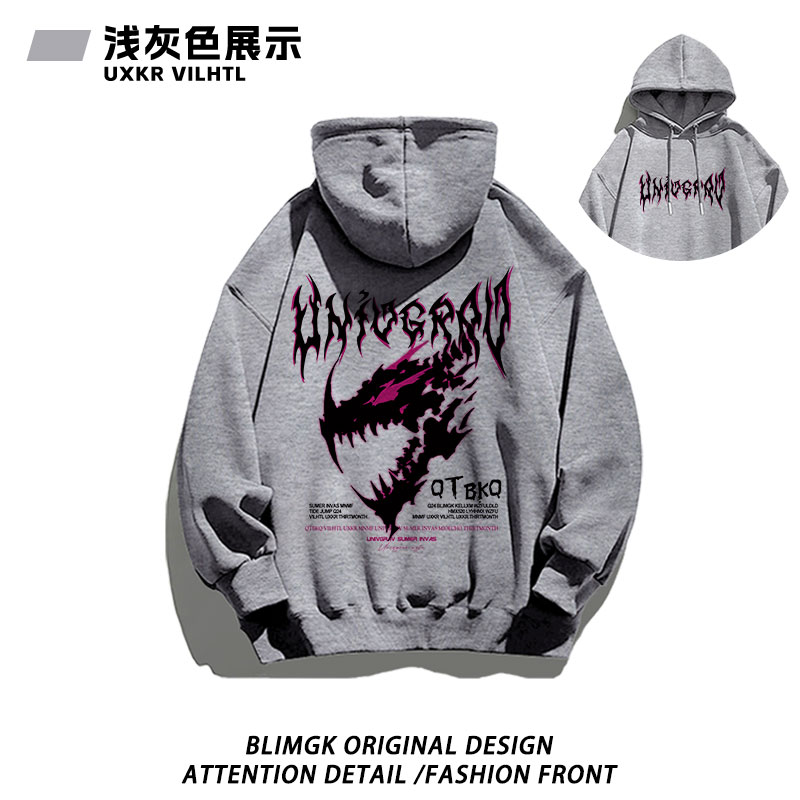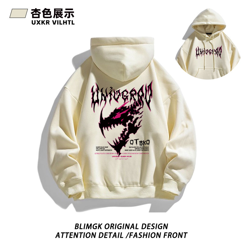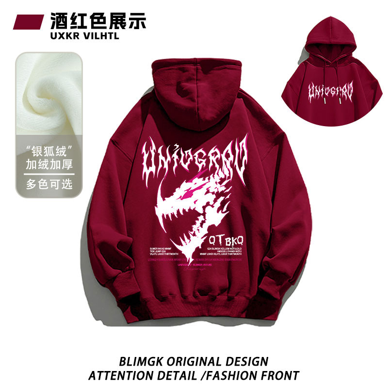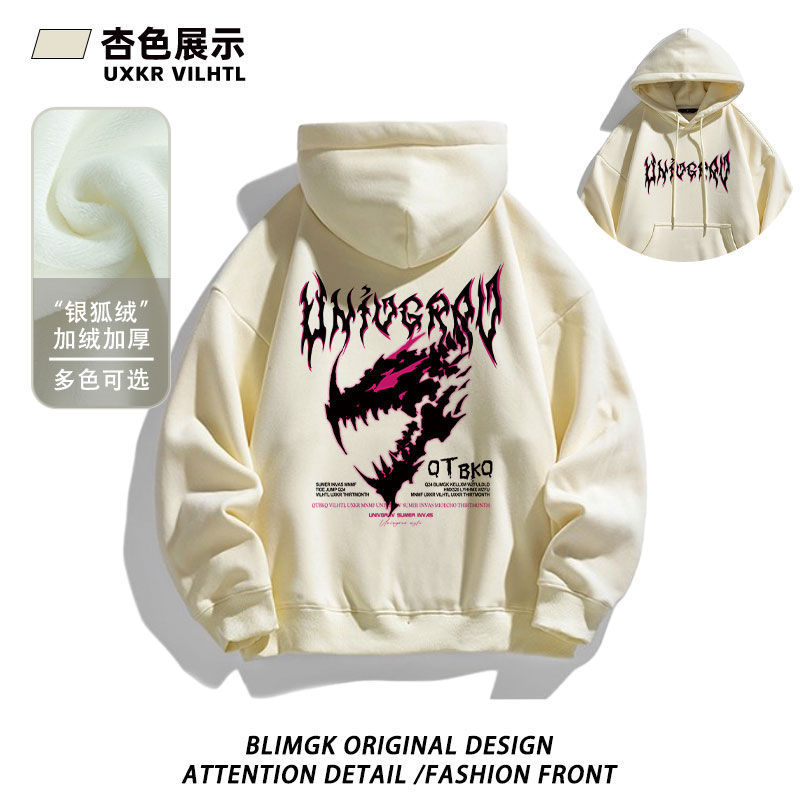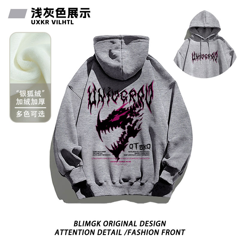 男童连帽卫衣秋冬季加绒新款洋气潮牌痞帅国潮恶龙印花中大童上衣