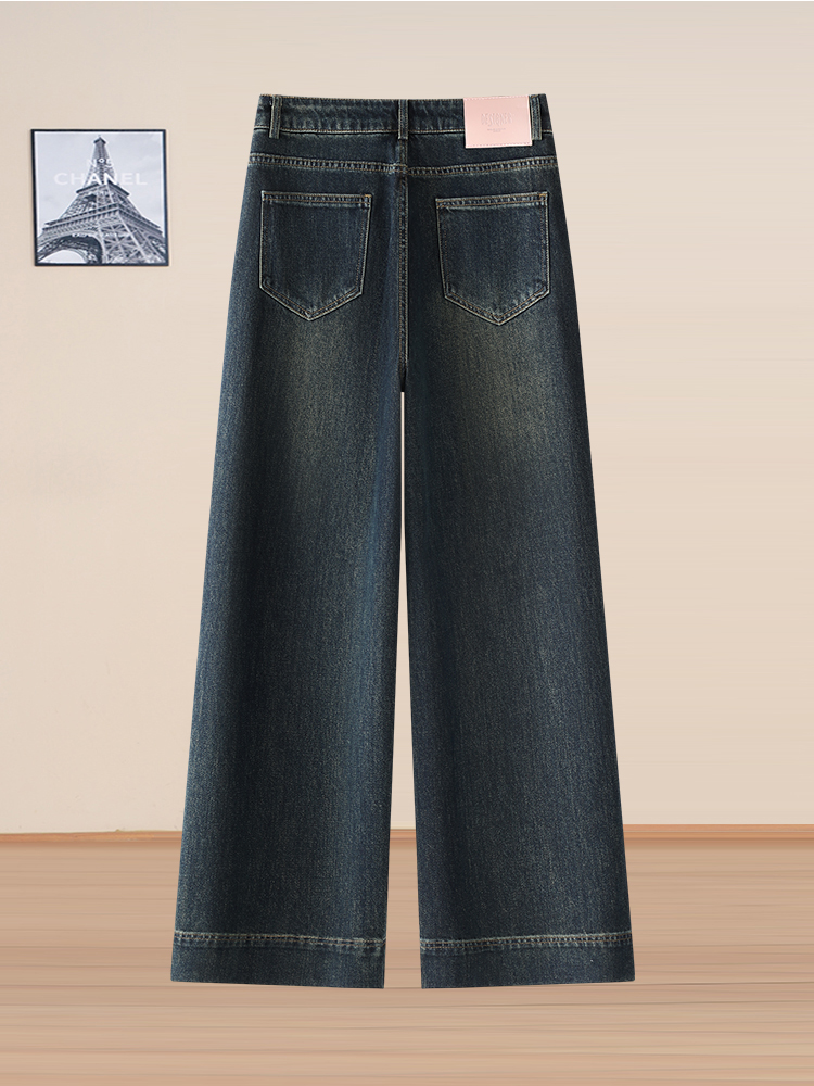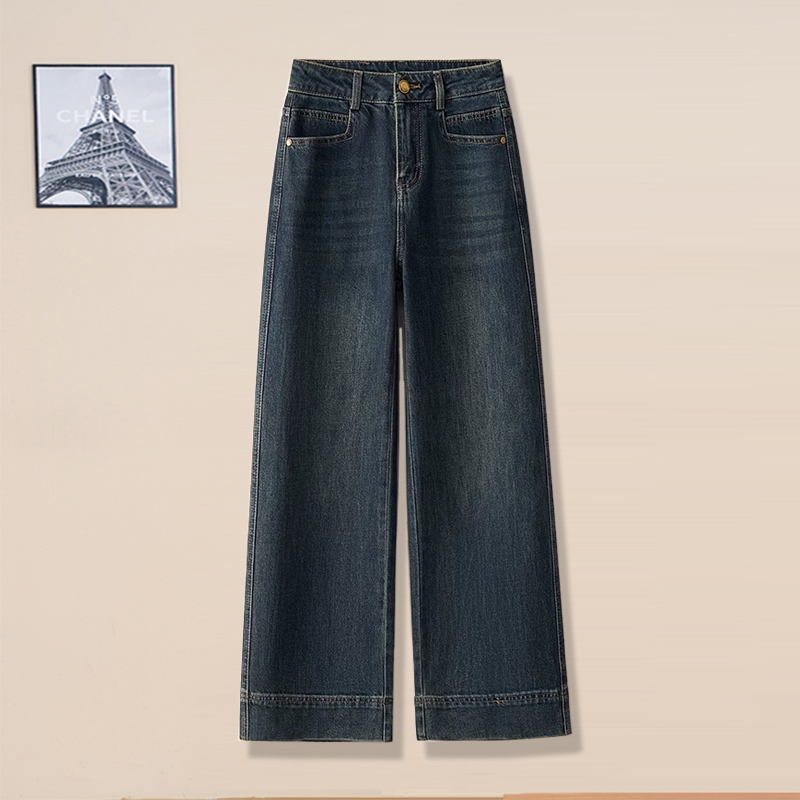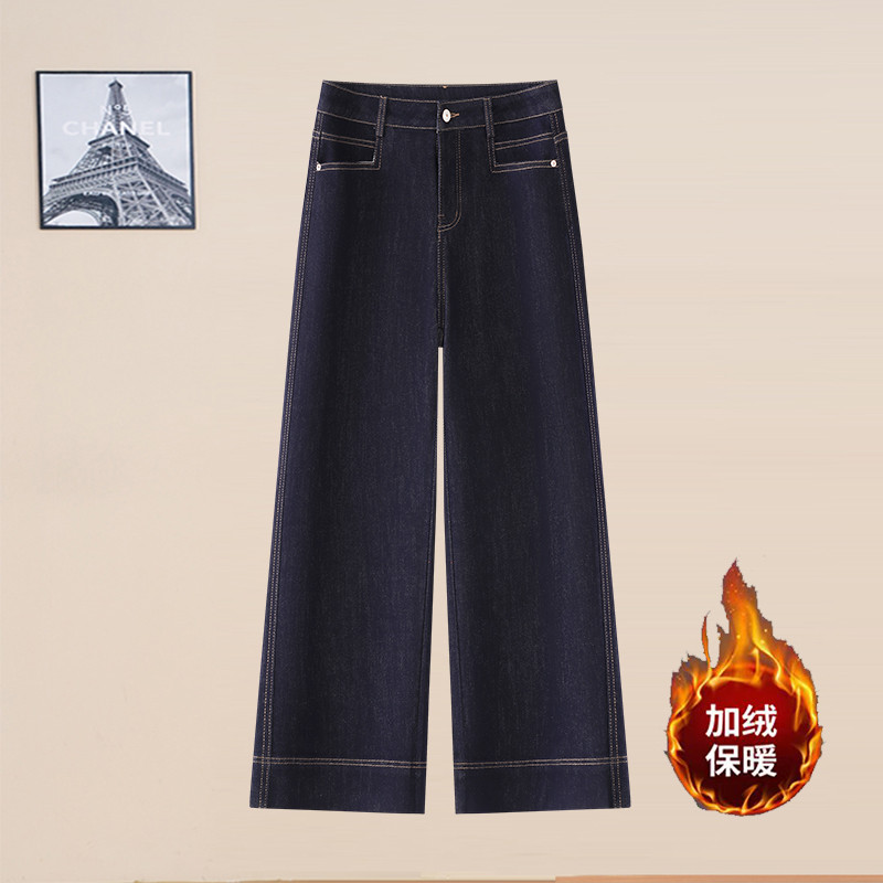 阔腿牛仔裤女秋冬2025新款高腰宽松垂感小个子窄版加绒加厚直筒裤