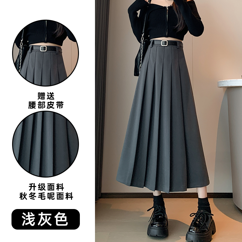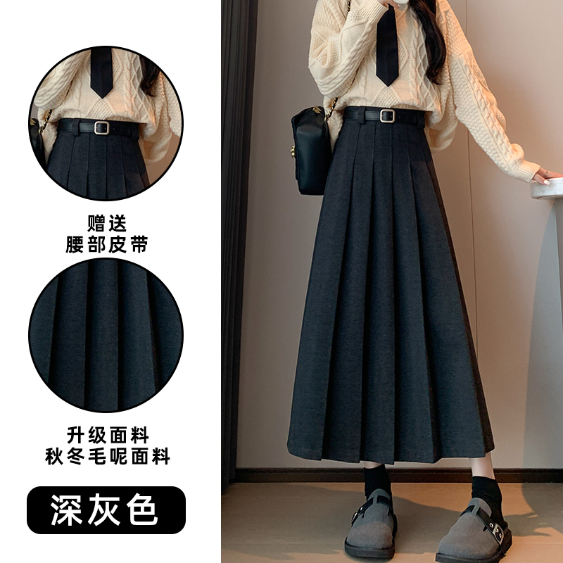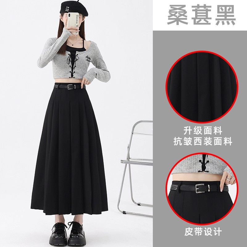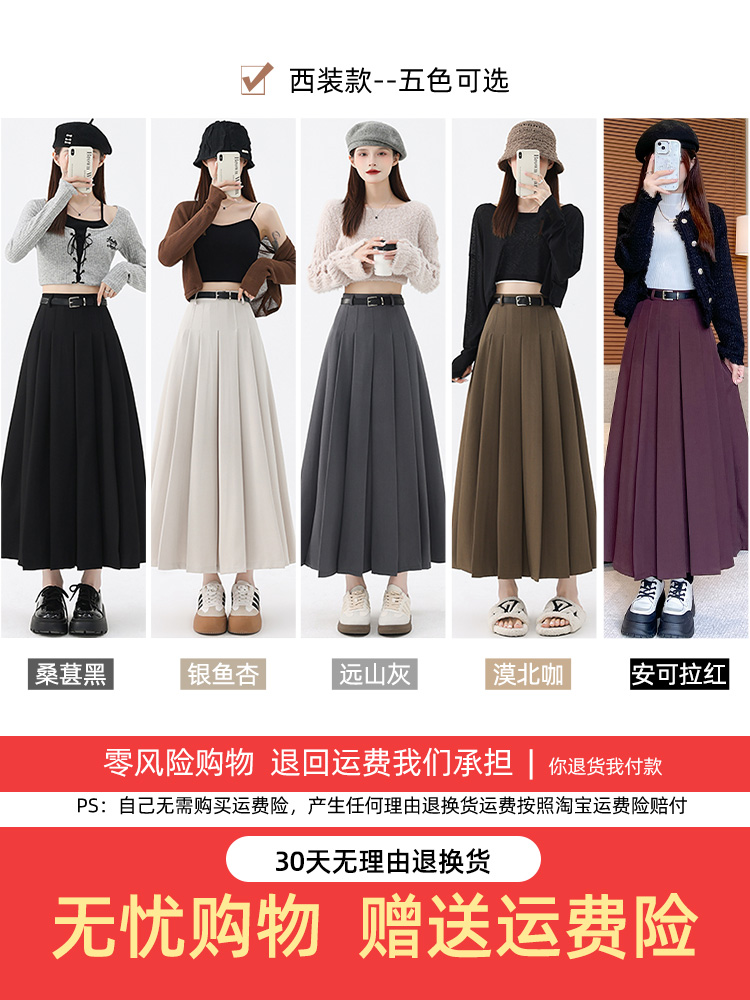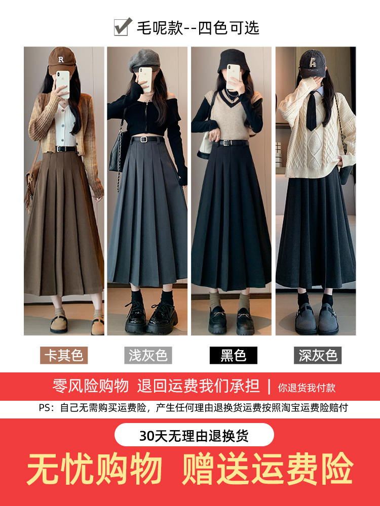 毛呢半身裙女秋冬2025新款高腰中长款西装伞裙黑色显瘦加厚百褶裙