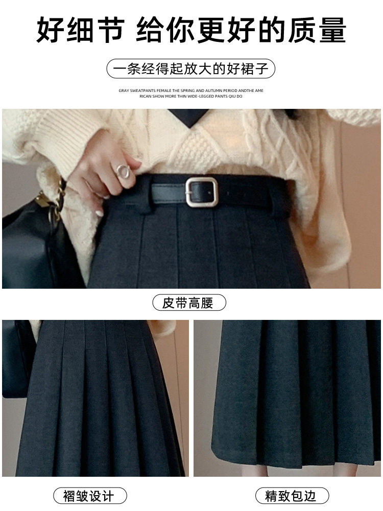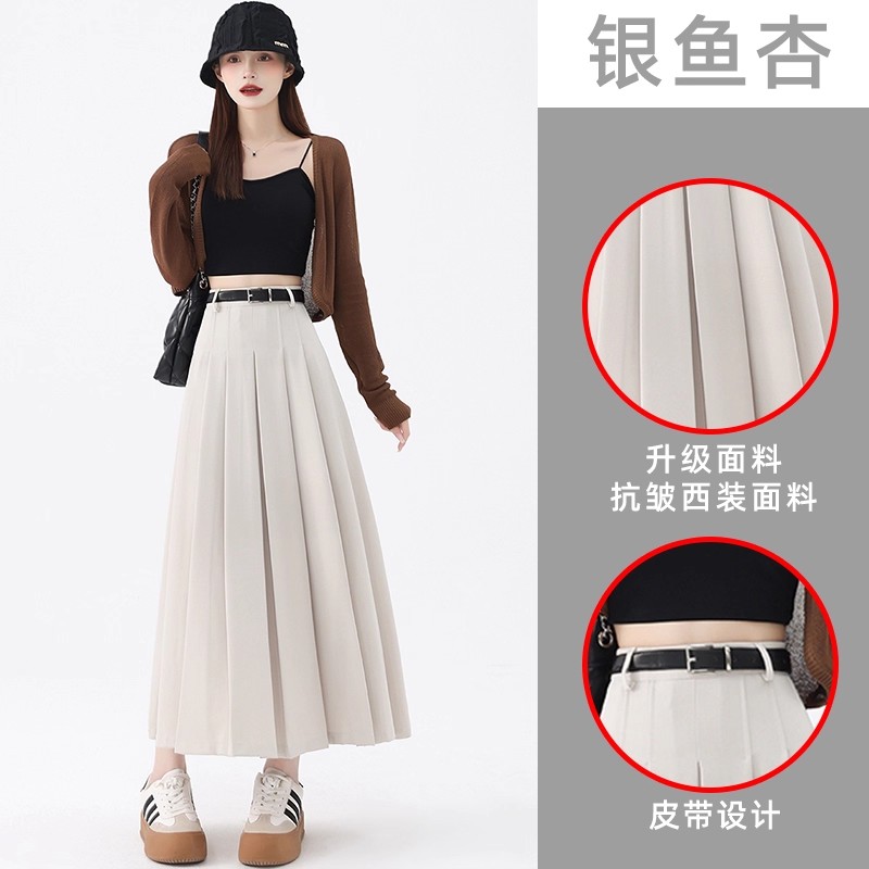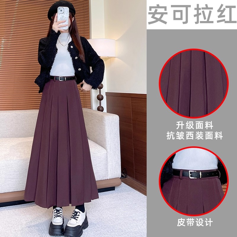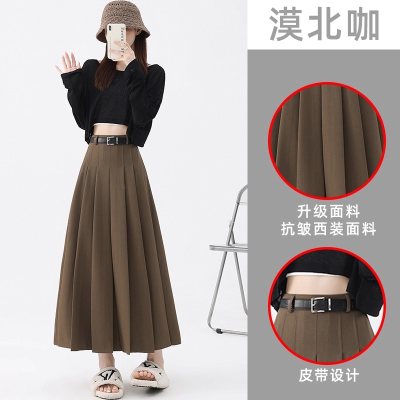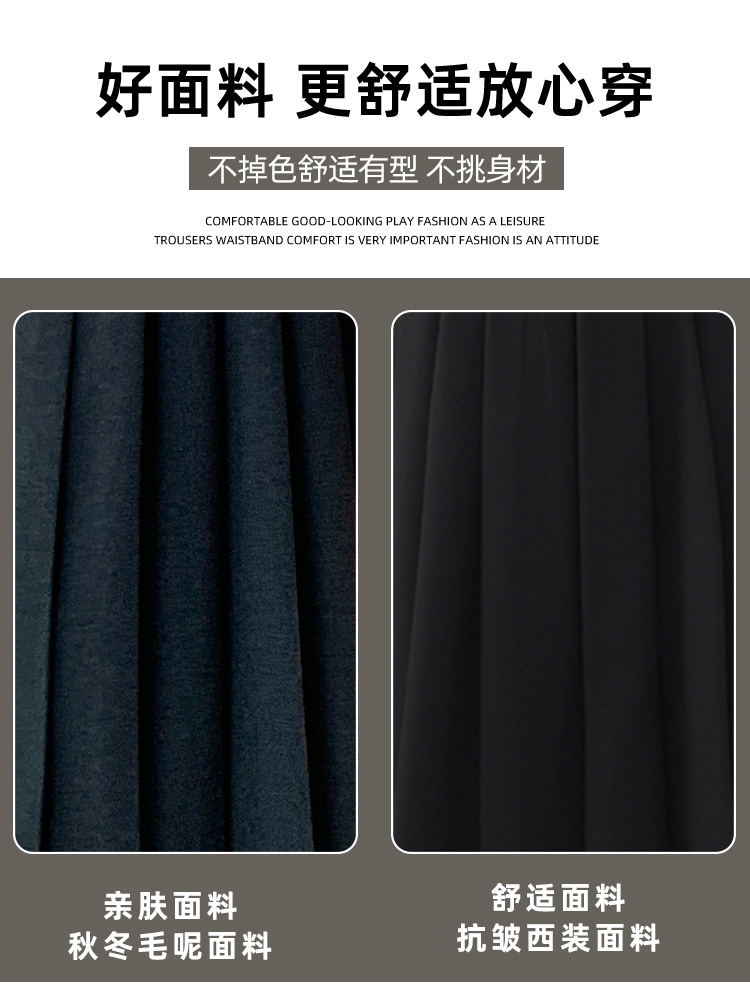 毛呢半身裙女秋冬2025新款高腰中长款西装伞裙黑色显瘦加厚百褶裙