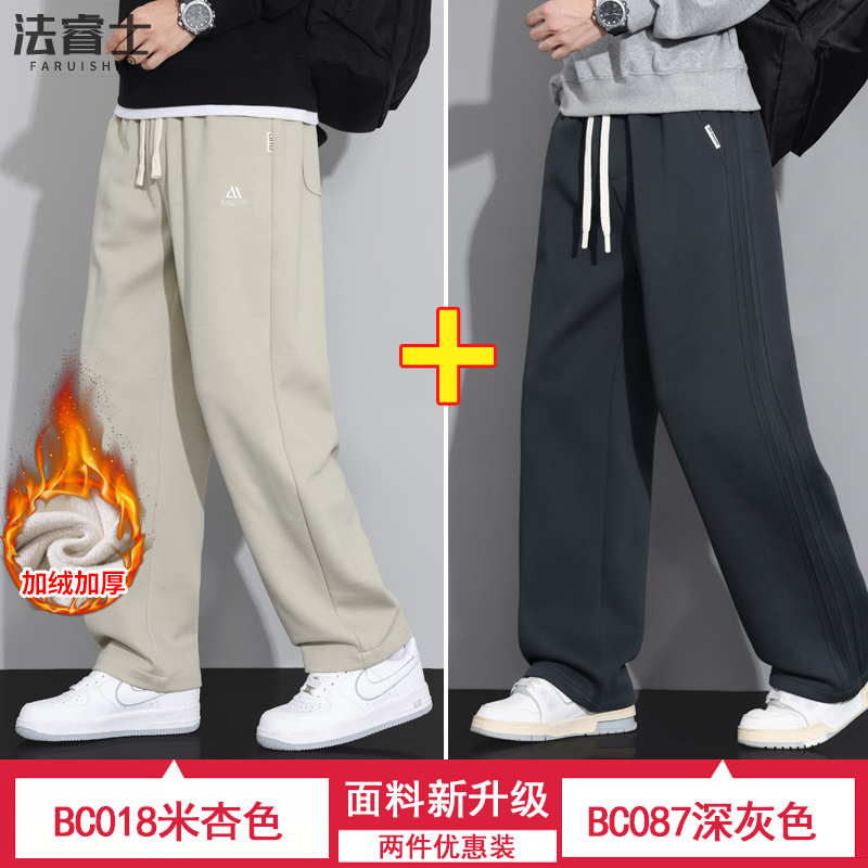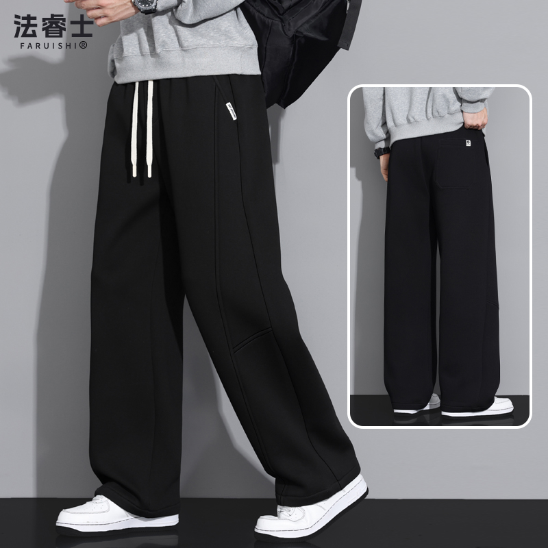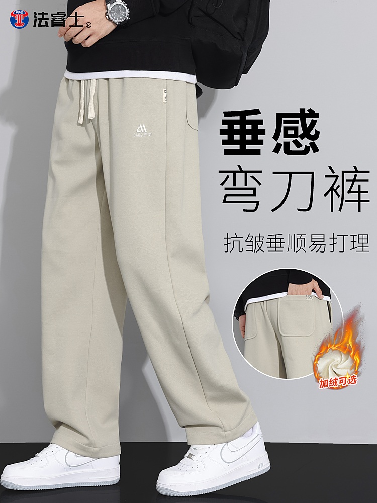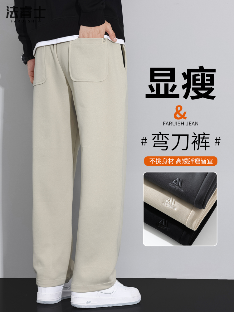 弯刀裤男士宽松直筒男裤2025新款秋冬加绒加厚男生休闲长裤子男款