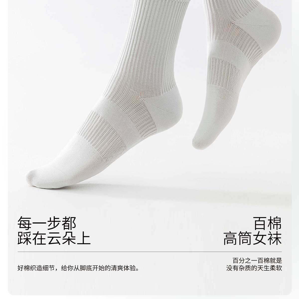 亲相见袜子女款纯棉防臭中筒袜夏薄款透气棉袜吸汗白色女士长筒袜