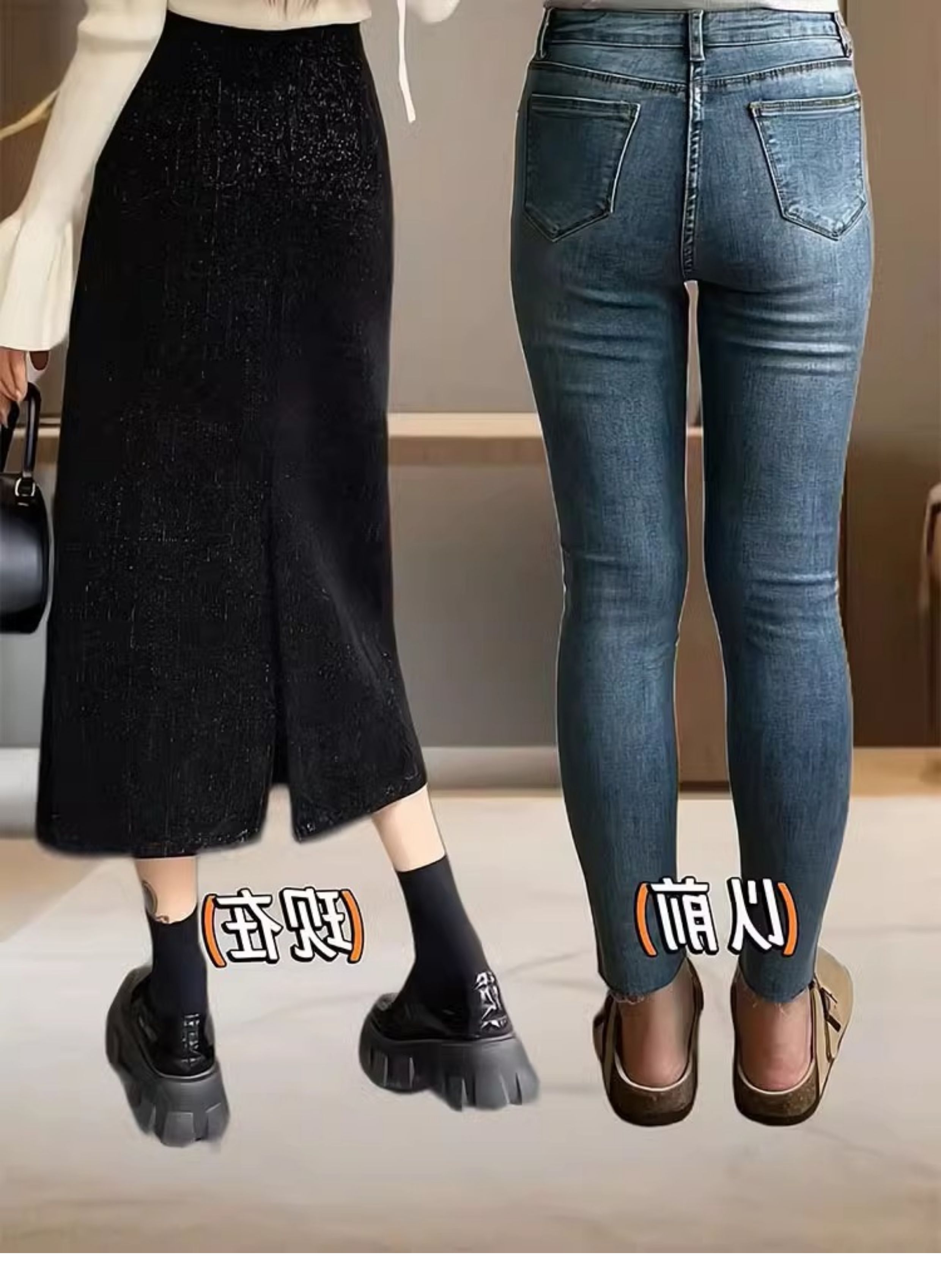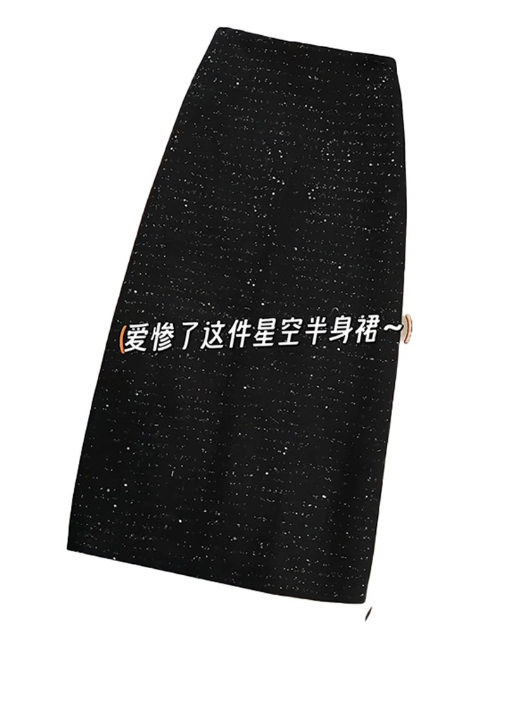 黑色开叉半身裙女2025秋季新款大码梨形身材高腰亮片a字包臀裙子