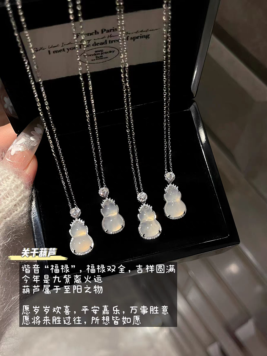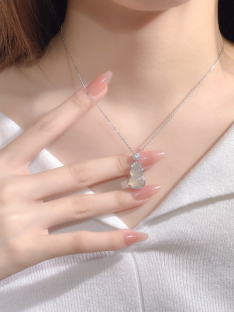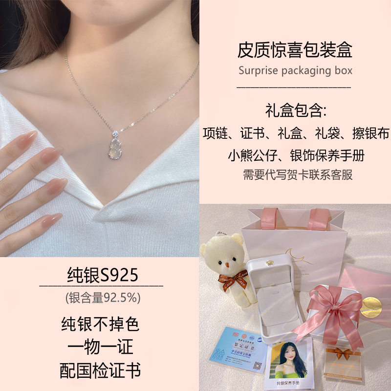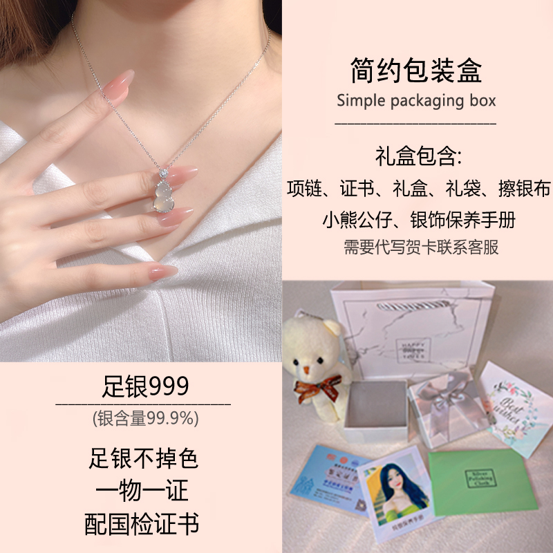 S999纯银项链女天然白玉髓葫芦轻奢小众设计感送闺蜜女友生日礼物