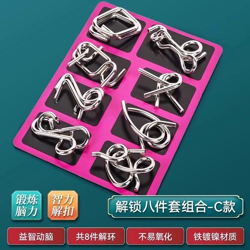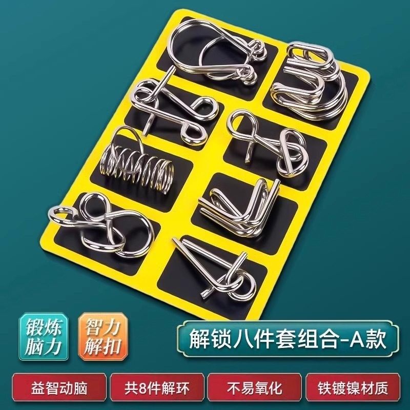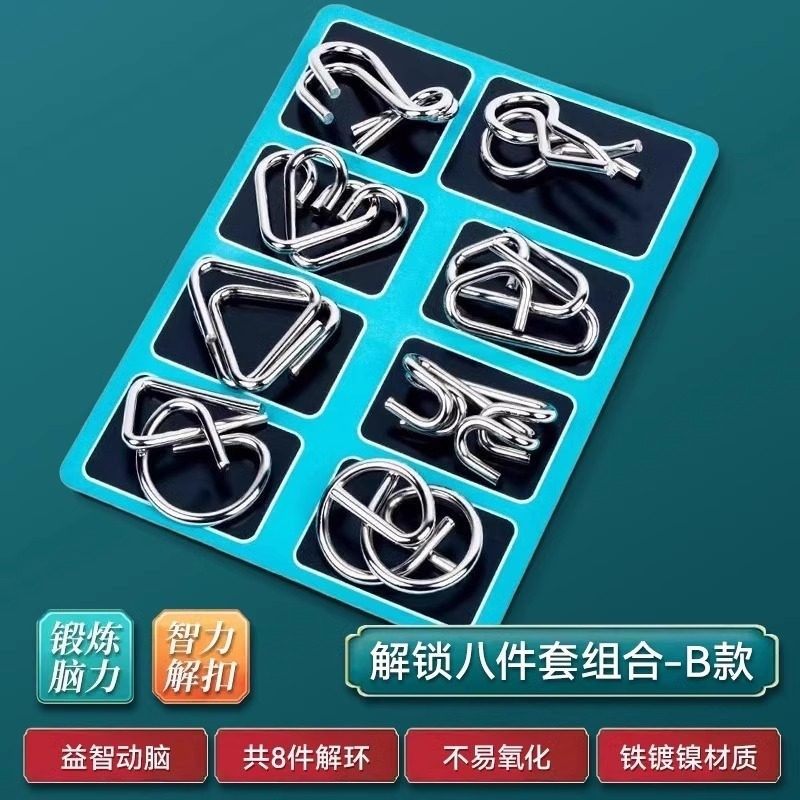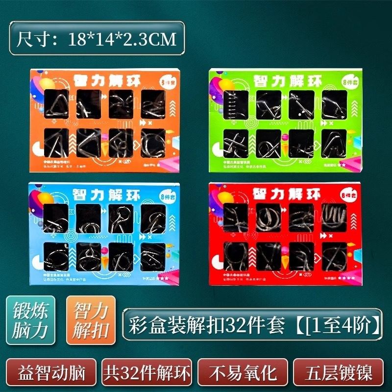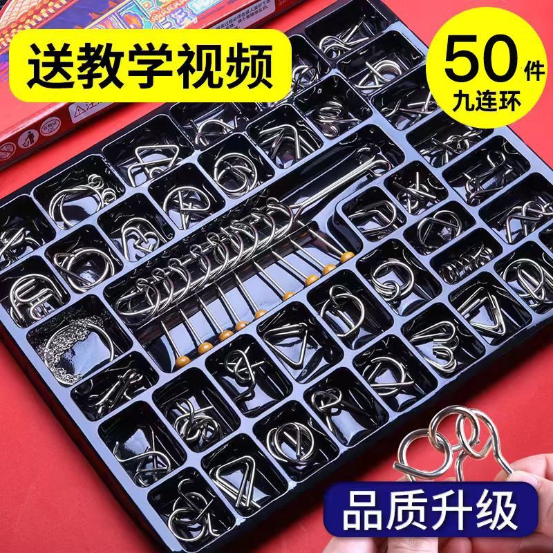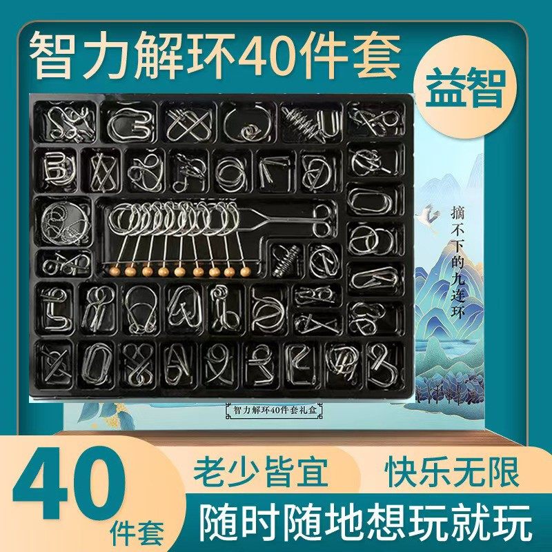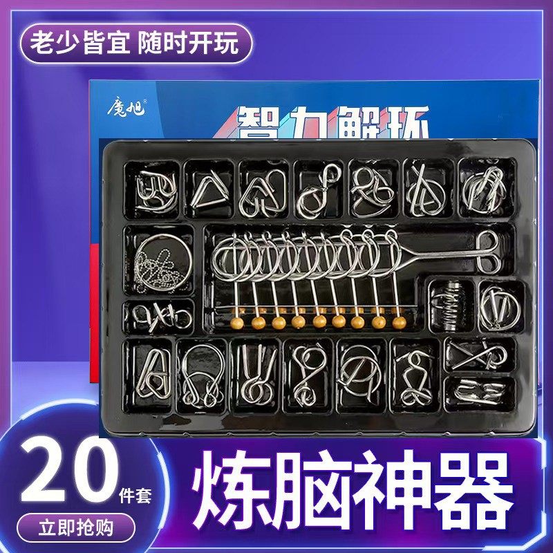 九连环智力解锁环解扣儿童小学生益智玩具鲁班锁孔明锁全套24件套
