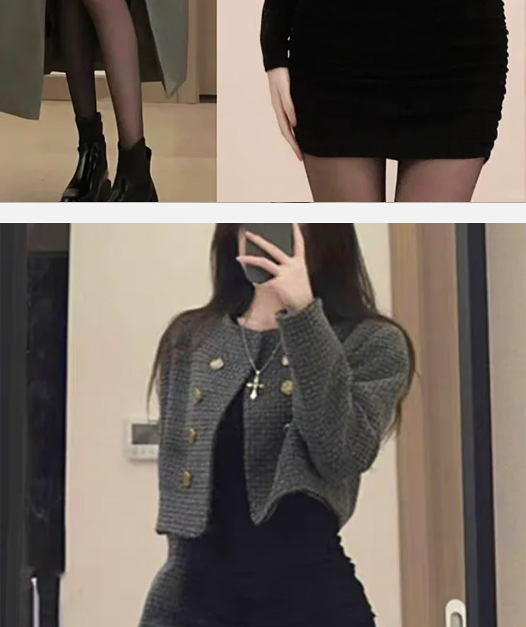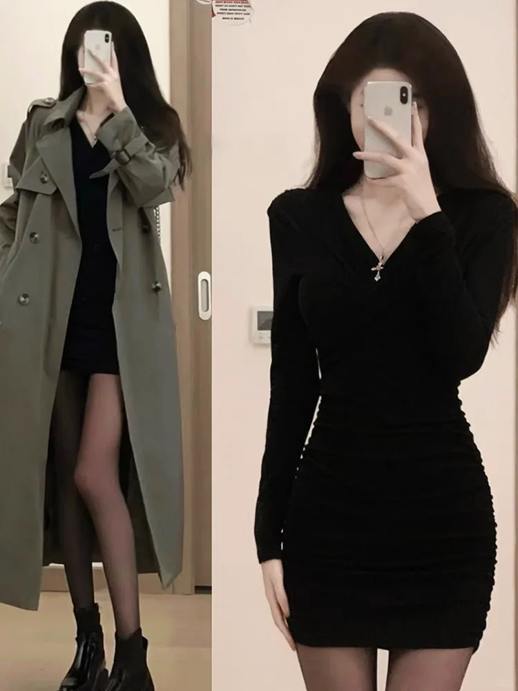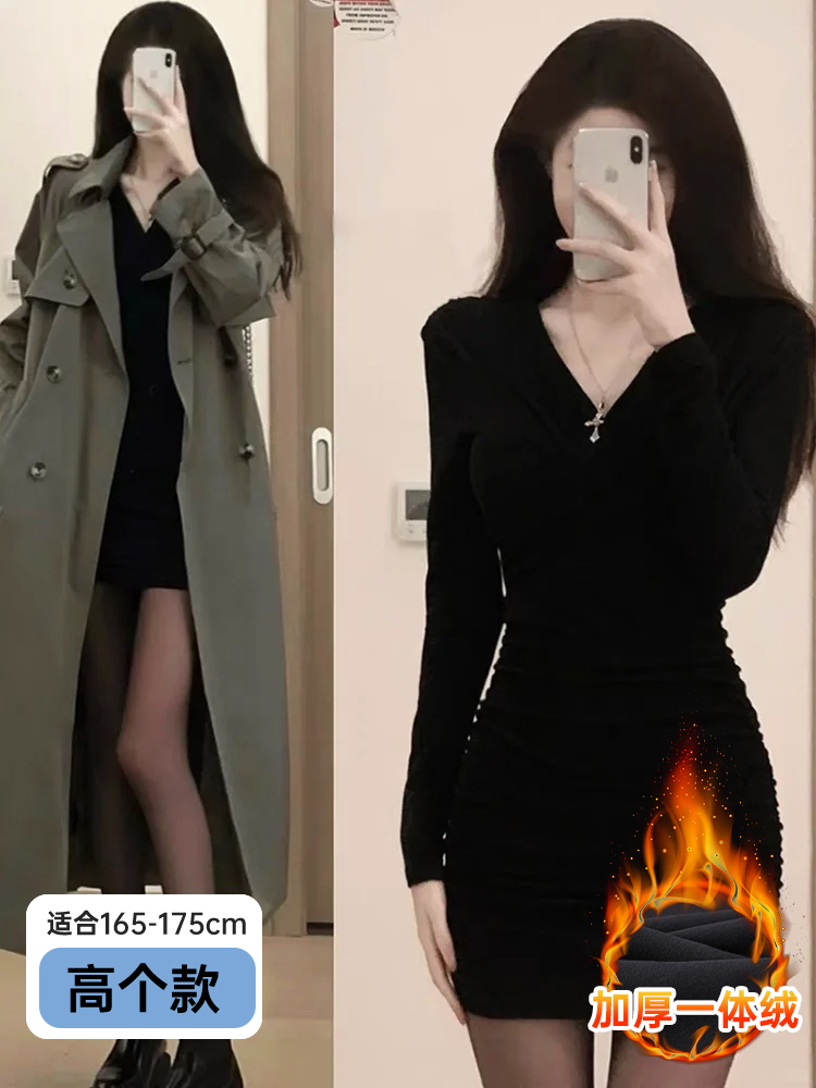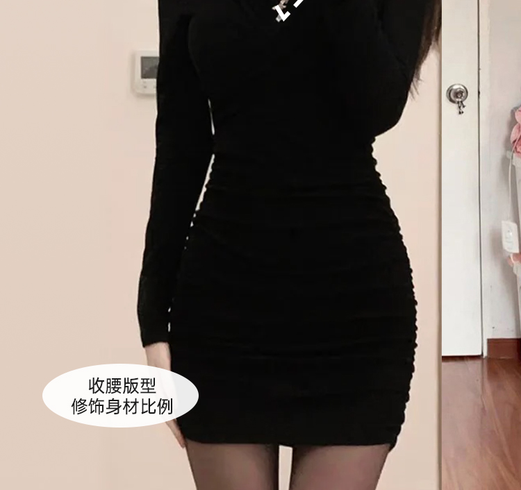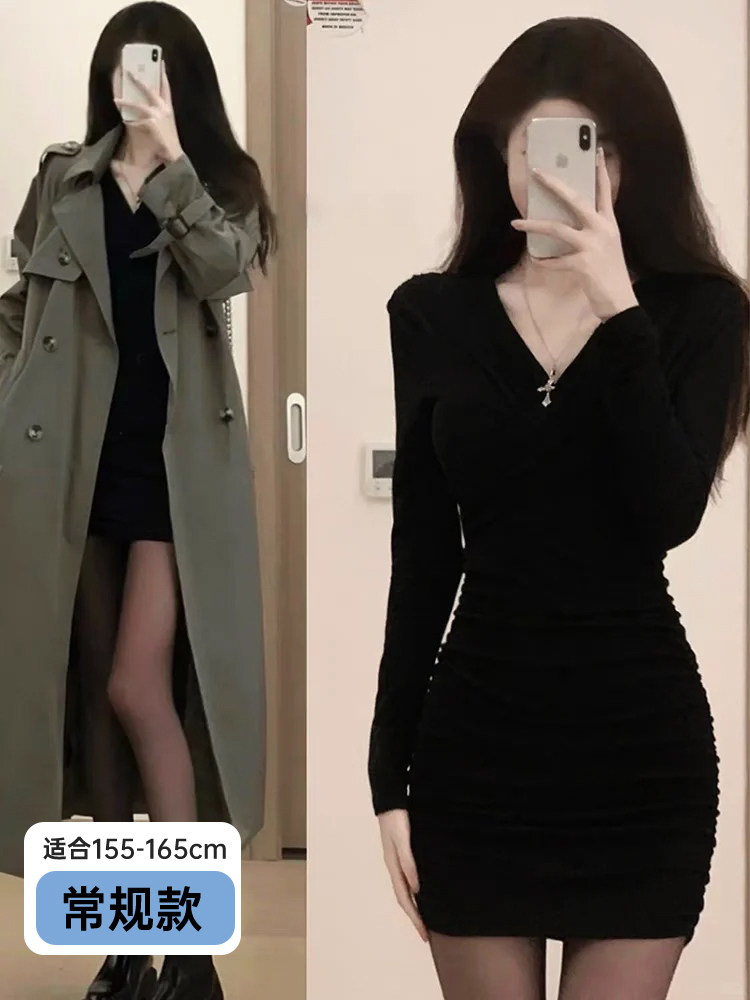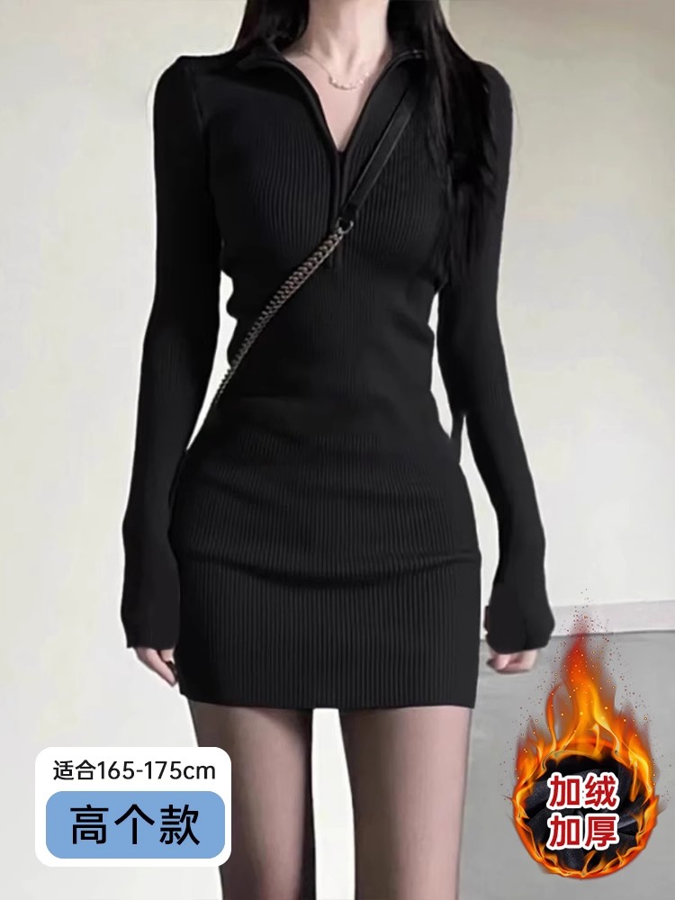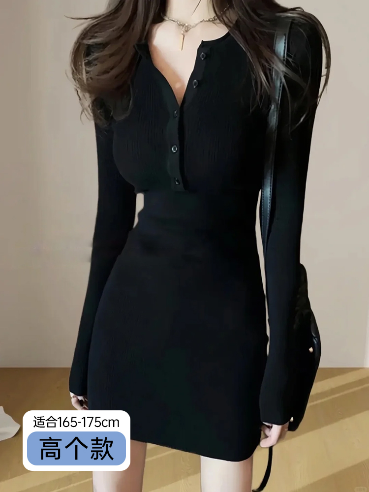 黑色包臀连衣裙2025新款女秋冬季修身打底辣妹裙子针织内搭小黑裙
