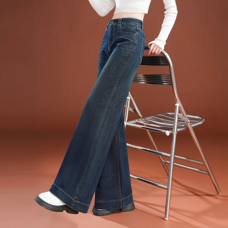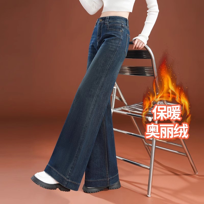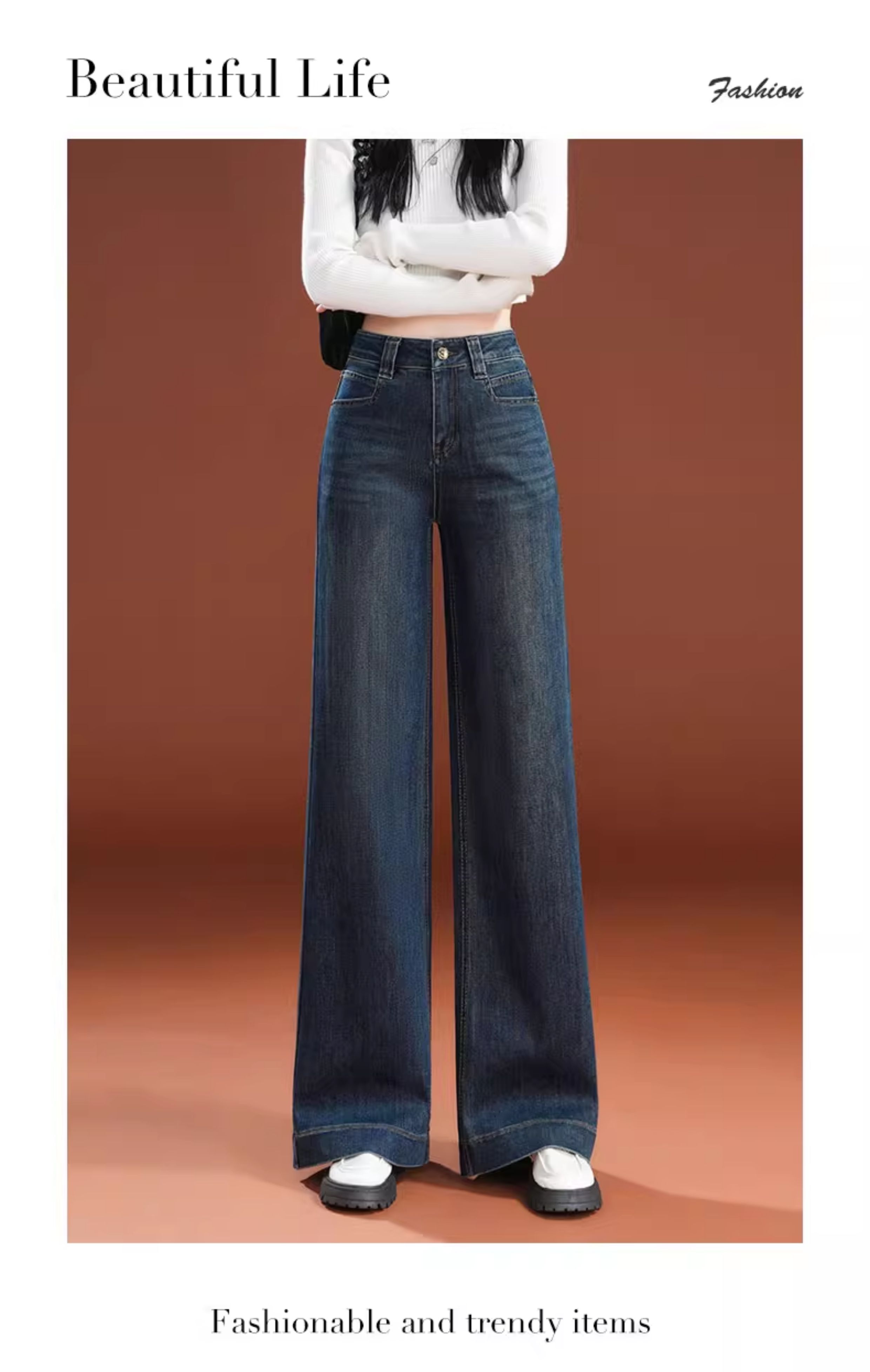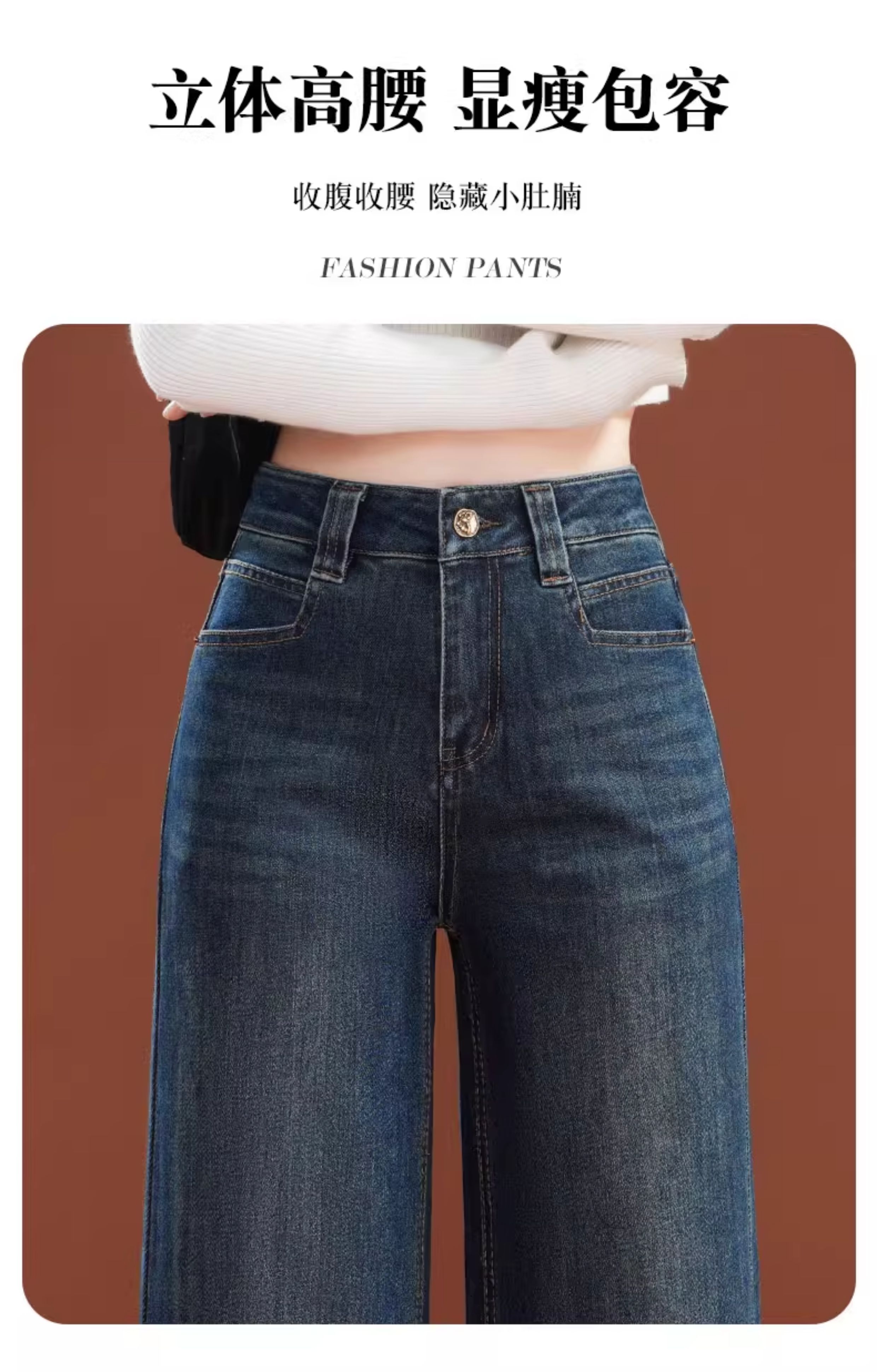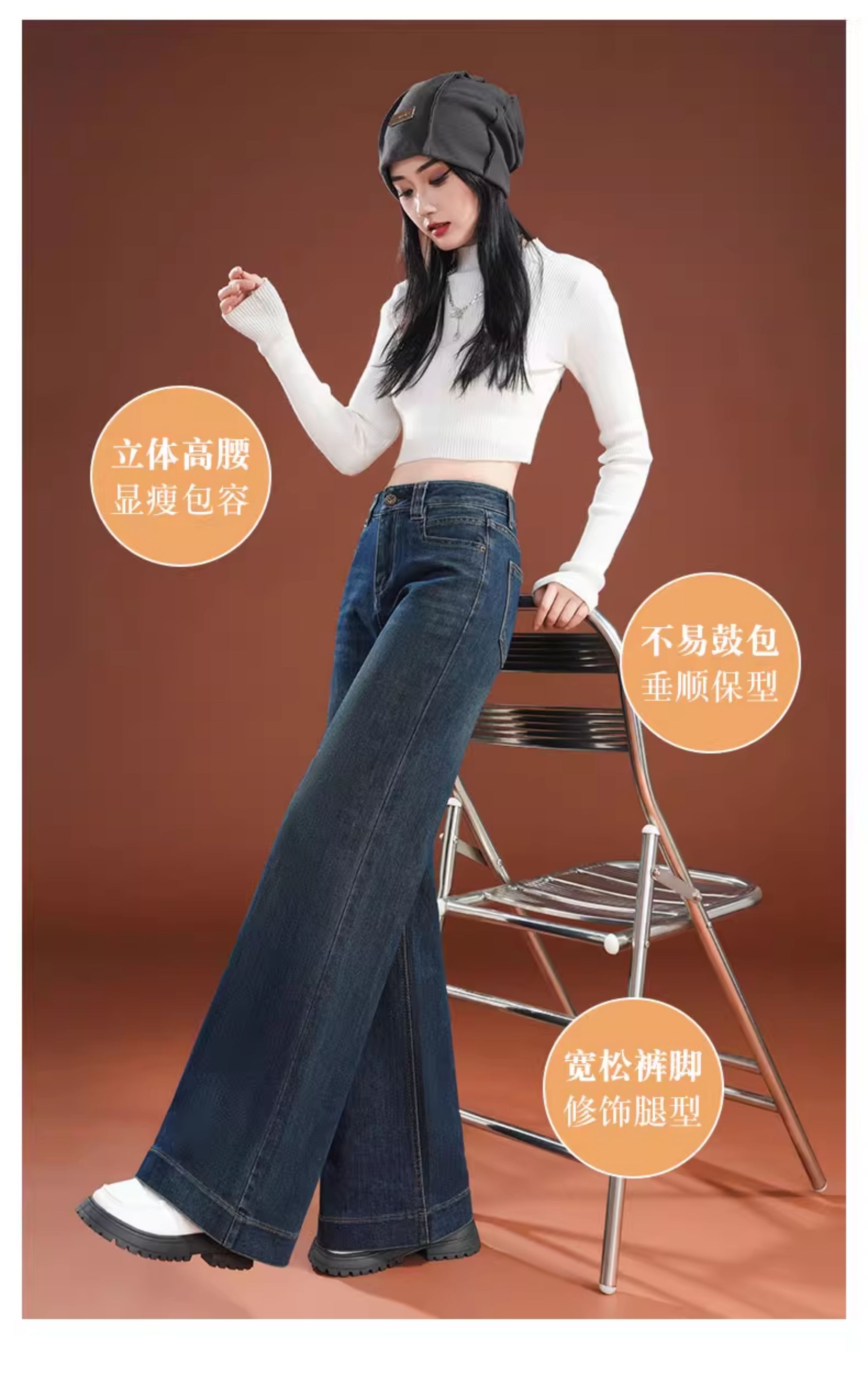 复古蓝阔腿牛仔裤女秋冬高腰裤子宽松显瘦垂坠感冬季加绒加厚长裤