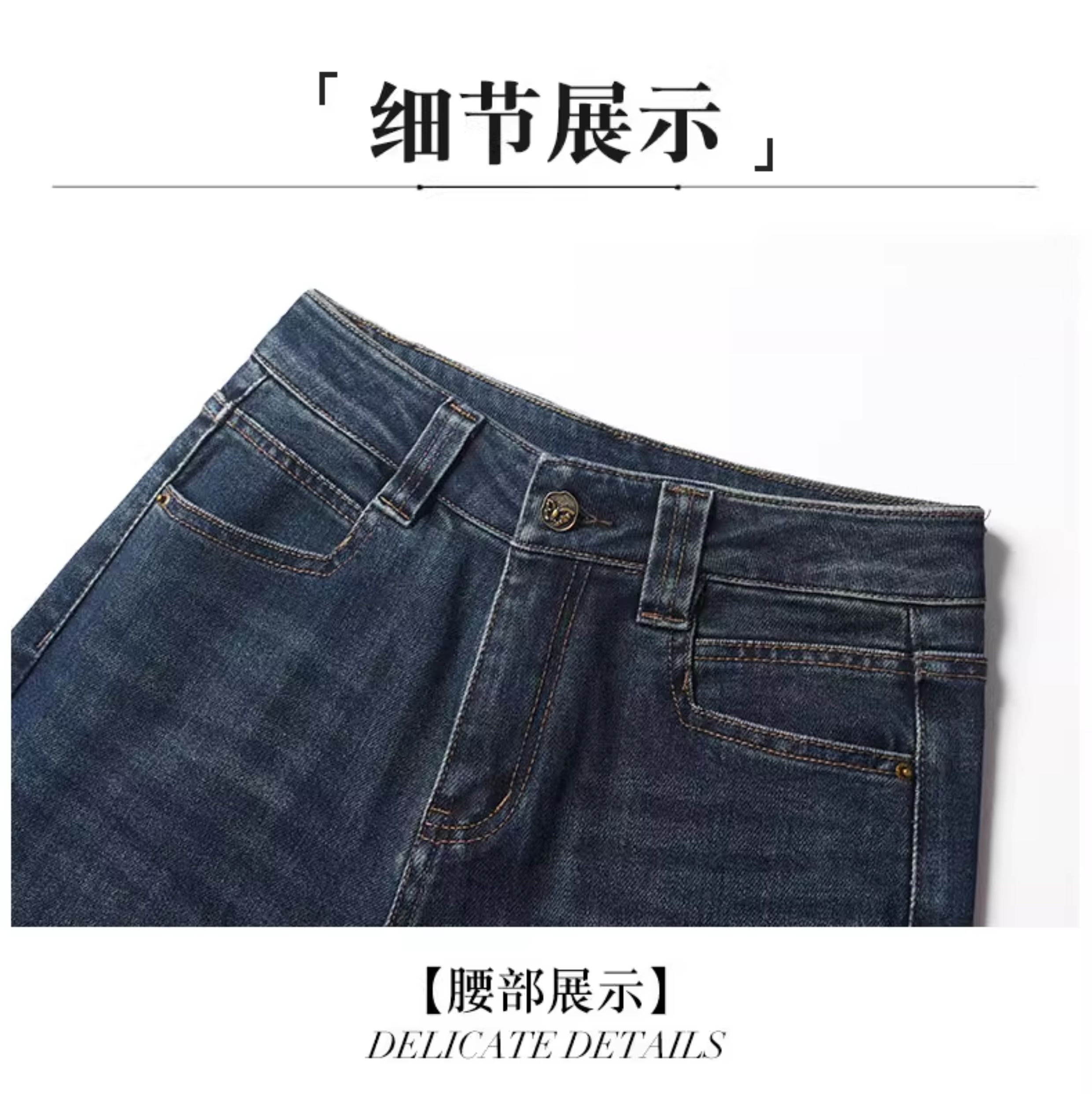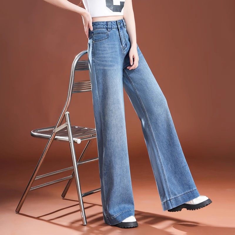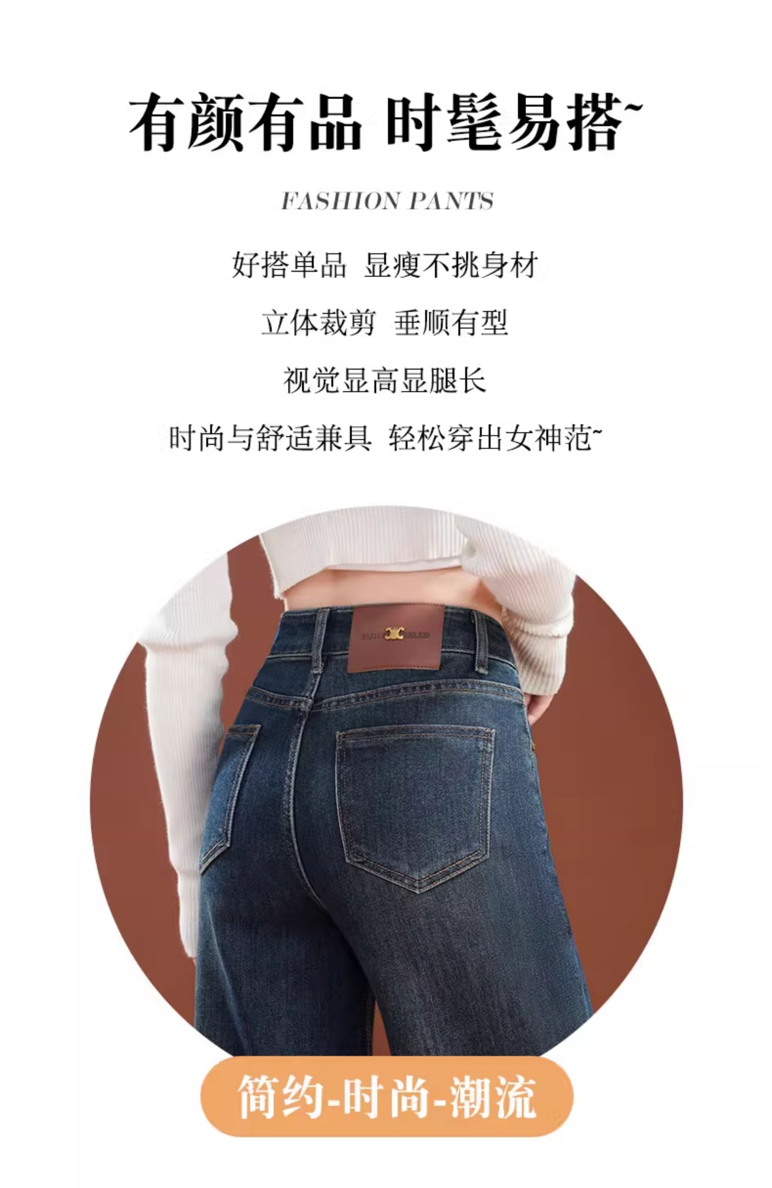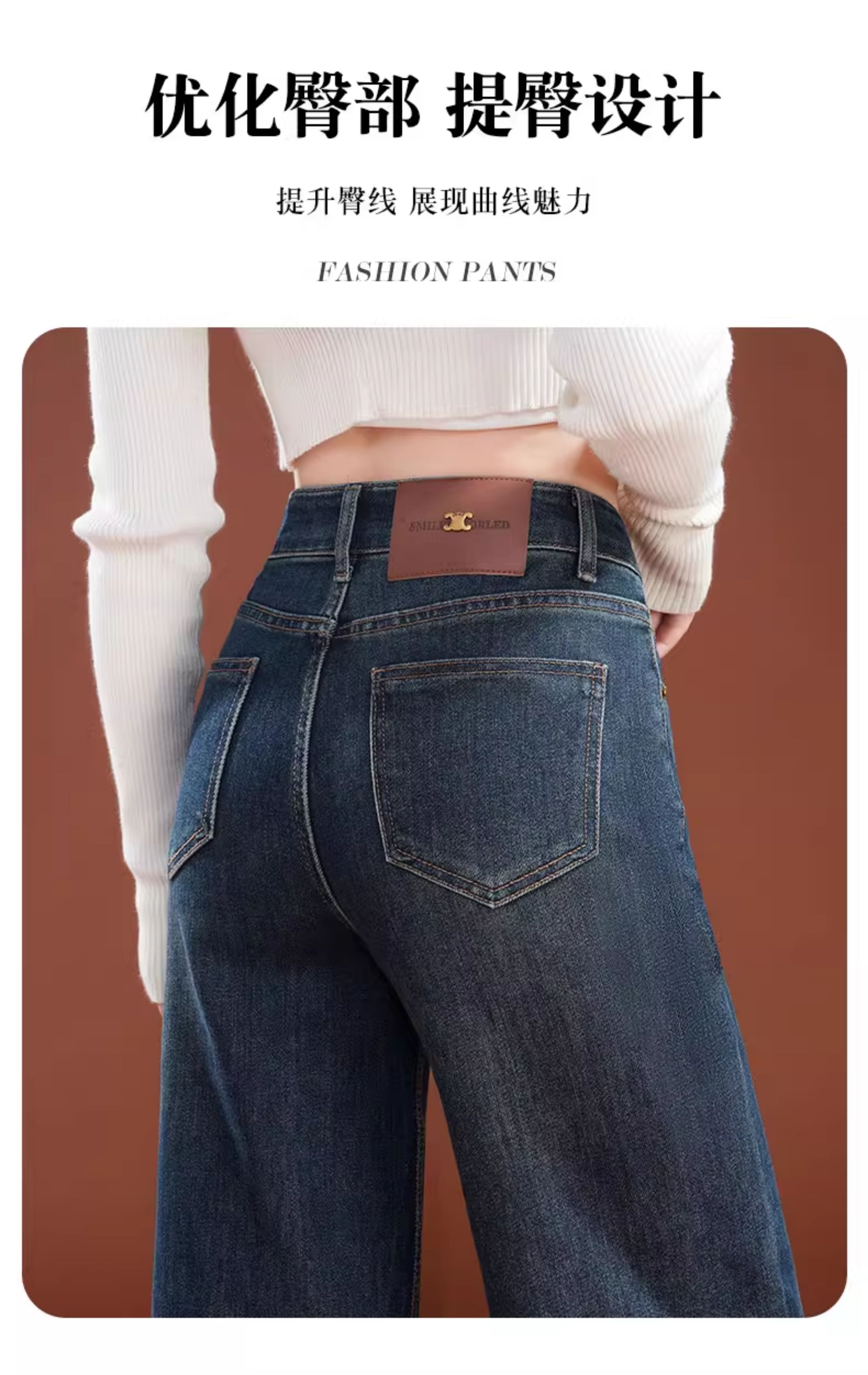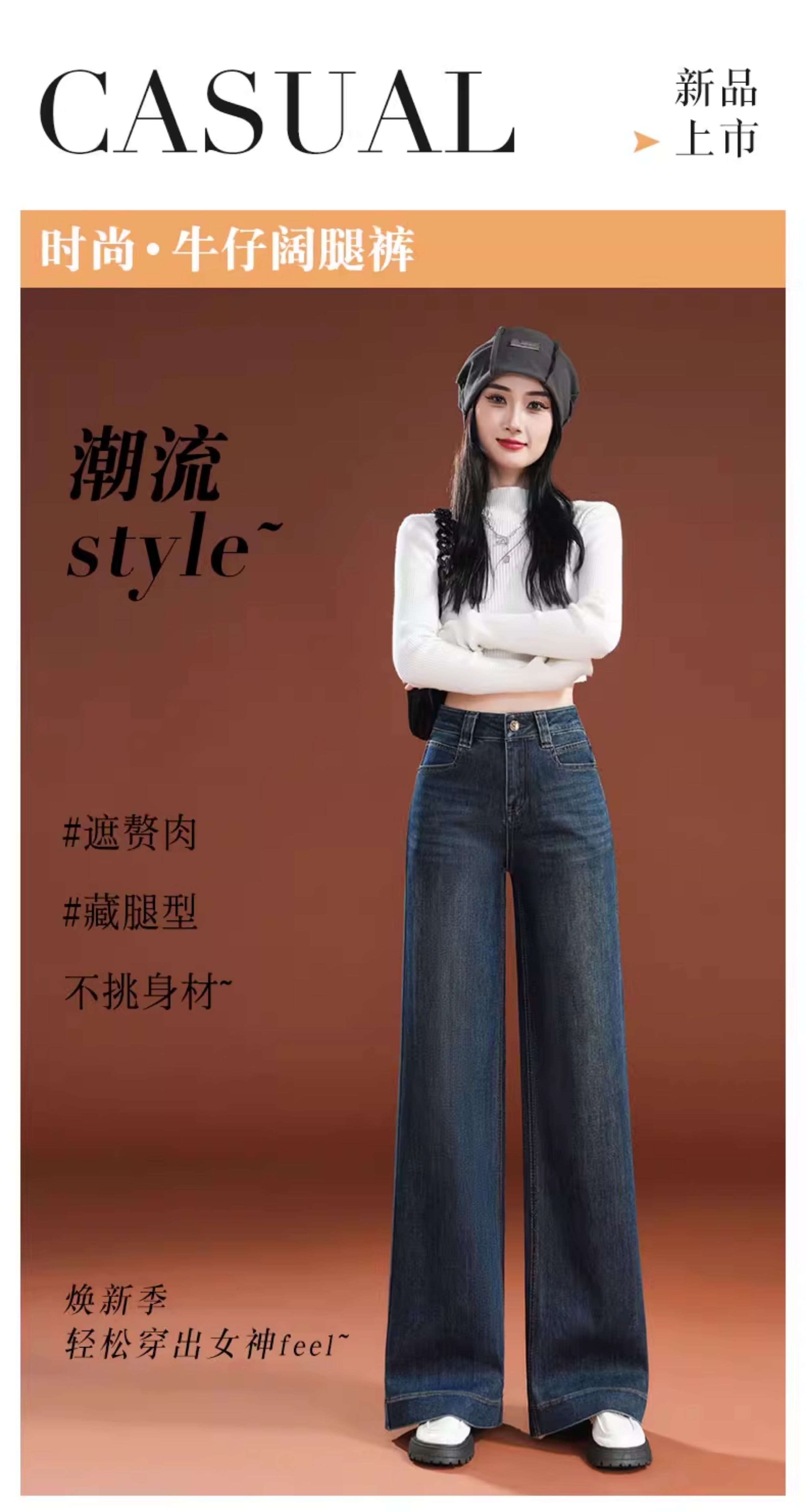 复古蓝阔腿牛仔裤女秋冬高腰裤子宽松显瘦垂坠感冬季加绒加厚长裤