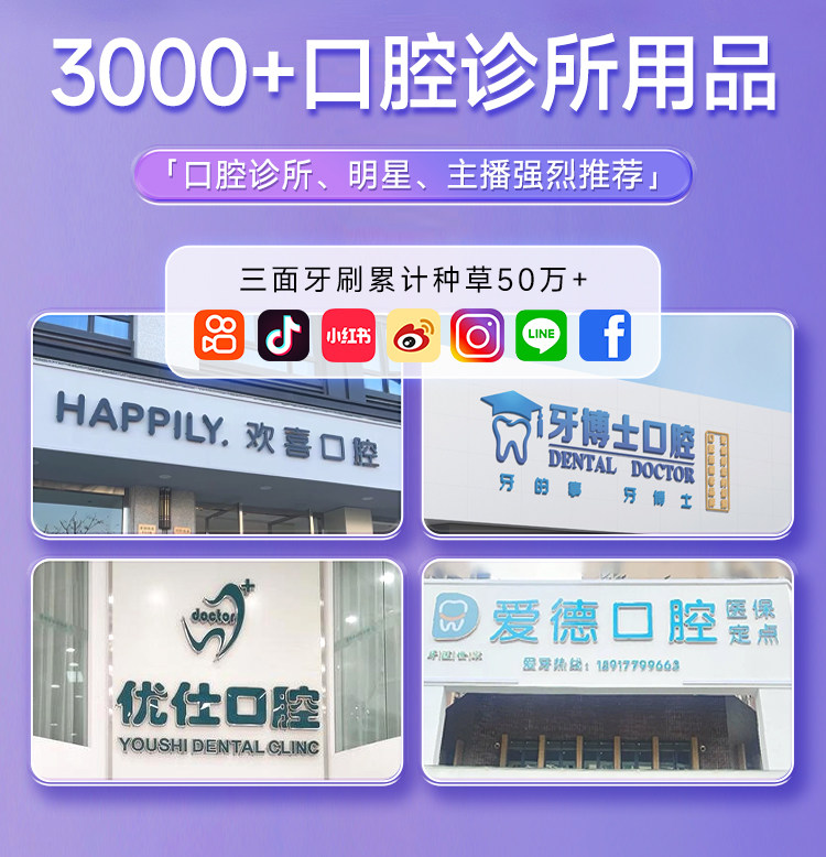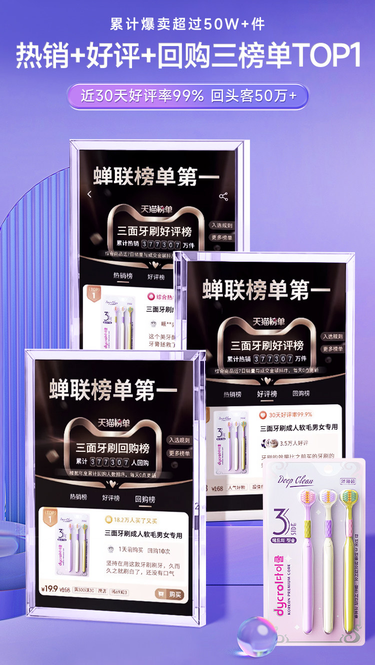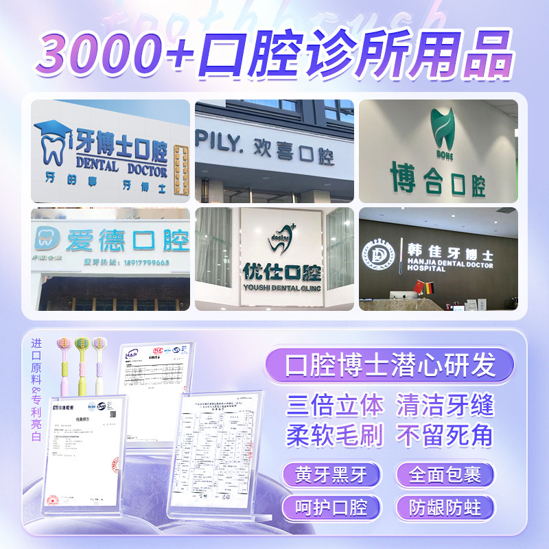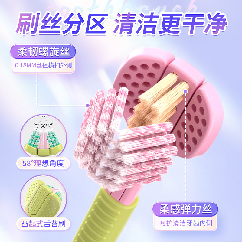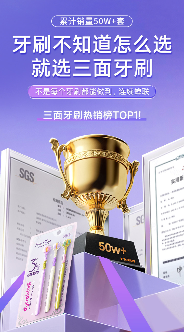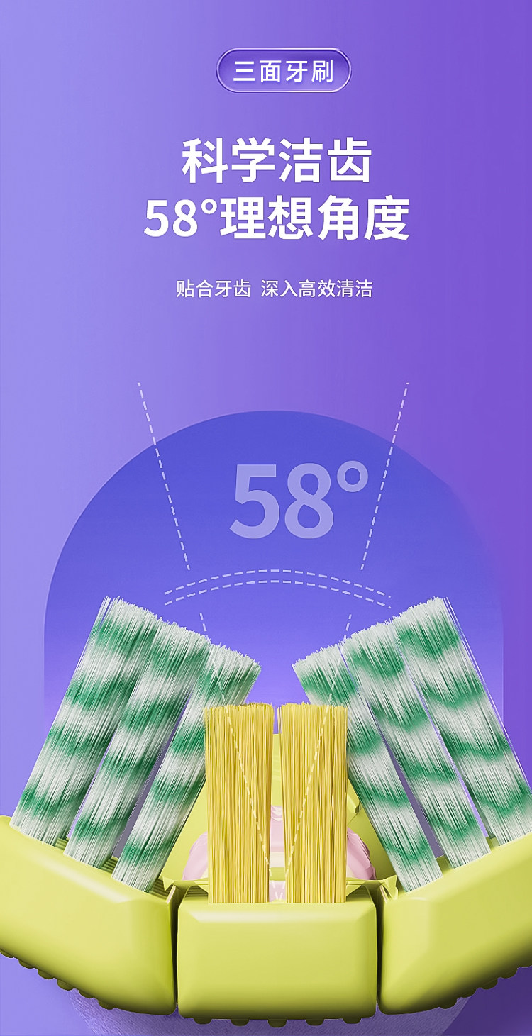 三面牙刷成人软毛男女专用可刮舌苔全面包裹清洁家庭装三色多巴胺