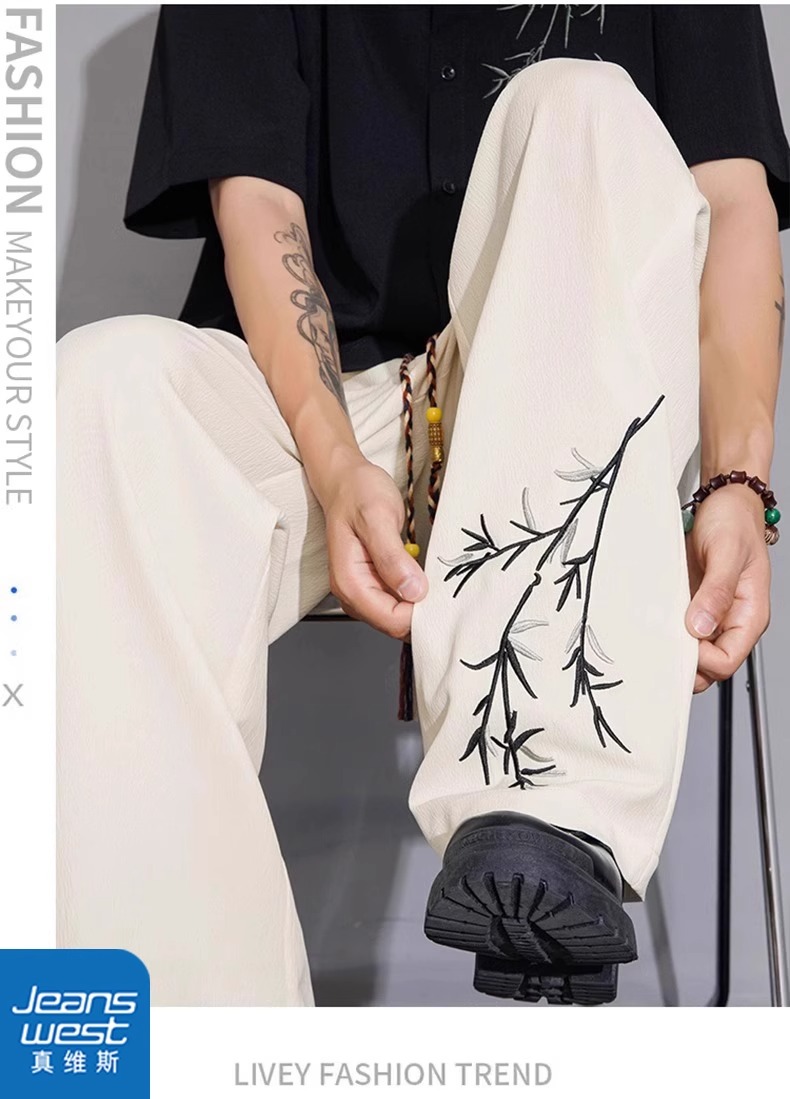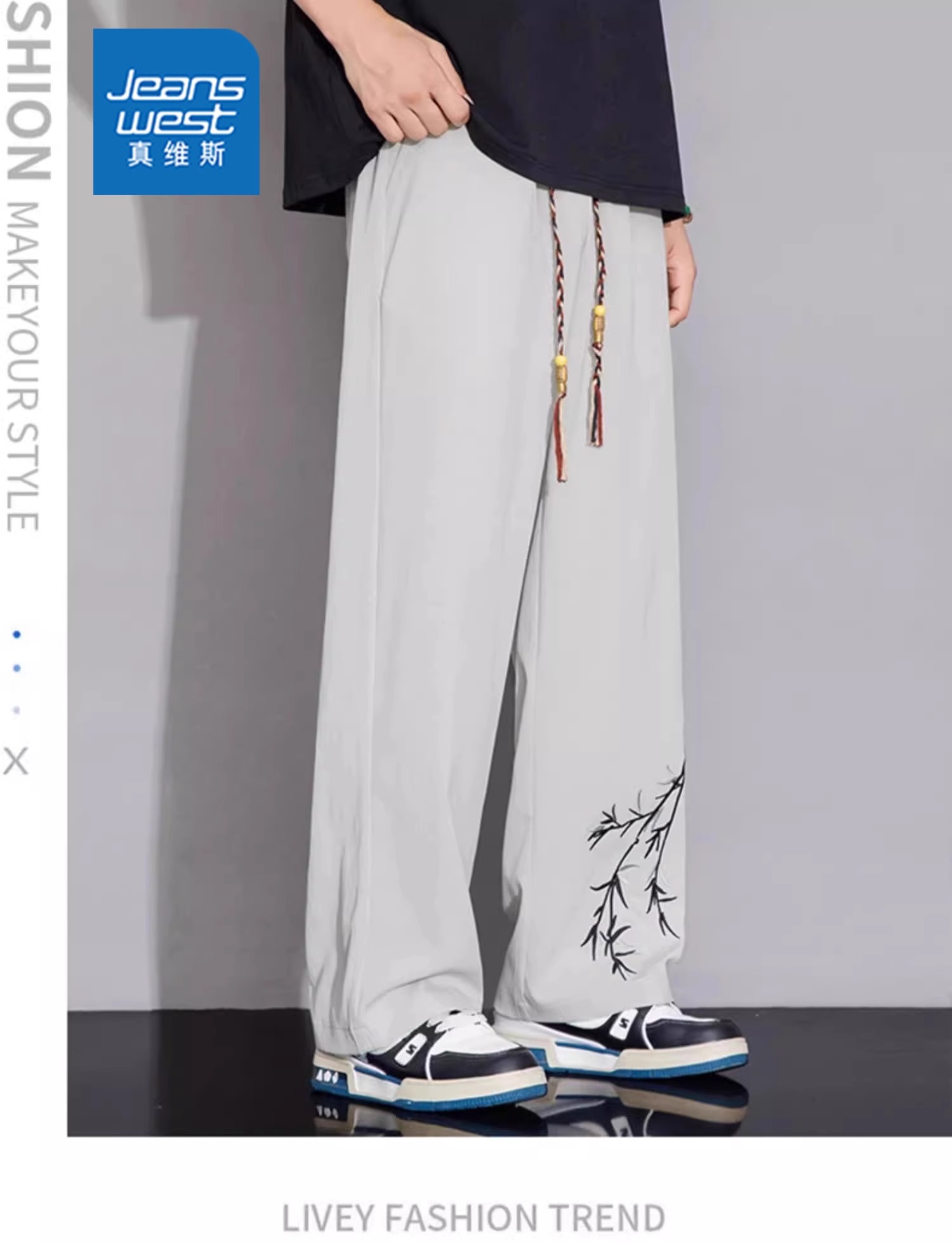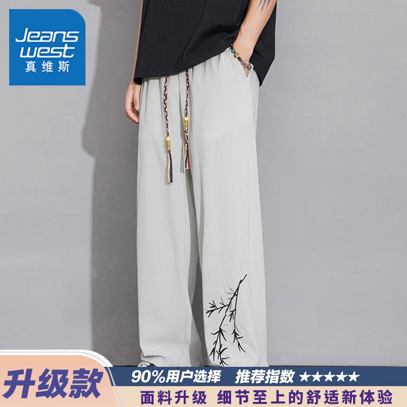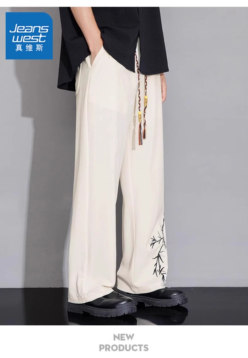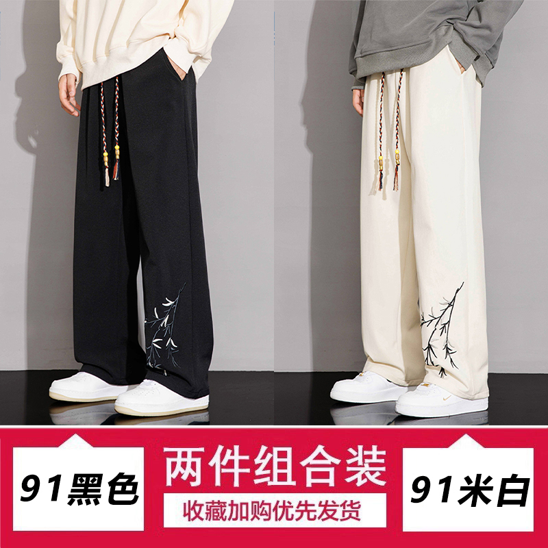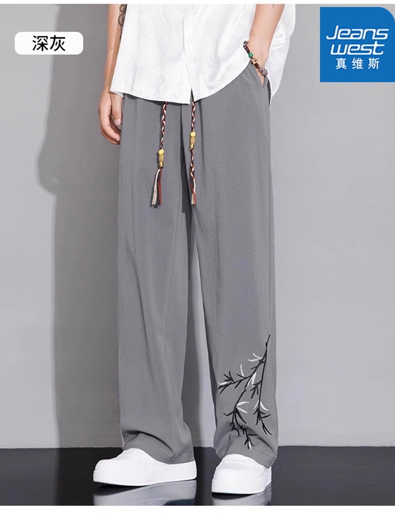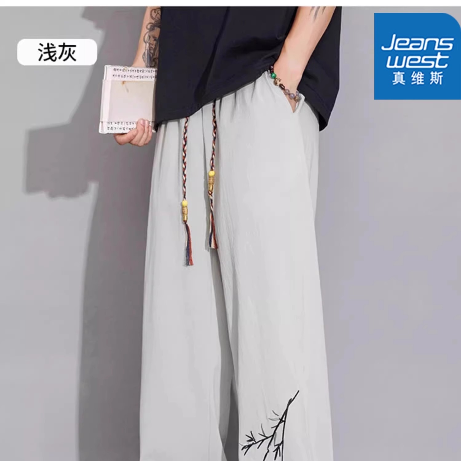 真维斯秋冬新款新中式国风刺绣裤子男士青少年宽松垂感加绒直筒裤
