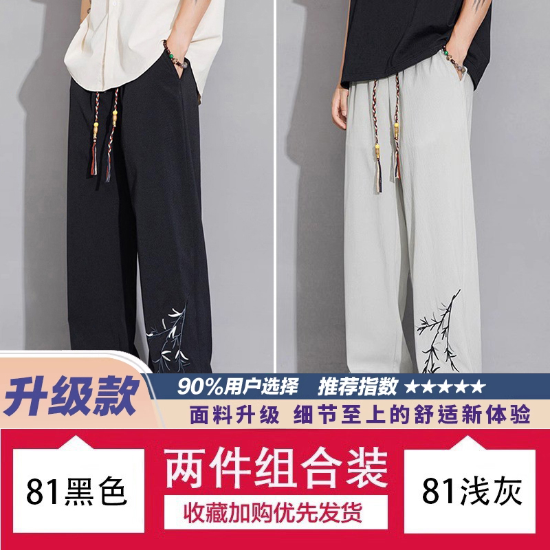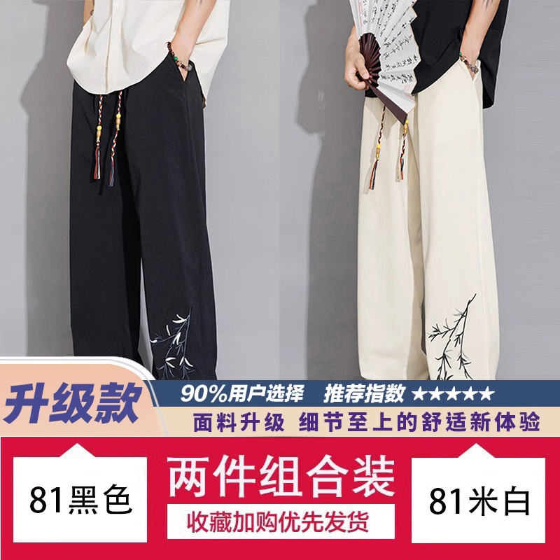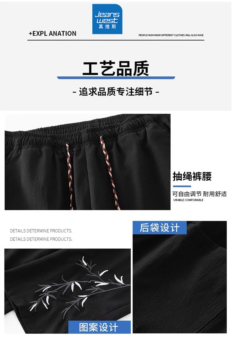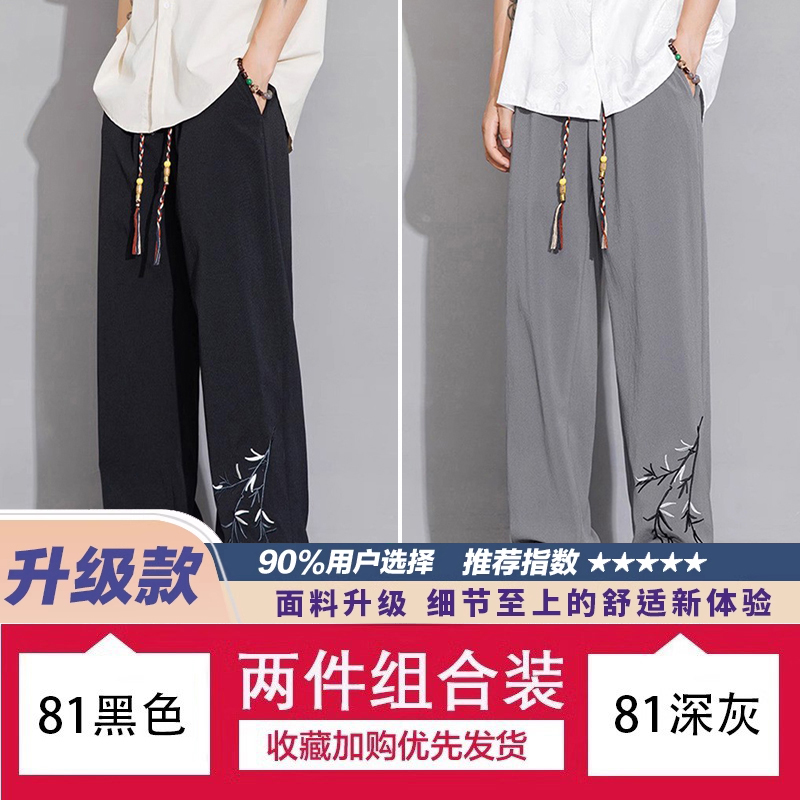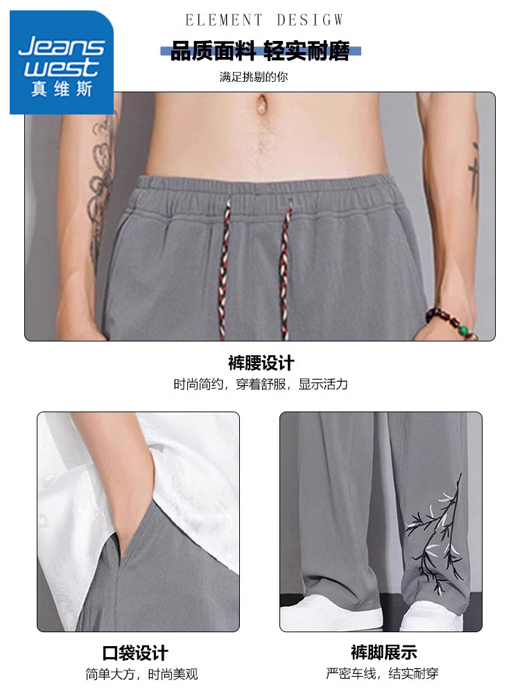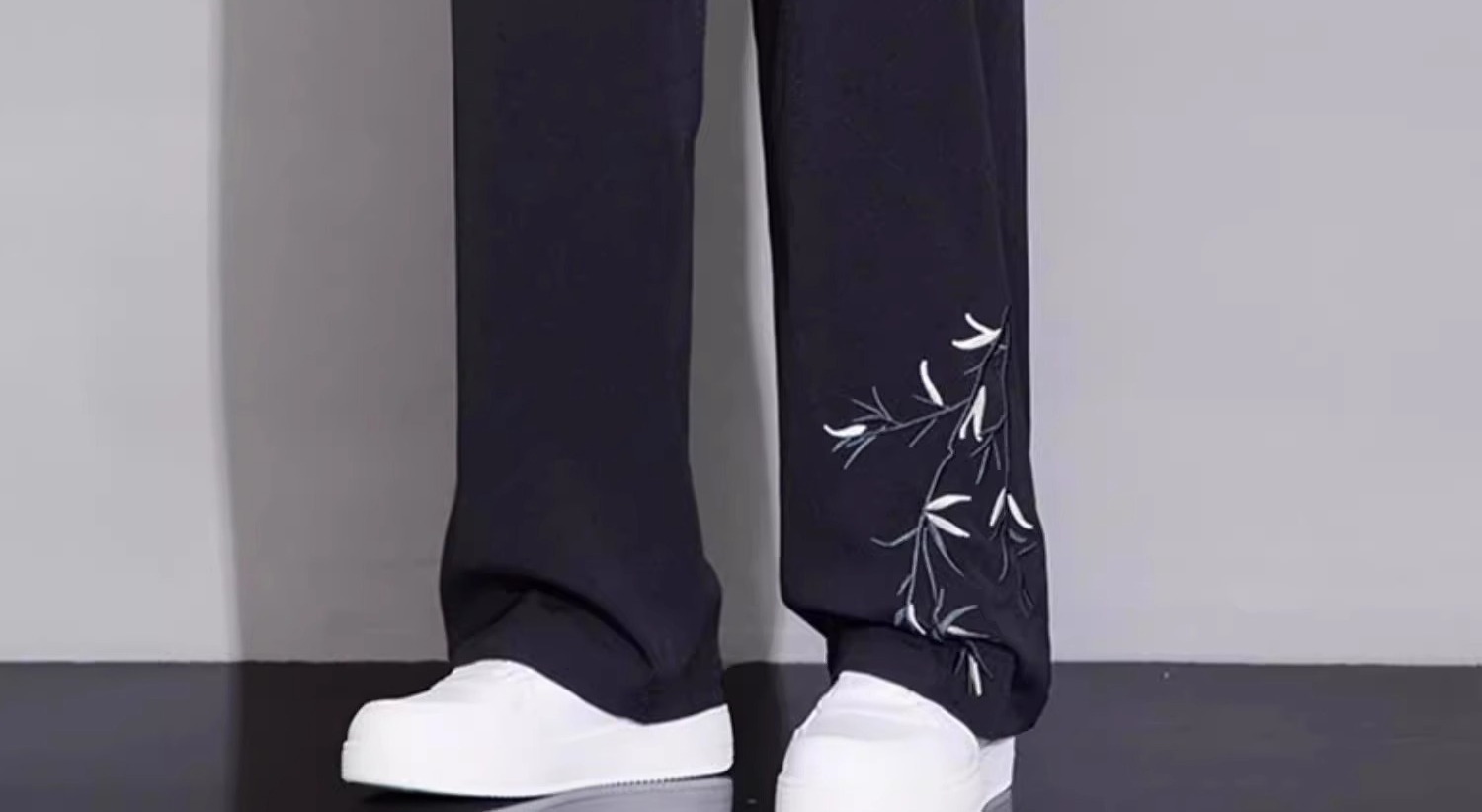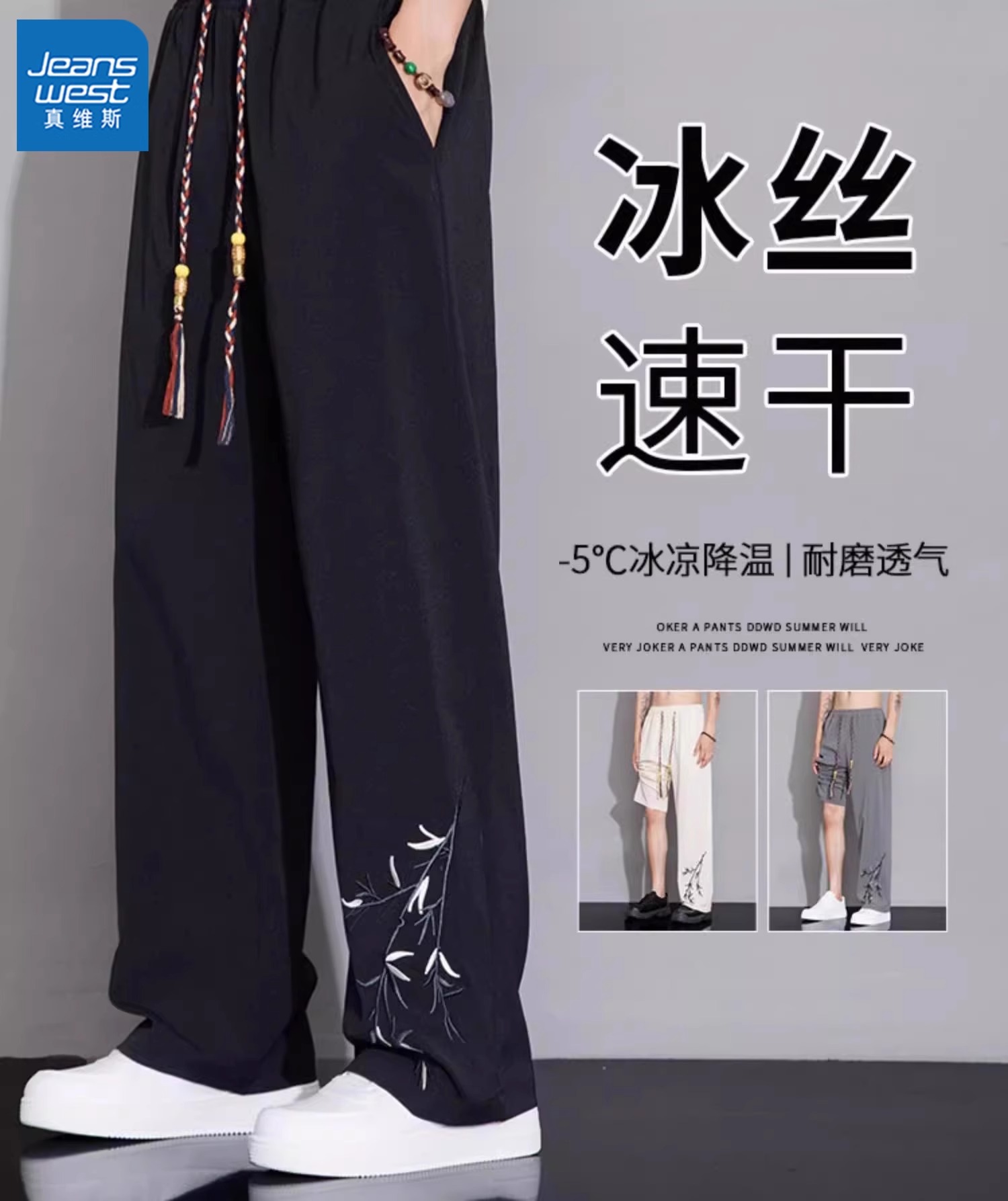 真维斯秋冬新款新中式国风刺绣裤子男士青少年宽松垂感加绒直筒裤