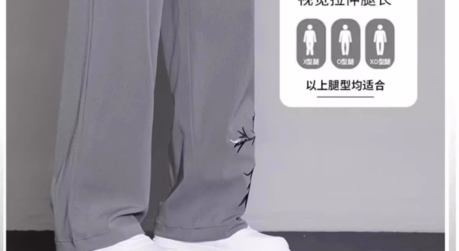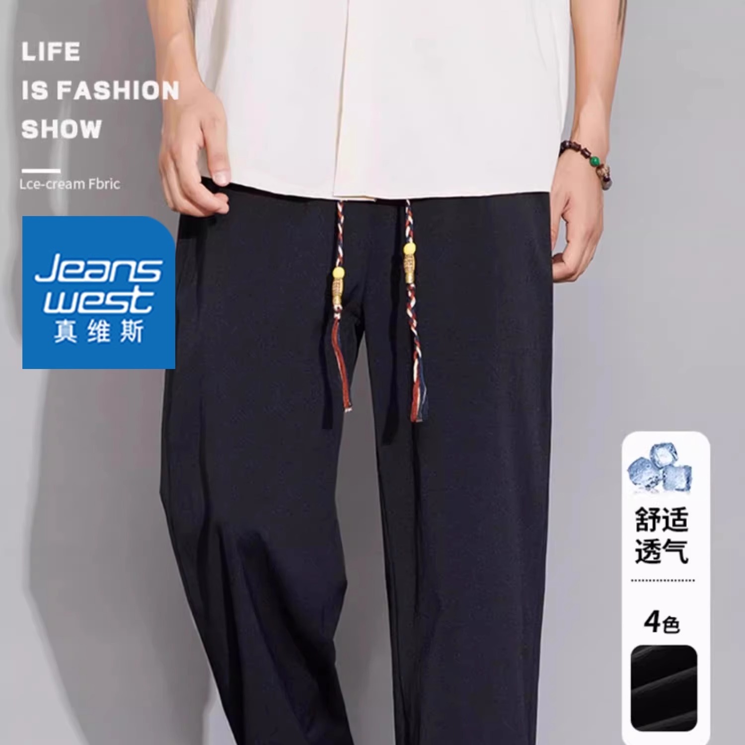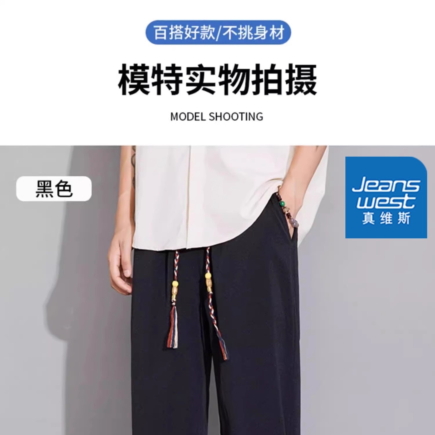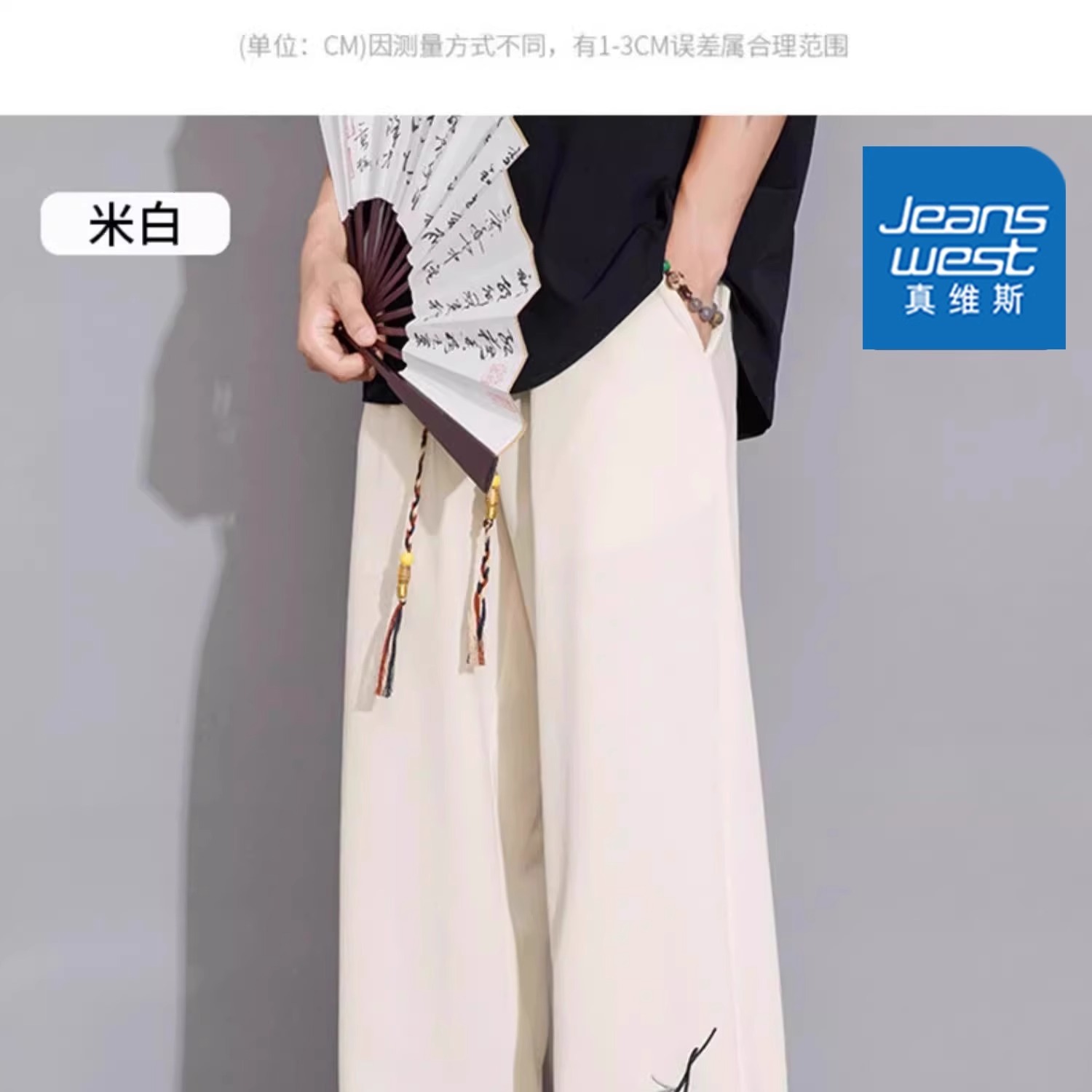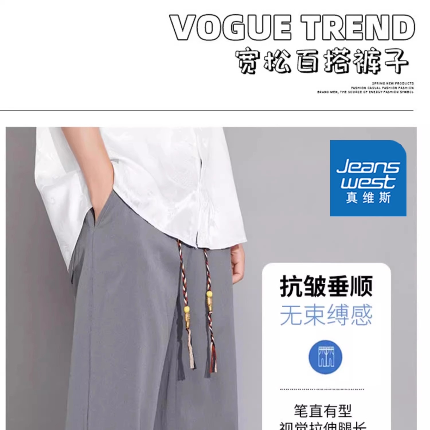 真维斯秋冬新款新中式国风刺绣裤子男士青少年宽松垂感加绒直筒裤