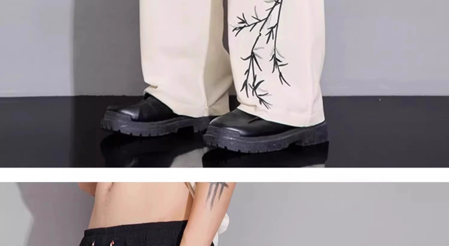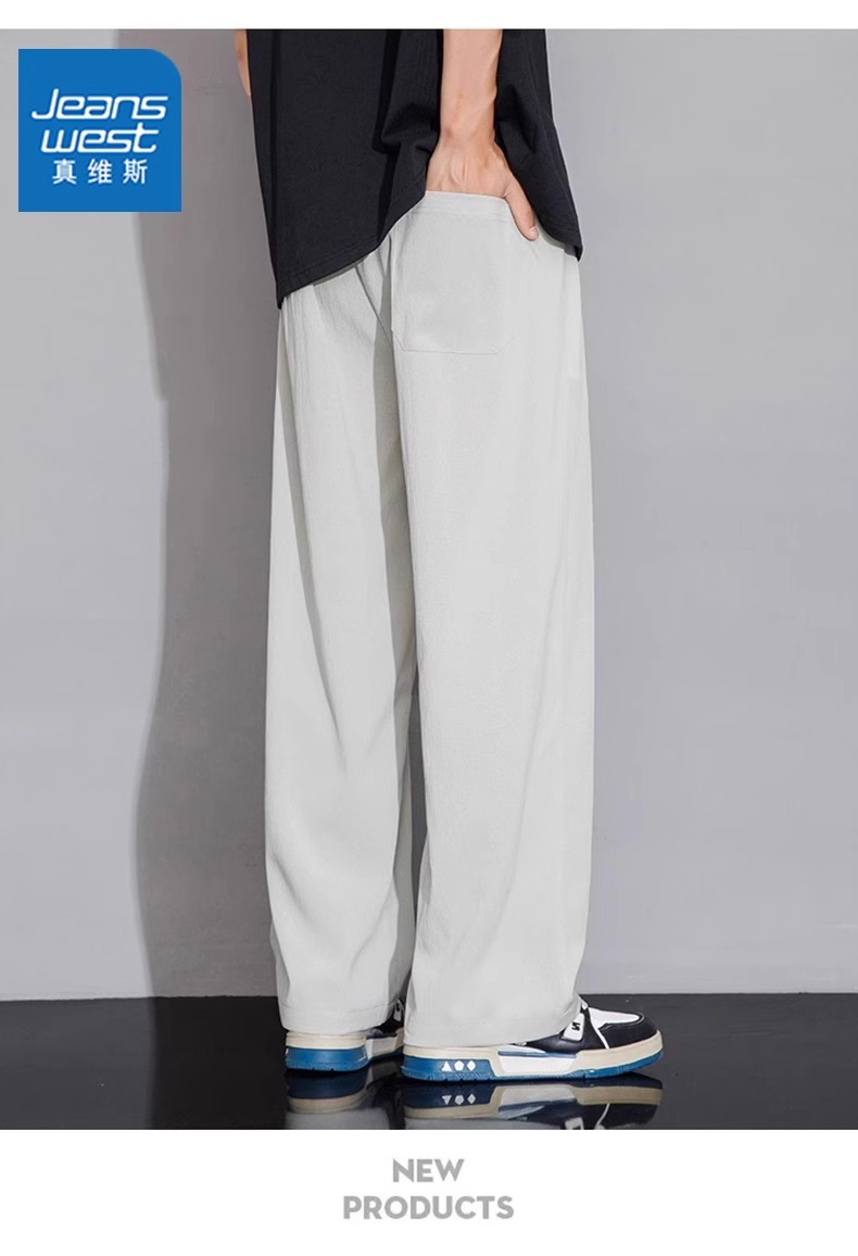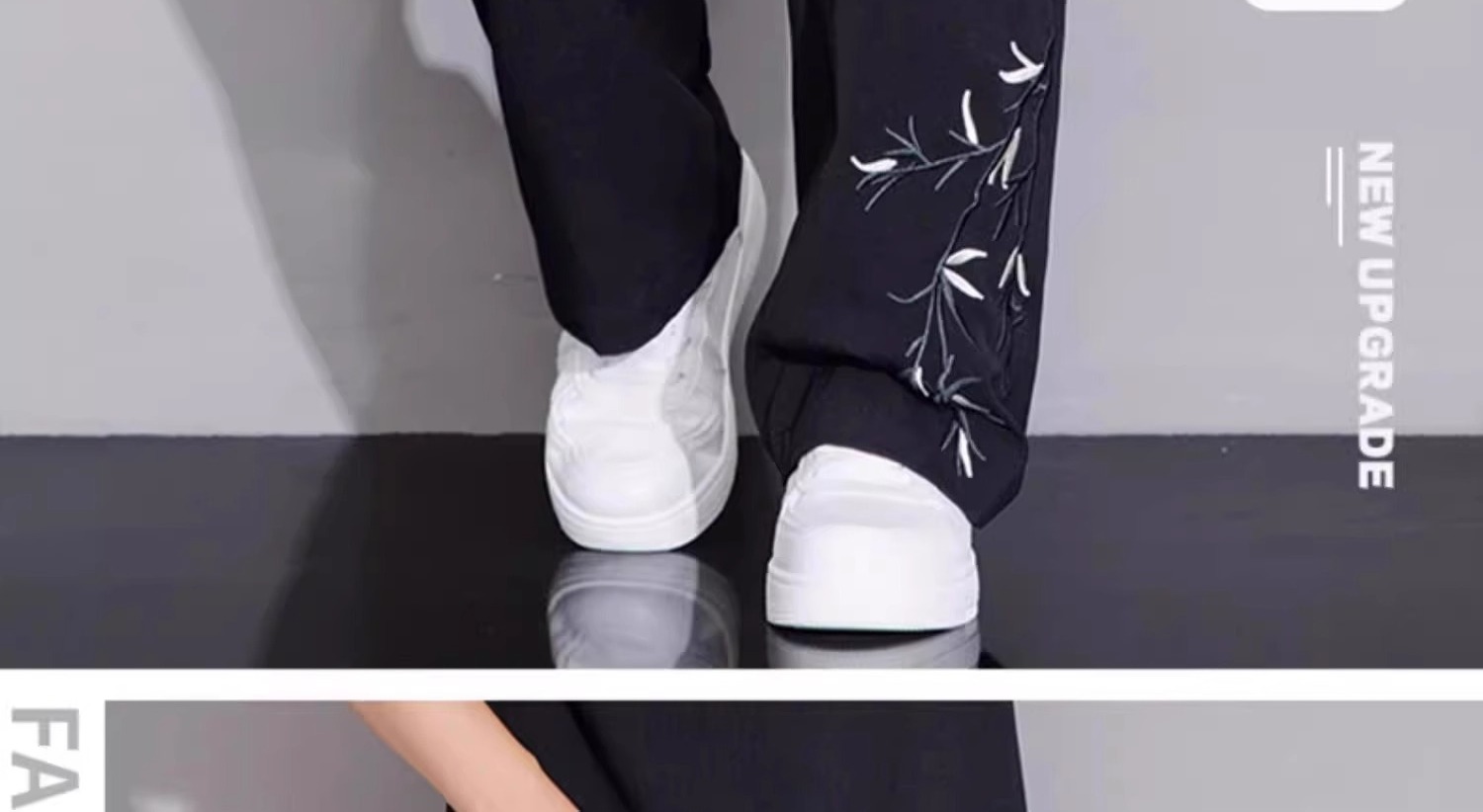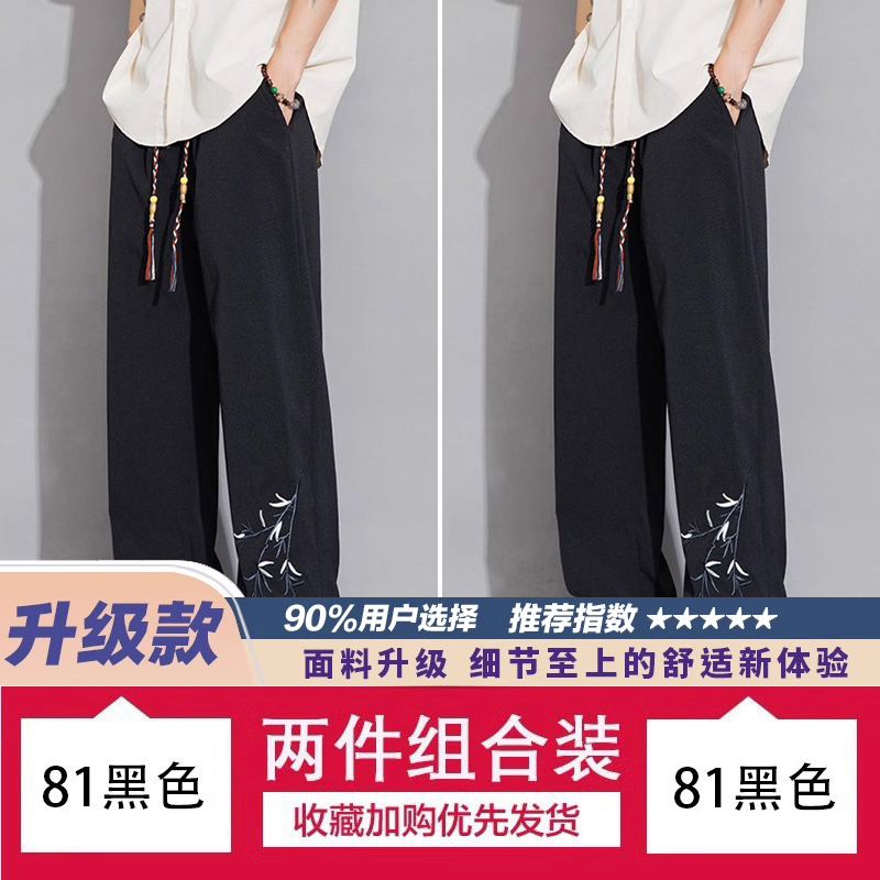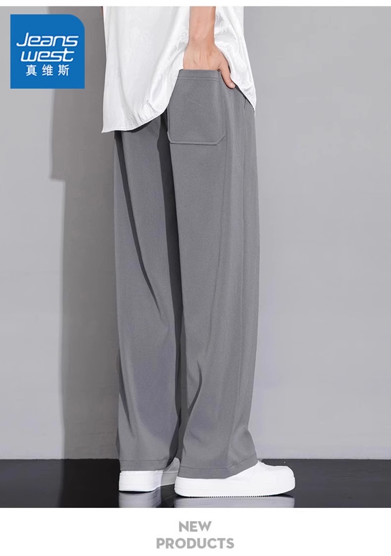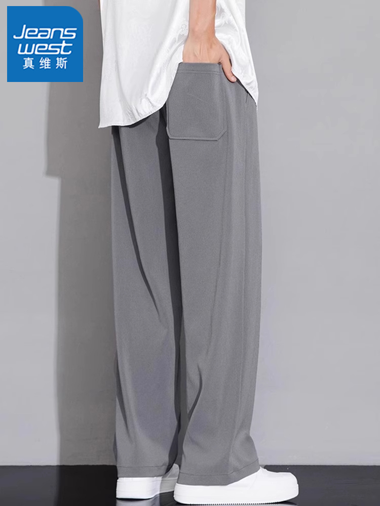 真维斯秋冬新款新中式国风刺绣裤子男士青少年宽松垂感加绒直筒裤