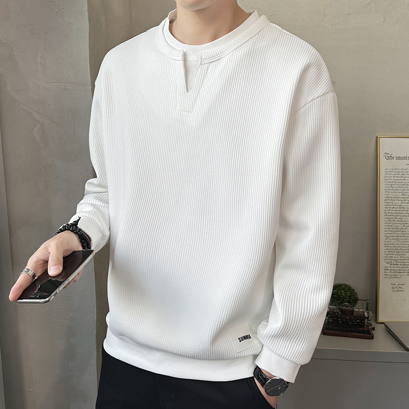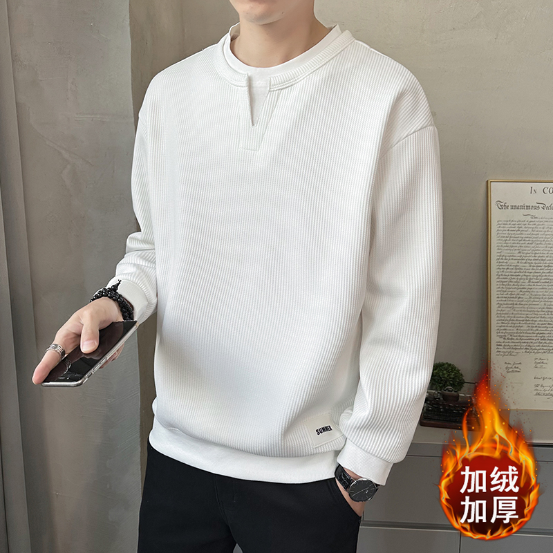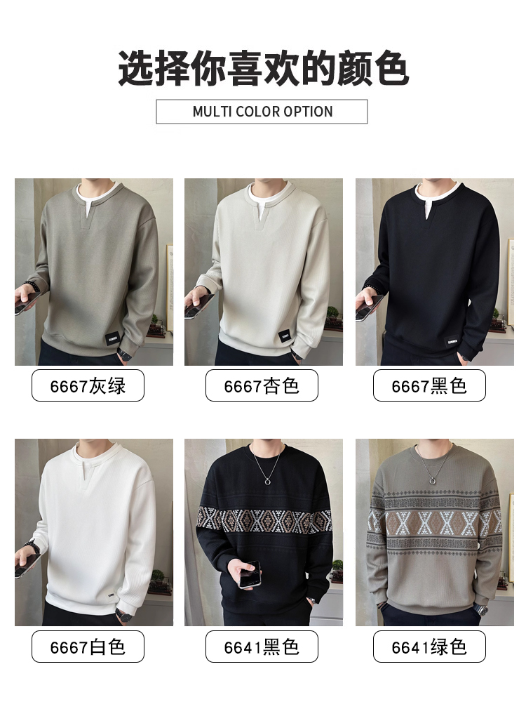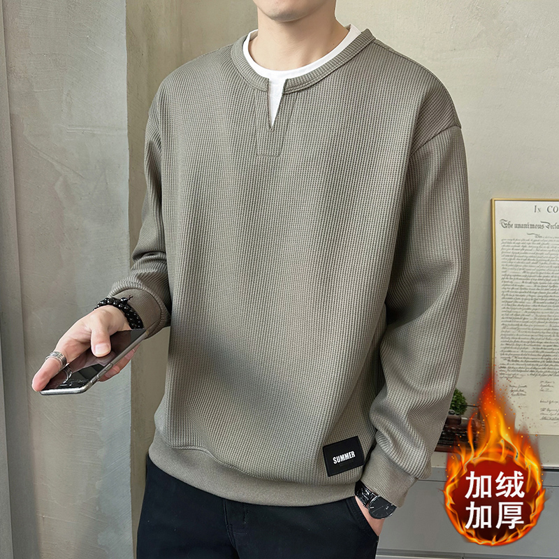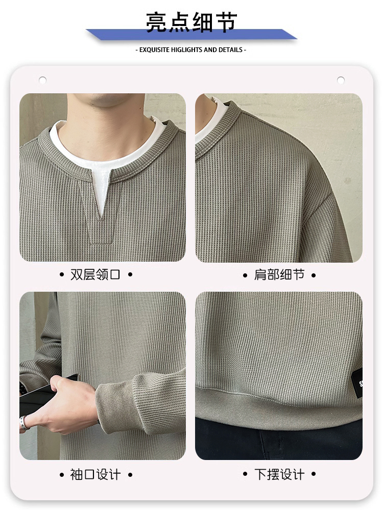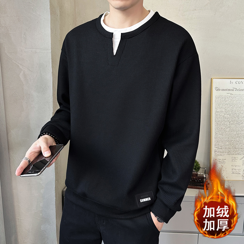 高端假两件卫衣男士长袖t恤春秋季2025新款潮牌潮流百搭V领打底衫