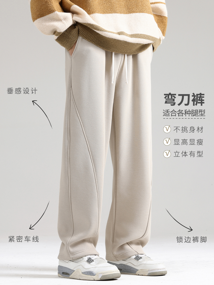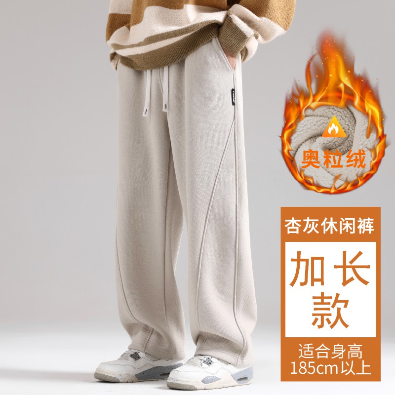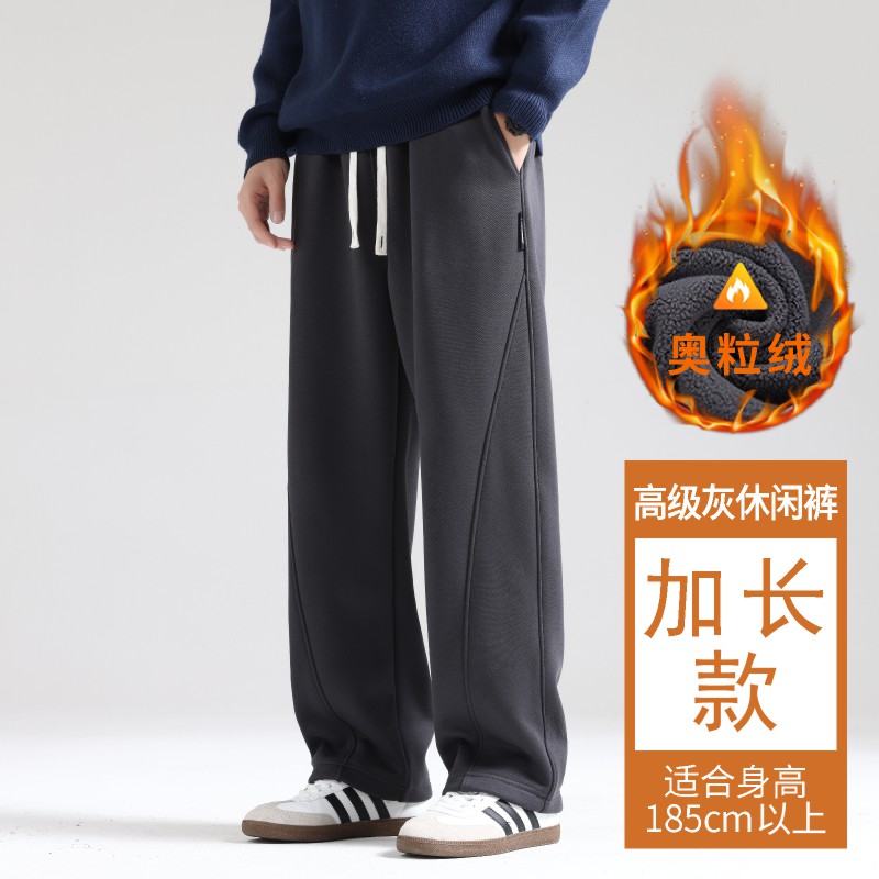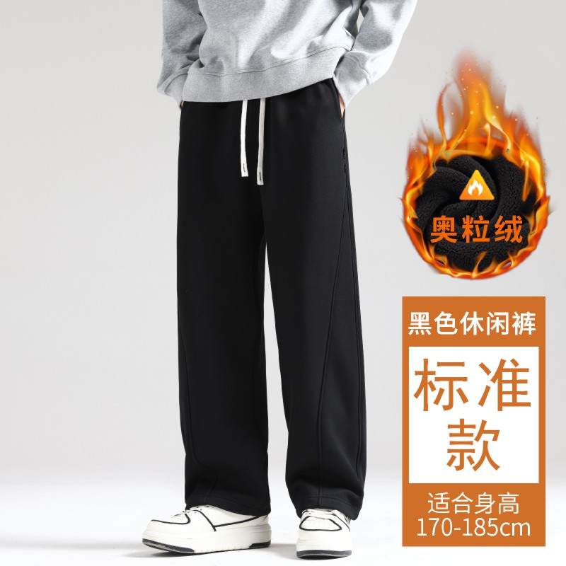 弯刀裤子男款2025新款秋冬直筒休闲裤男士宽松加绒卫裤冬季运动裤
