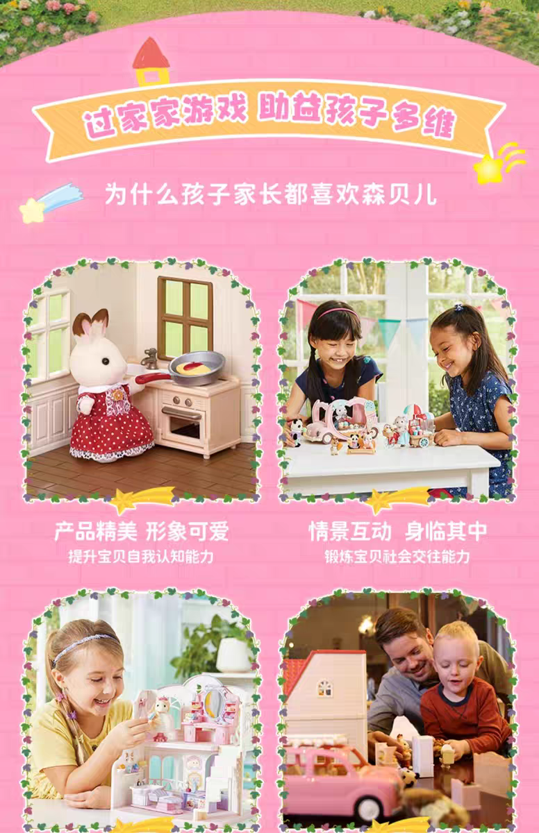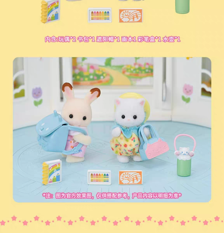 朴坊森贝儿家族幼儿园伙伴去上学仿真过家家女孩玩具生日礼物房子