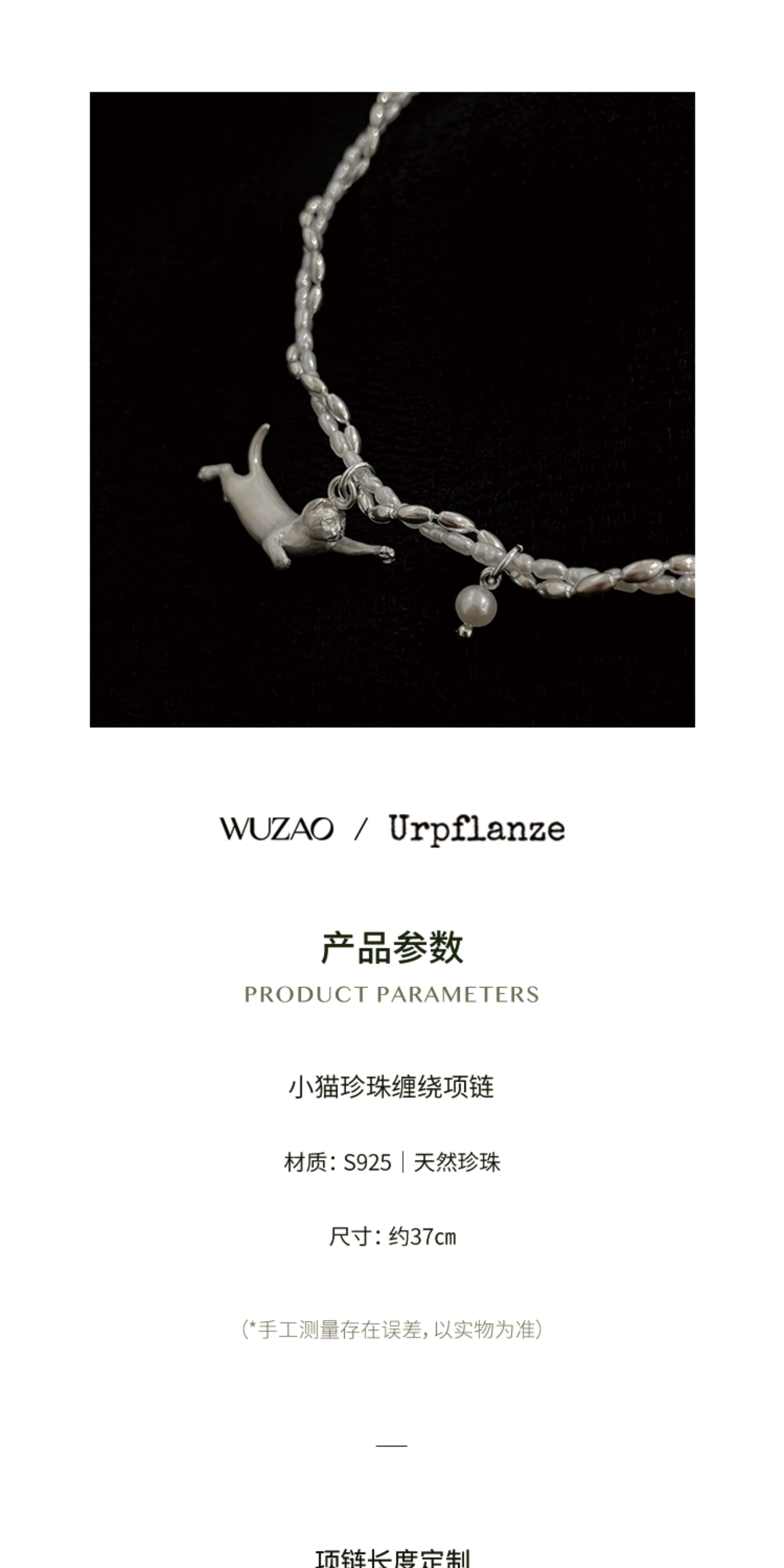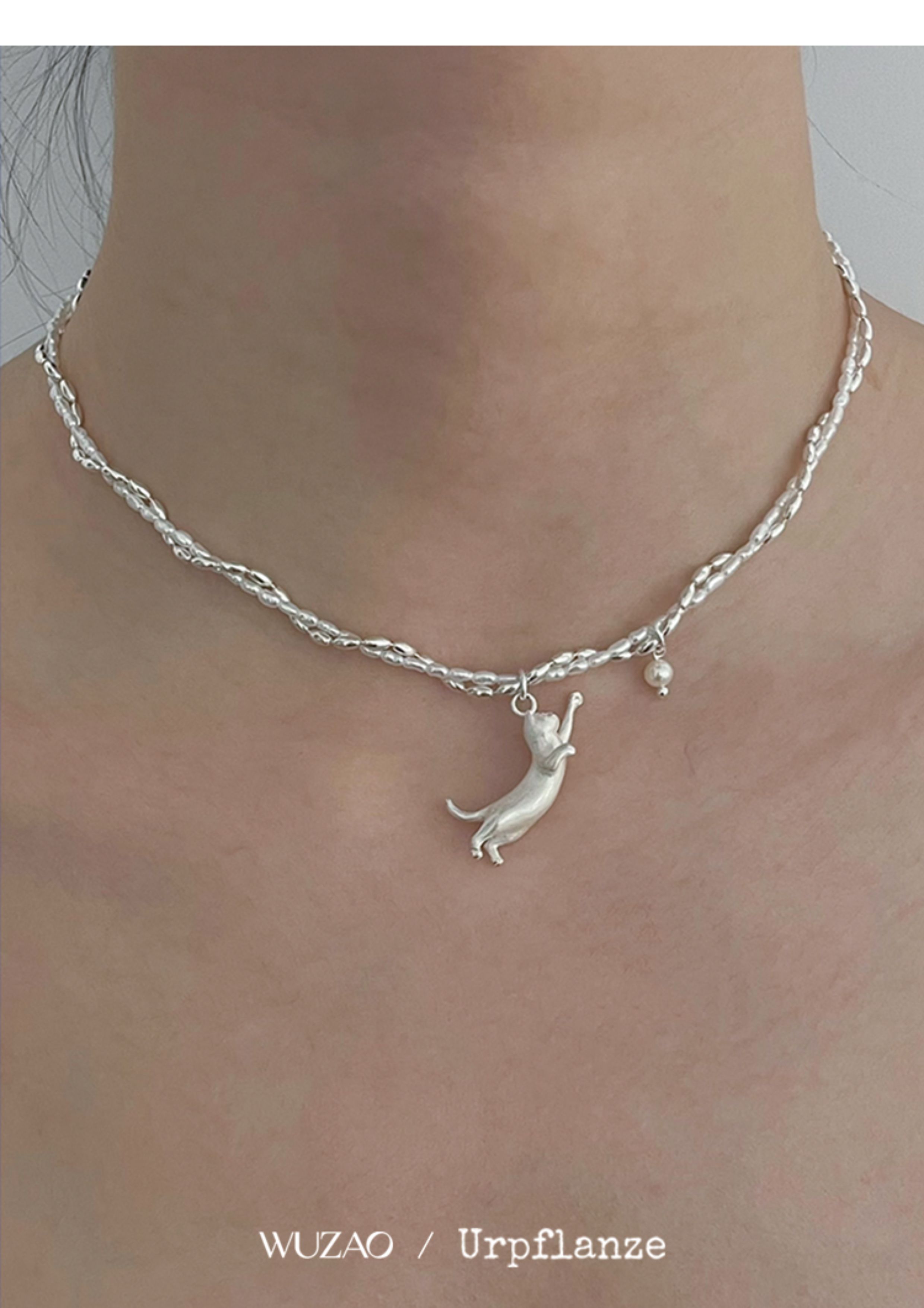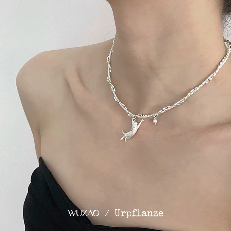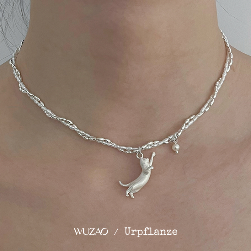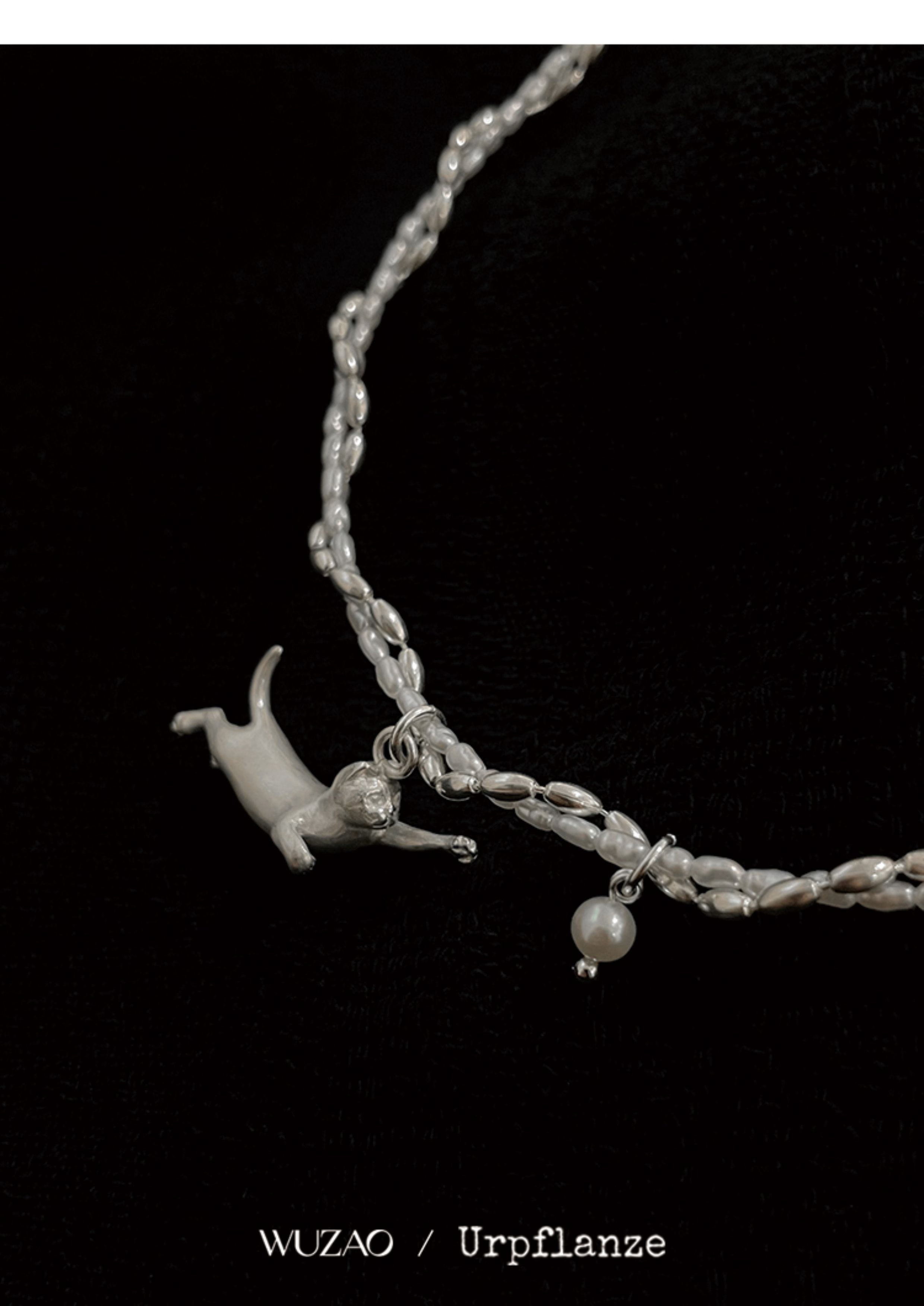 Urpflanze 流浪庄园系列小猫吊坠珍珠项链女款纯银短链小众锁骨链