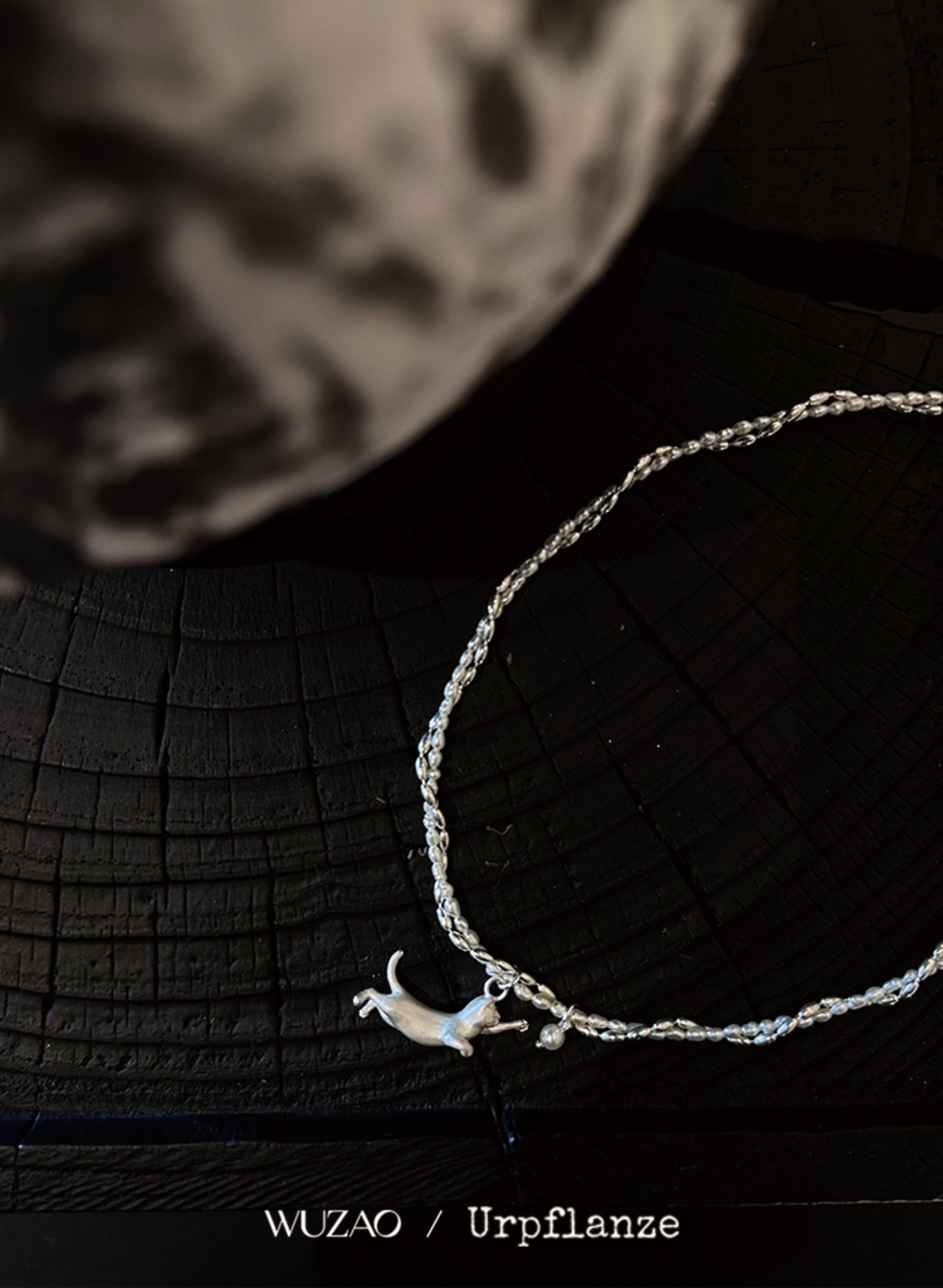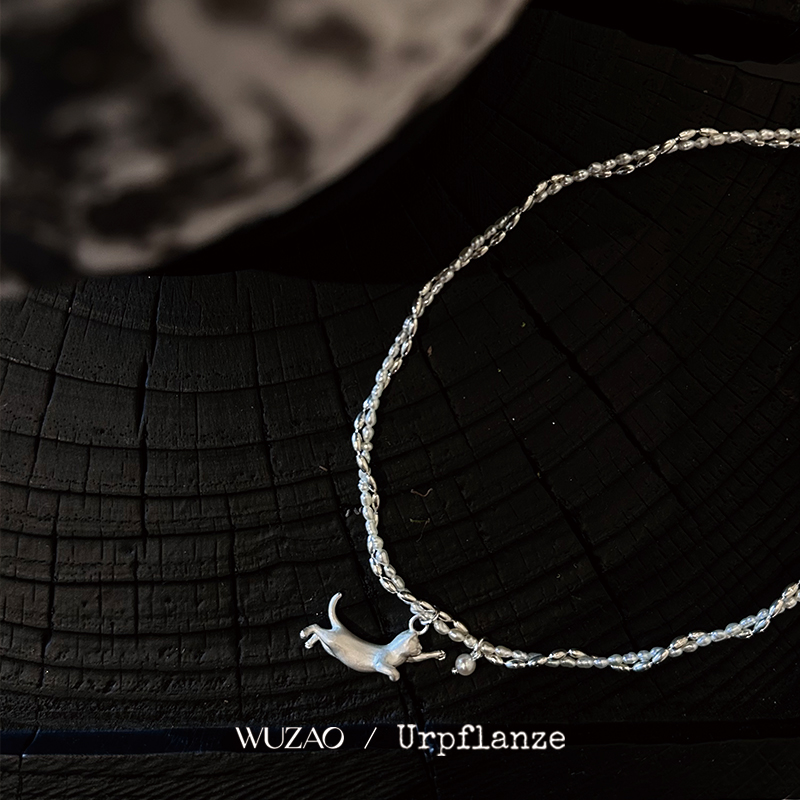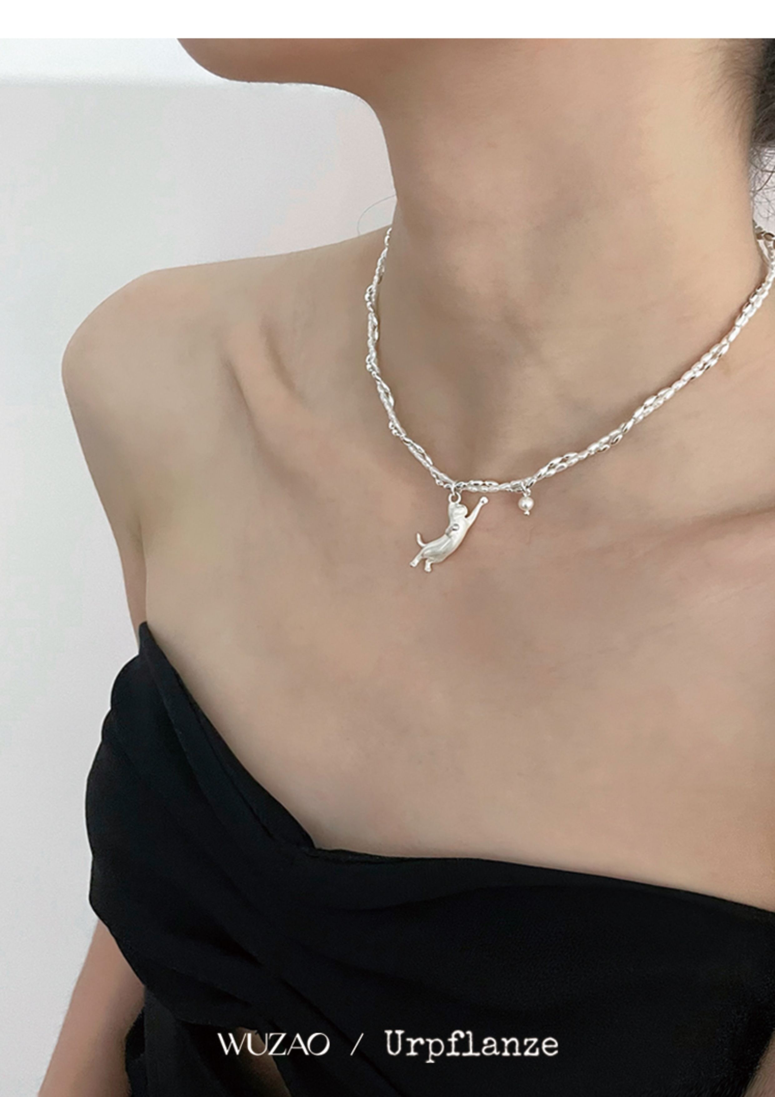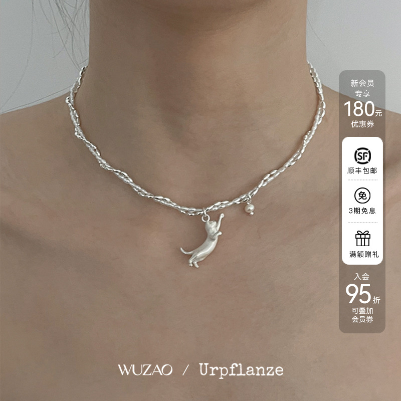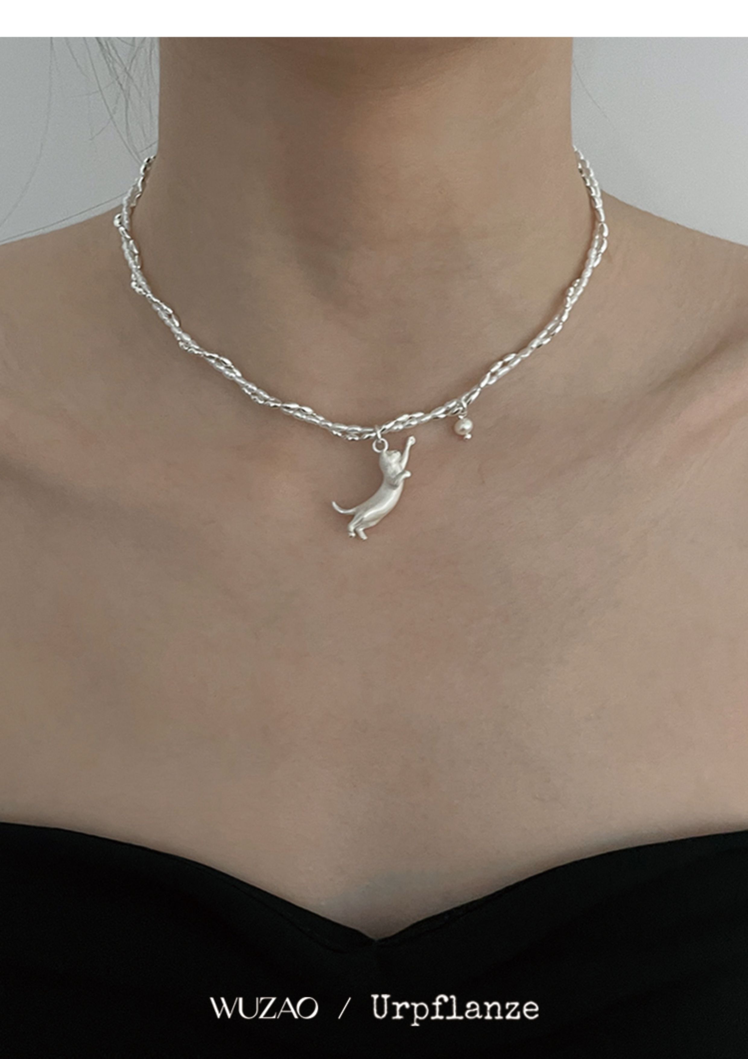 Urpflanze 流浪庄园系列小猫吊坠珍珠项链女款纯银短链小众锁骨链