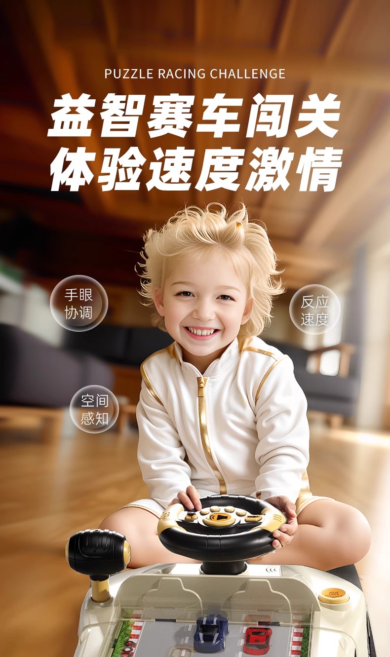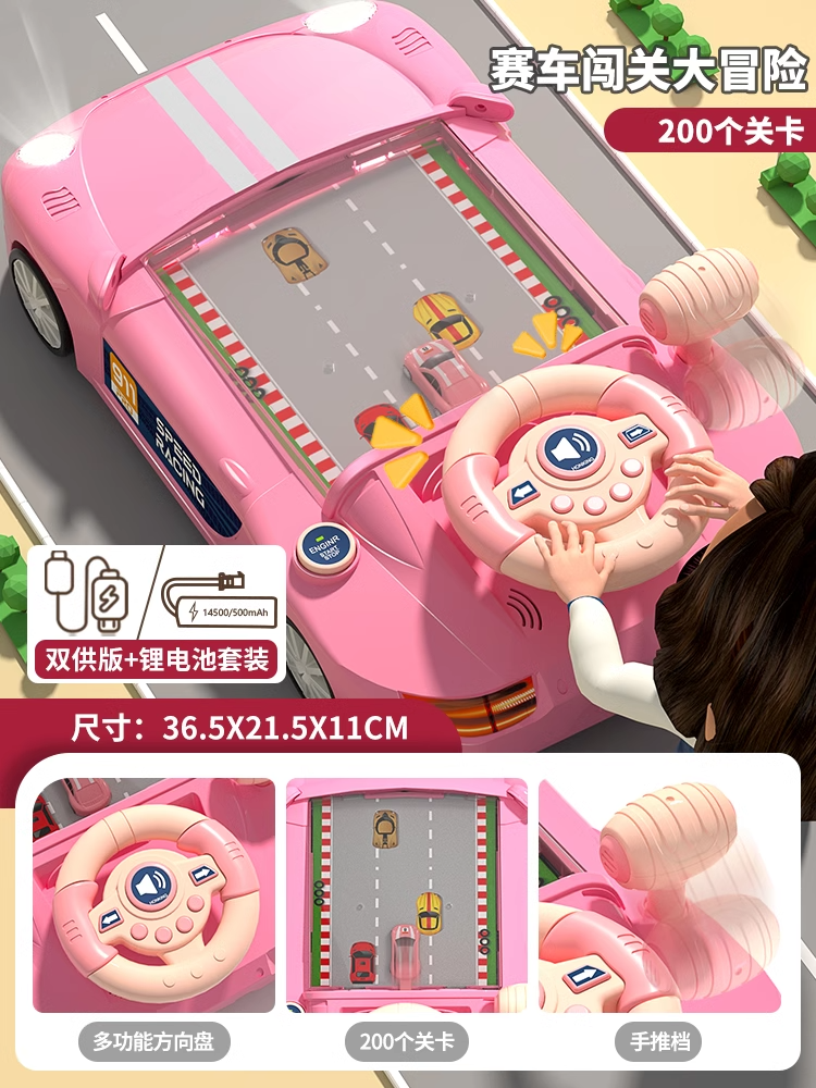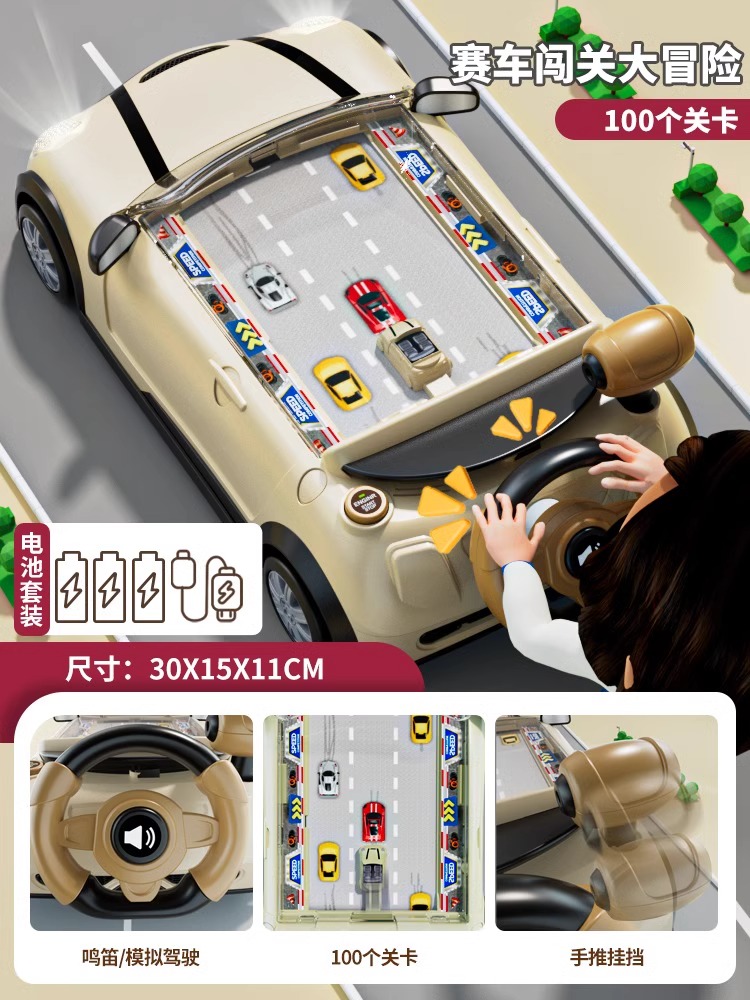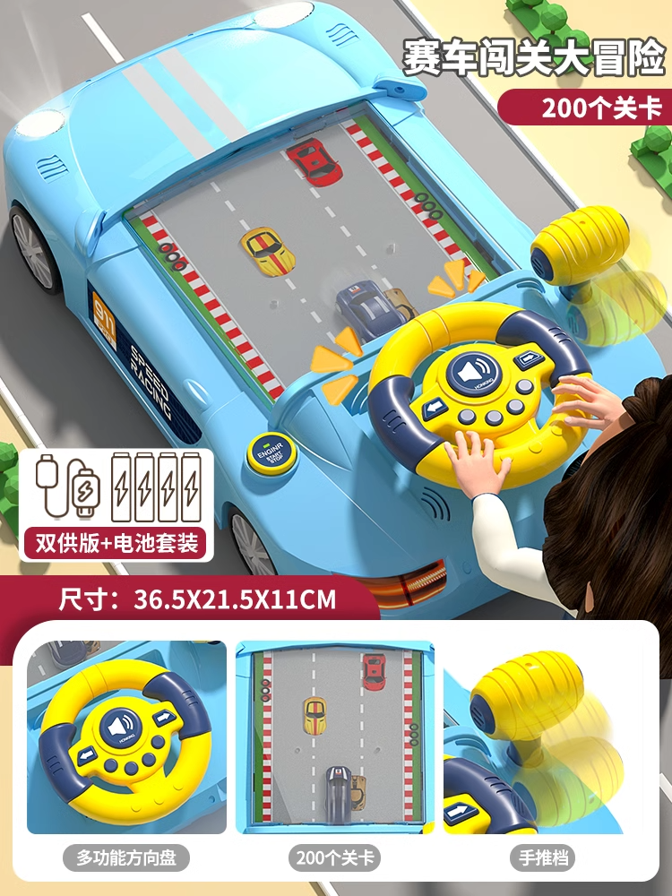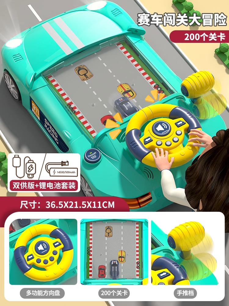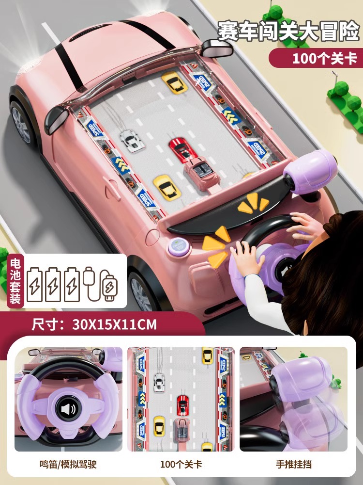 新款儿童赛车闯关大冒险游戏机模拟开小汽车避障玩具方向盘轨道车