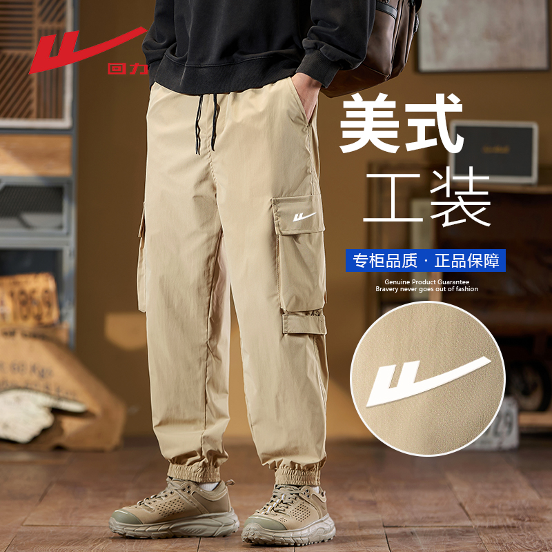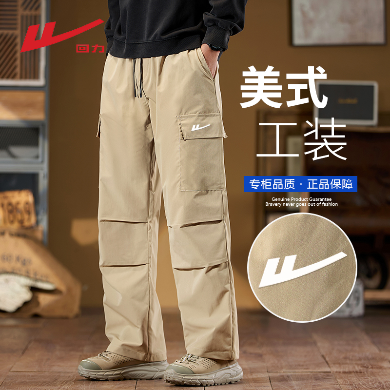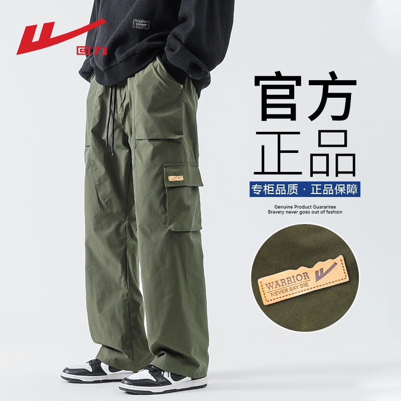 回力加绒工装裤男生2025新款秋冬季直筒休闲裤宽松运动阔腿裤男款