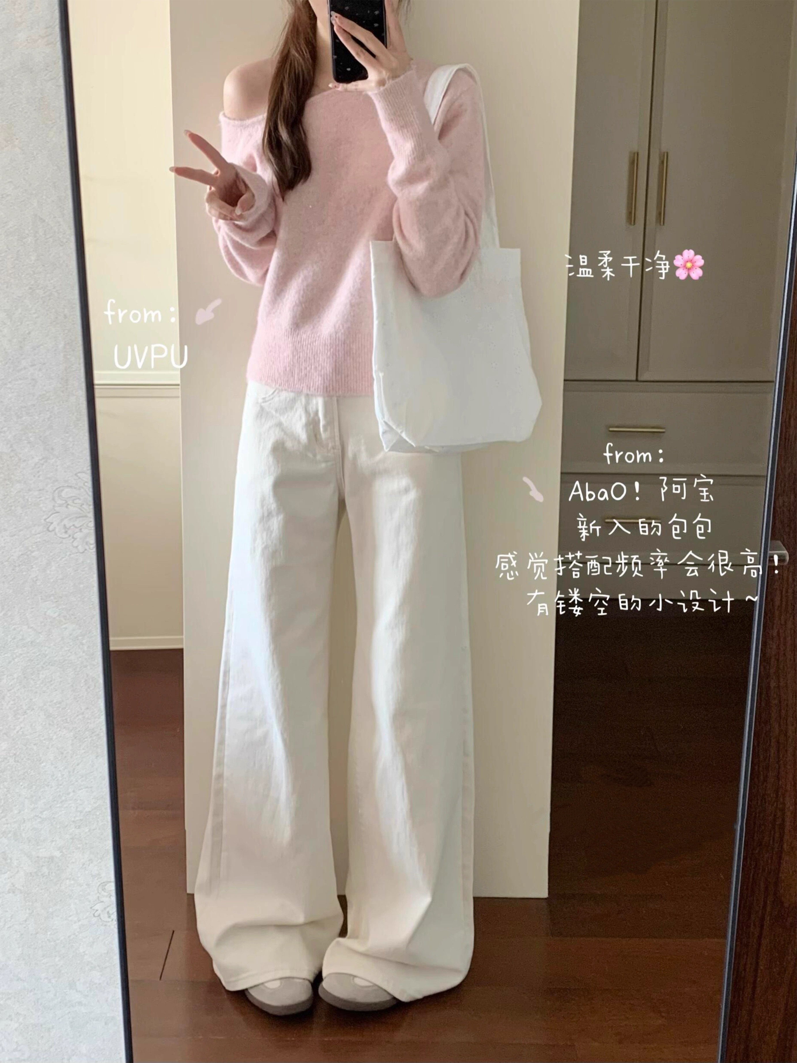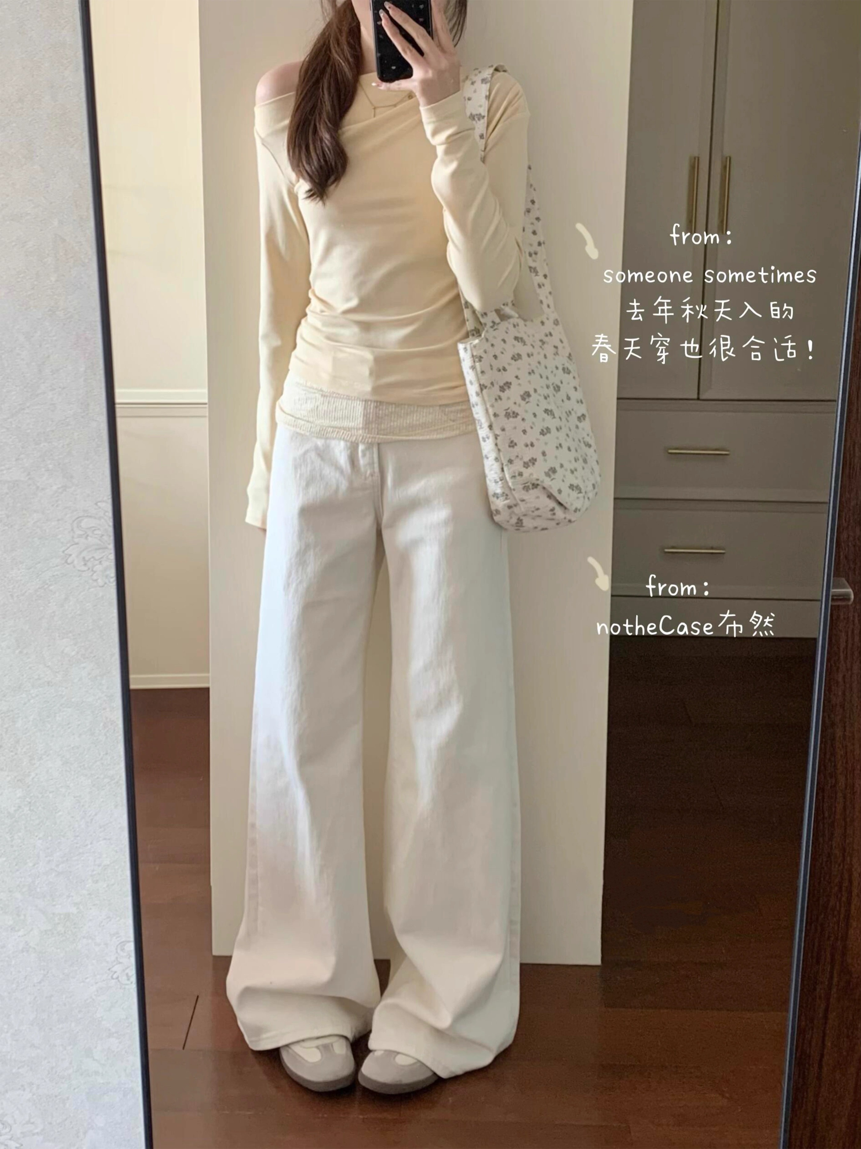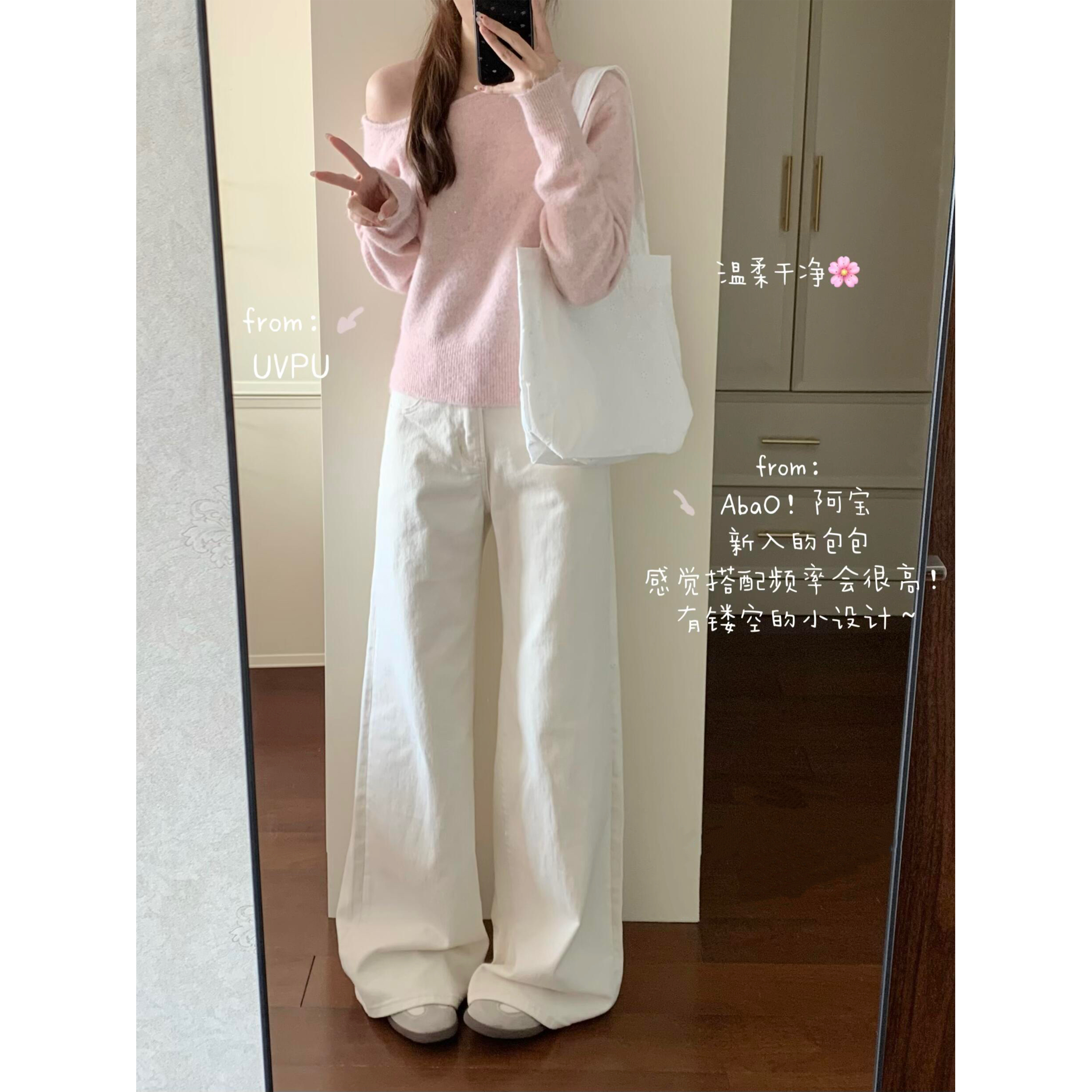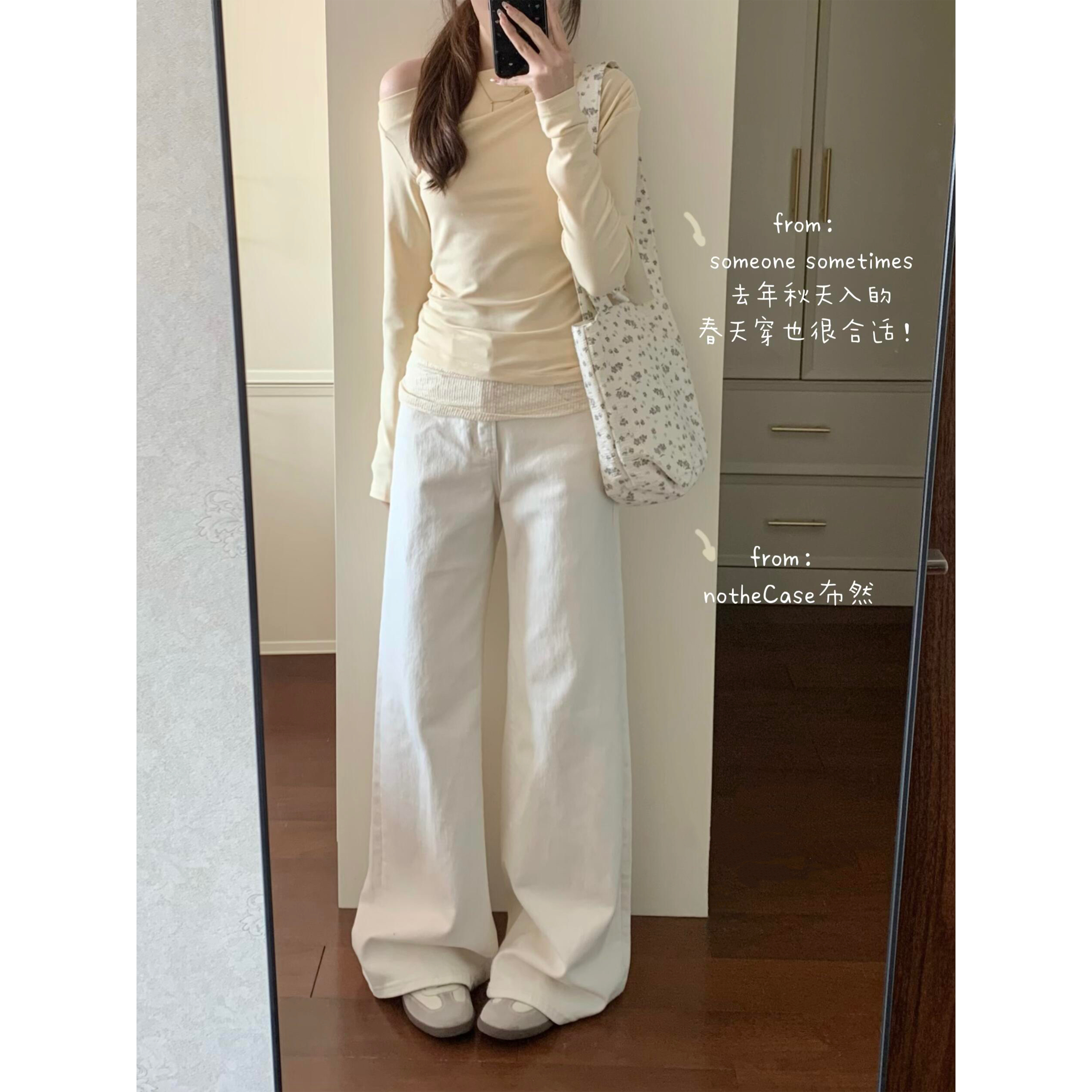白色高腰直筒牛仔裤女2025新款休闲百搭显瘦宽松阔腿小个子拖地裤
