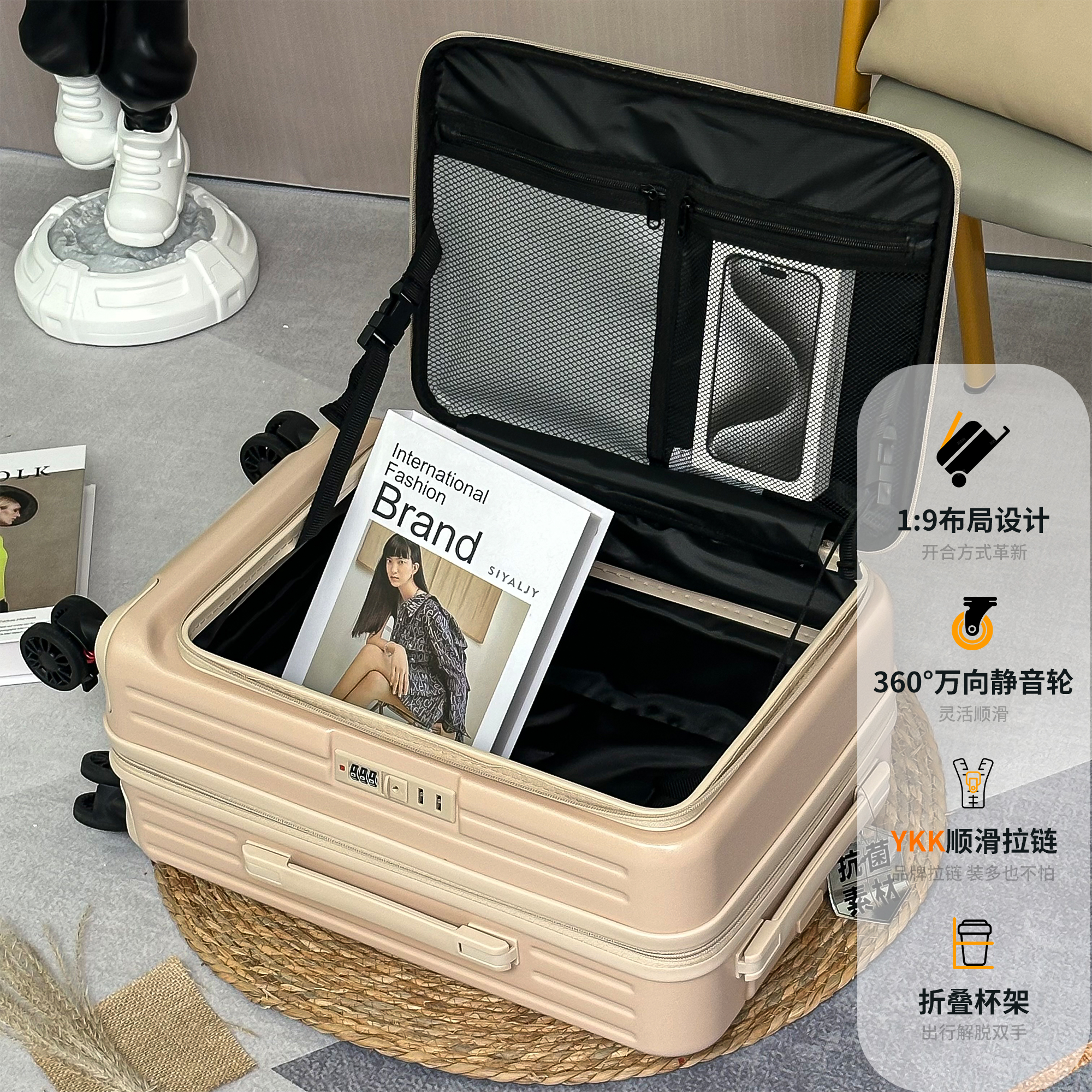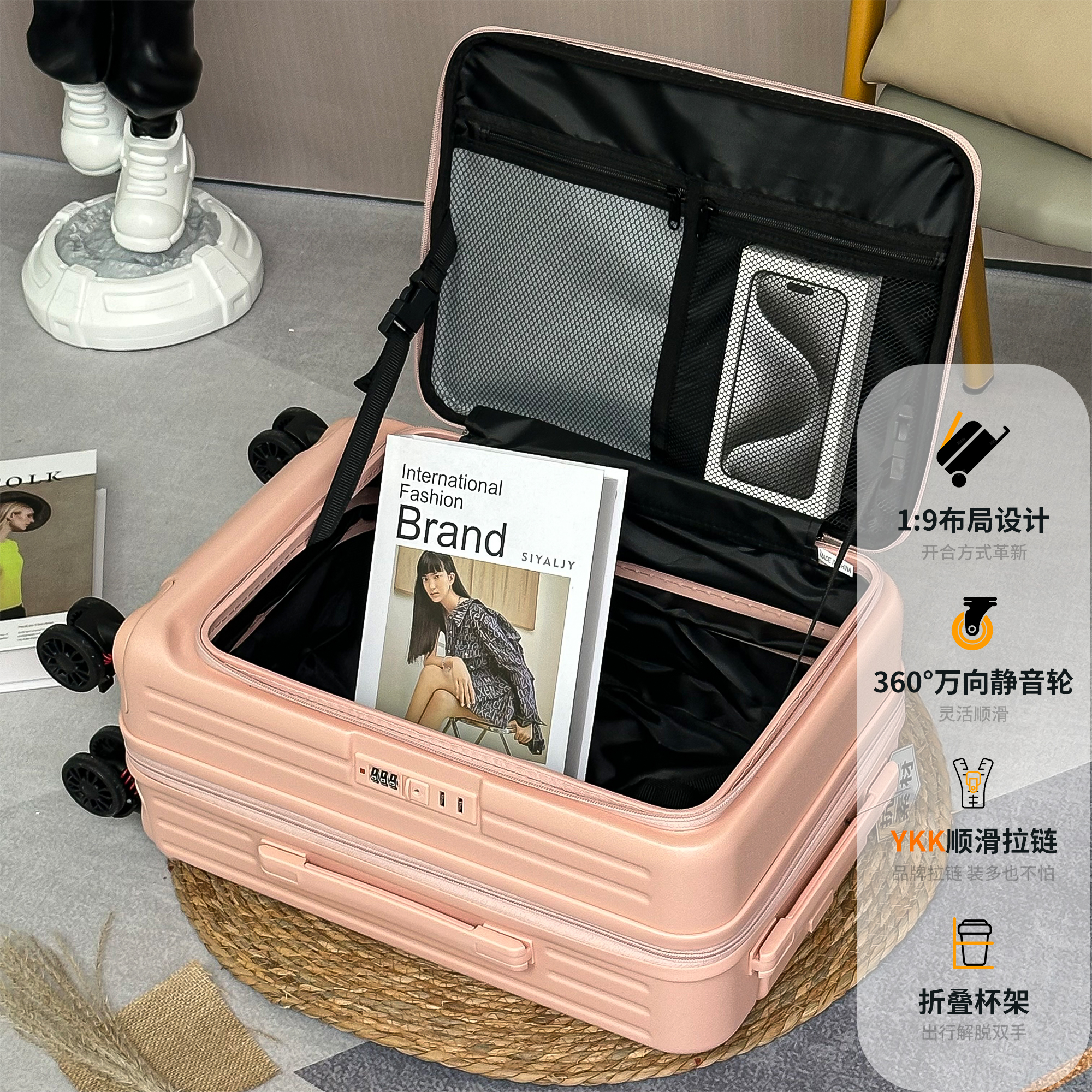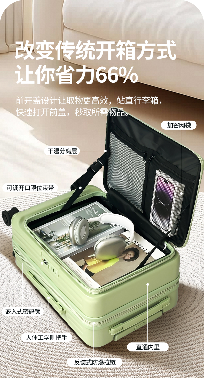 2025新款前开口行李箱女可扩展拉杆箱密码登机箱子旅行箱男大容量