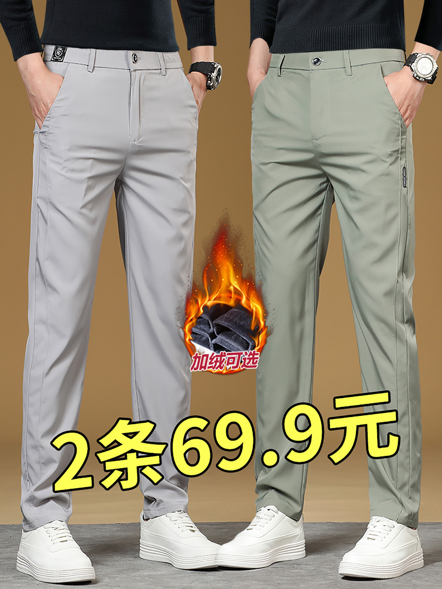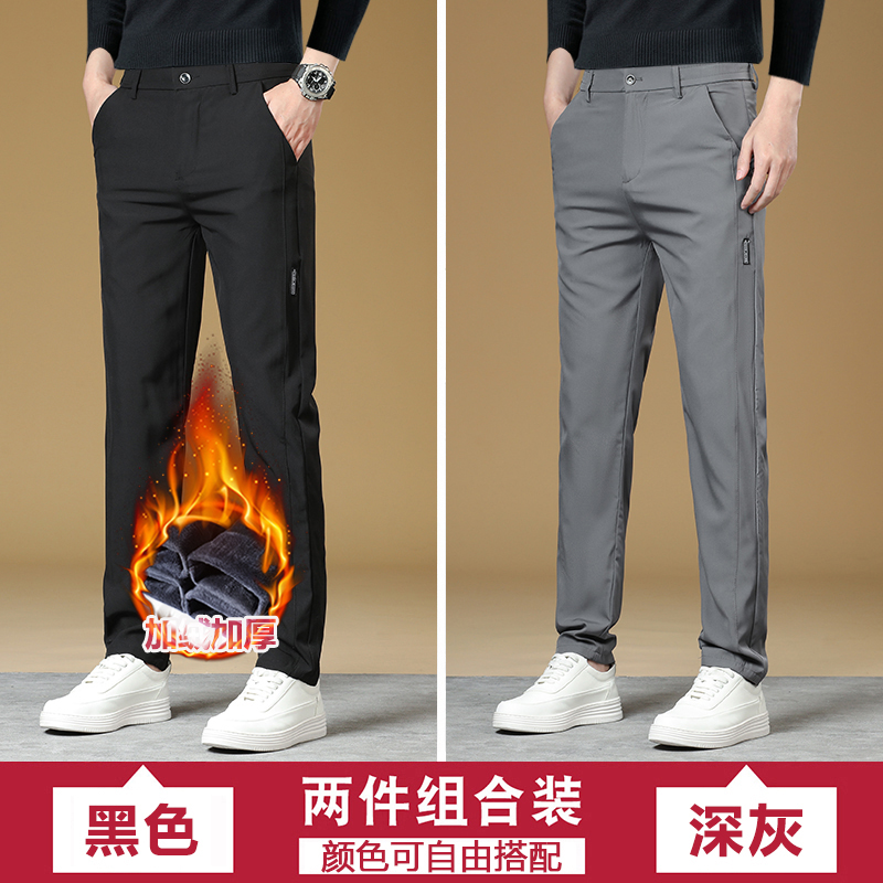 秋冬长裤子男士修身直筒男裤2025秋季新款加绒加厚西裤运动休闲裤