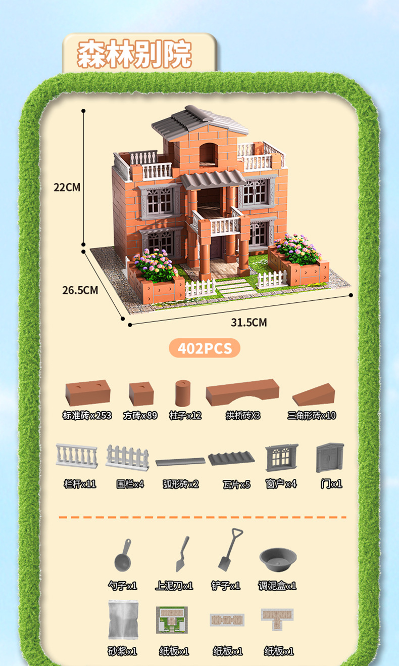 diy小屋真砖迷你泥瓦匠儿童小小建筑师盖房子砌墙玩具积木拼装男
