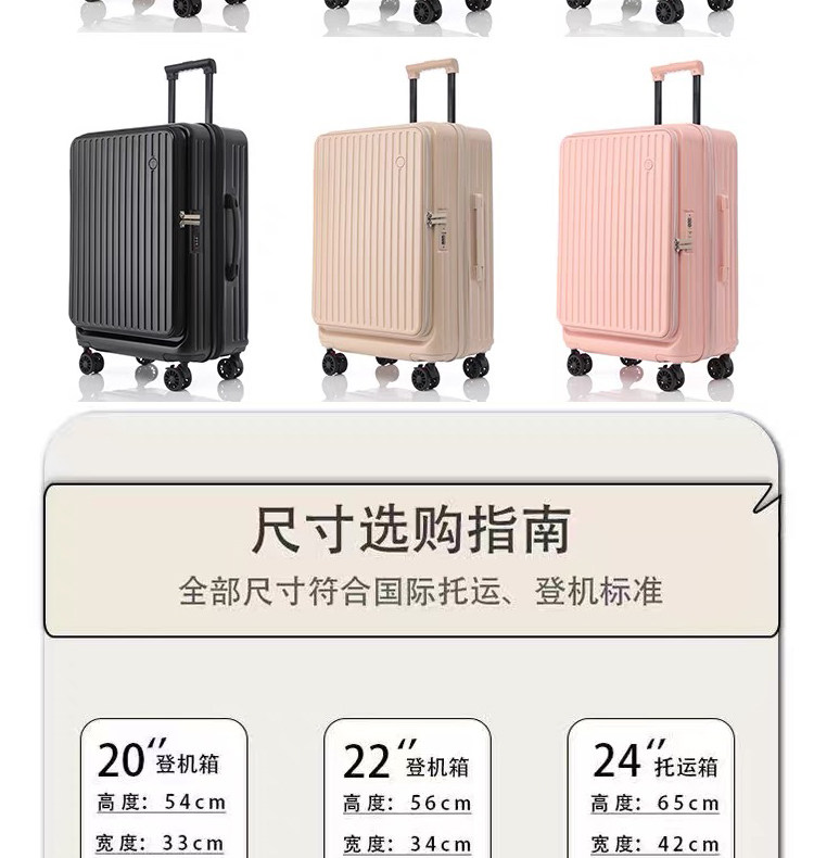 大容量新款多功能侧开口行李箱女20寸扩容登机箱男拉杆箱旅行箱