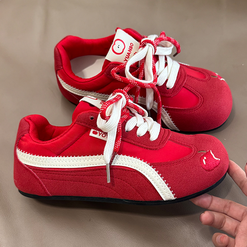 秋冬百搭加绒大头鞋胖脚宽肥板鞋厚底小白鞋德训鞋41-43大码女鞋