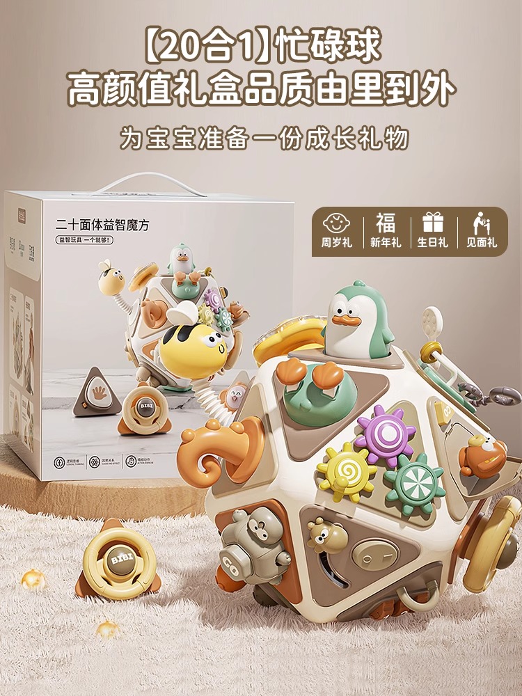 婴儿手拍鼓多面体0一1儿童早教拍拍鼓益智6-12个月六面体玩具宝宝