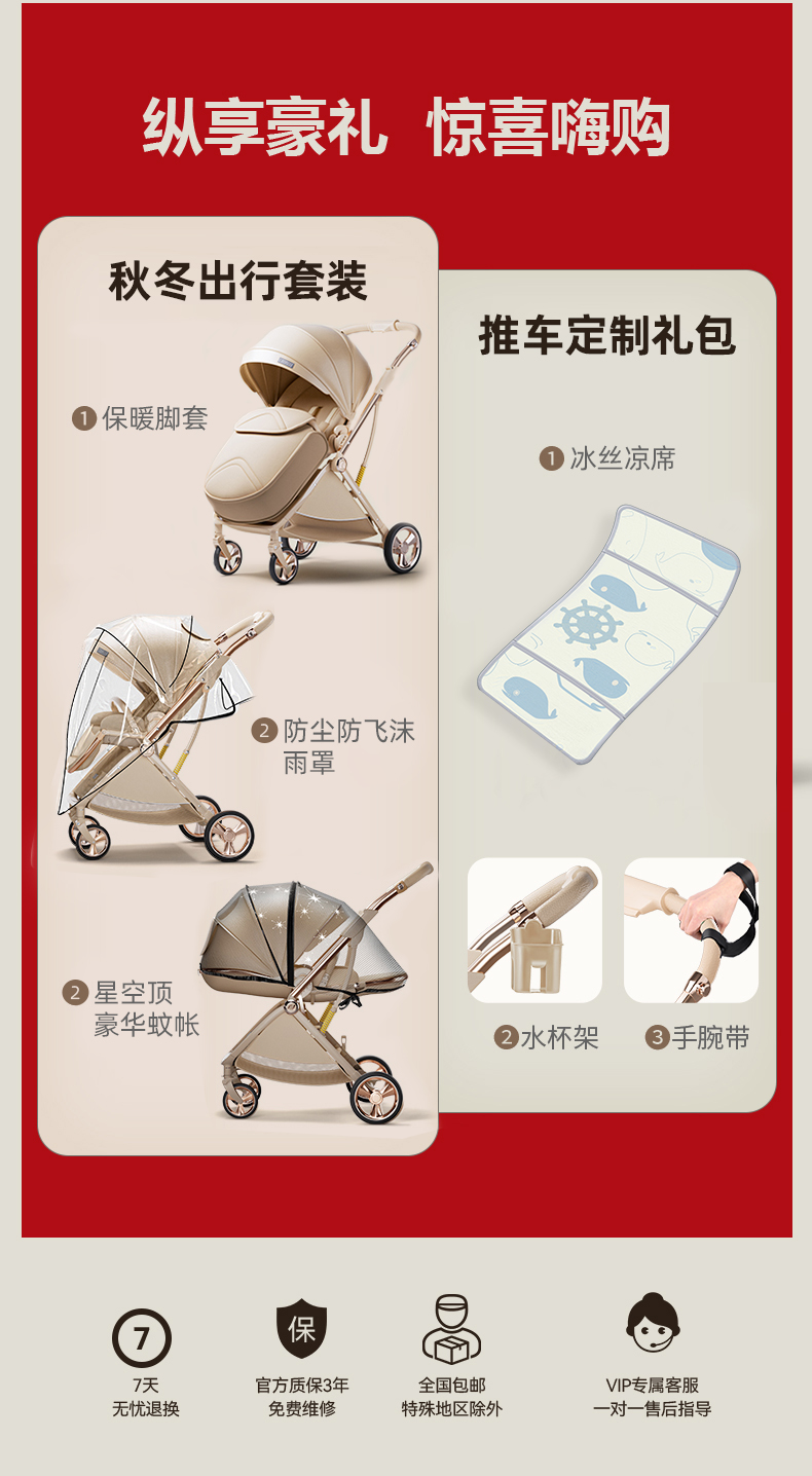 酷贝乐婴儿推车可坐可躺0到3岁轻便折叠幼儿童高景观双向宝宝推车