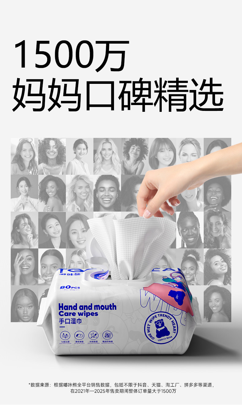 嘟咔熊婴儿湿巾新生家庭实惠装湿纸巾囤货装80抽手口屁用宝宝专用