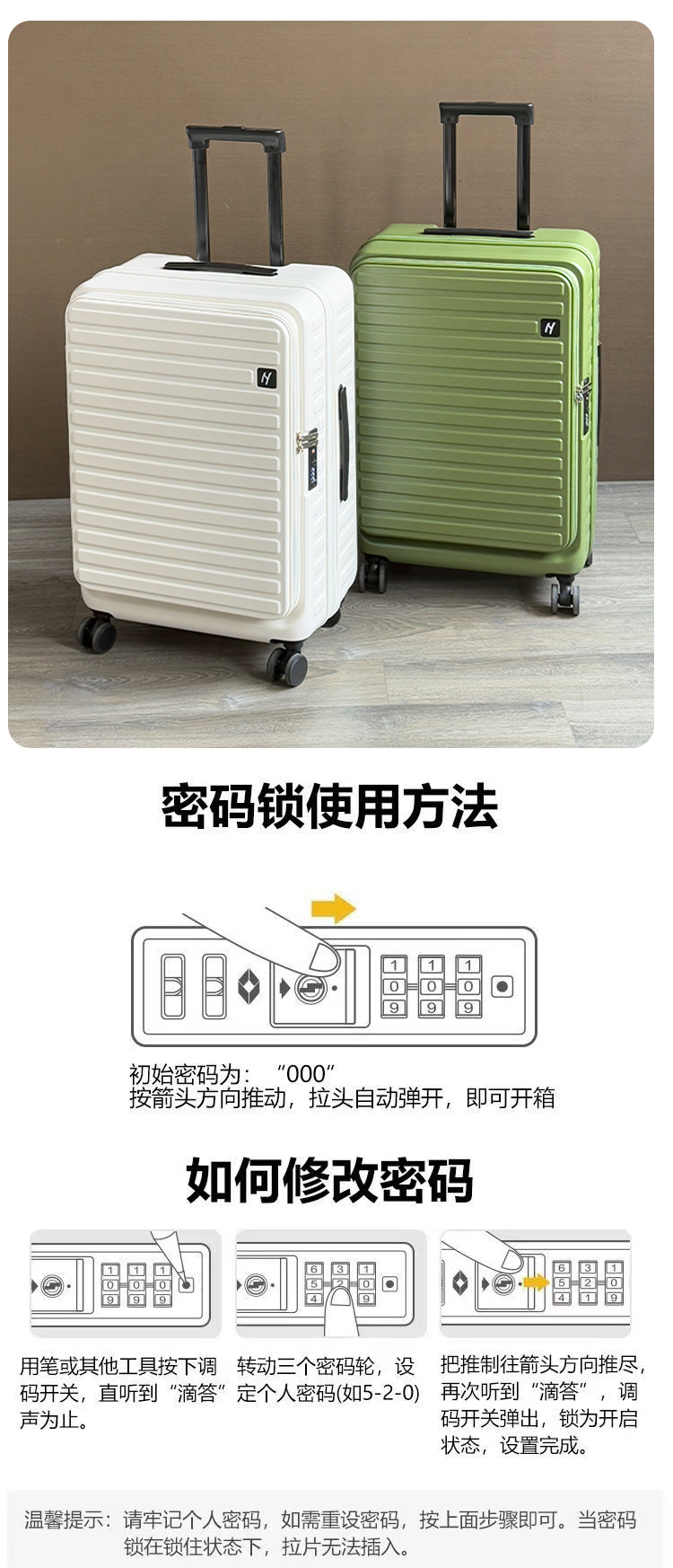 2025新款侧开口大容量行李箱可扩展拉杆箱20寸登机箱翻盖旅行箱女