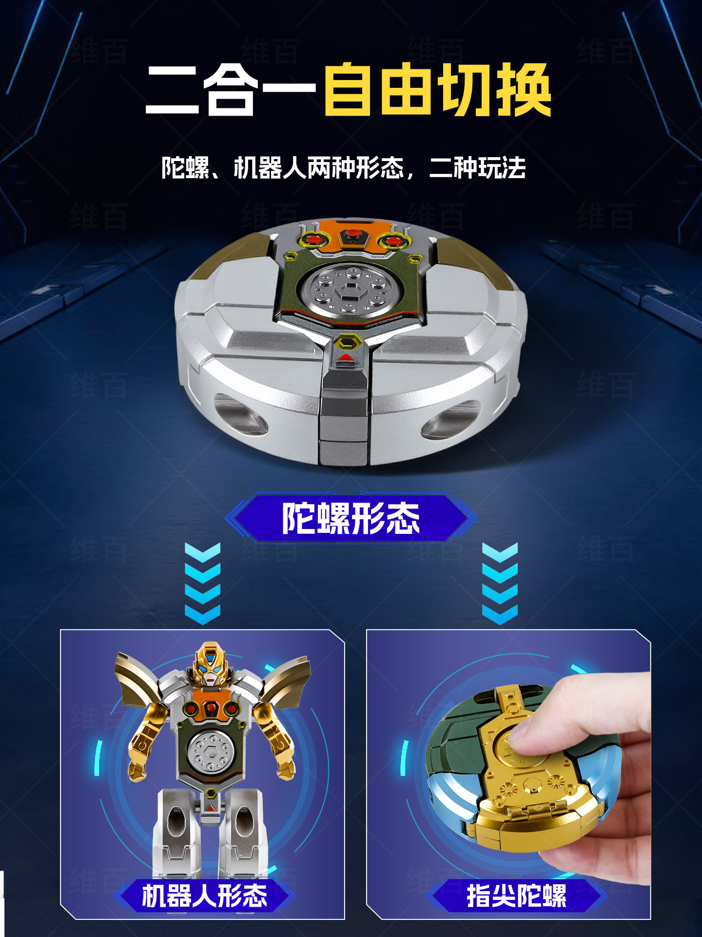 儿童变形玩具新款指尖陀螺变形机器人男女孩机甲汽车生日礼物模型